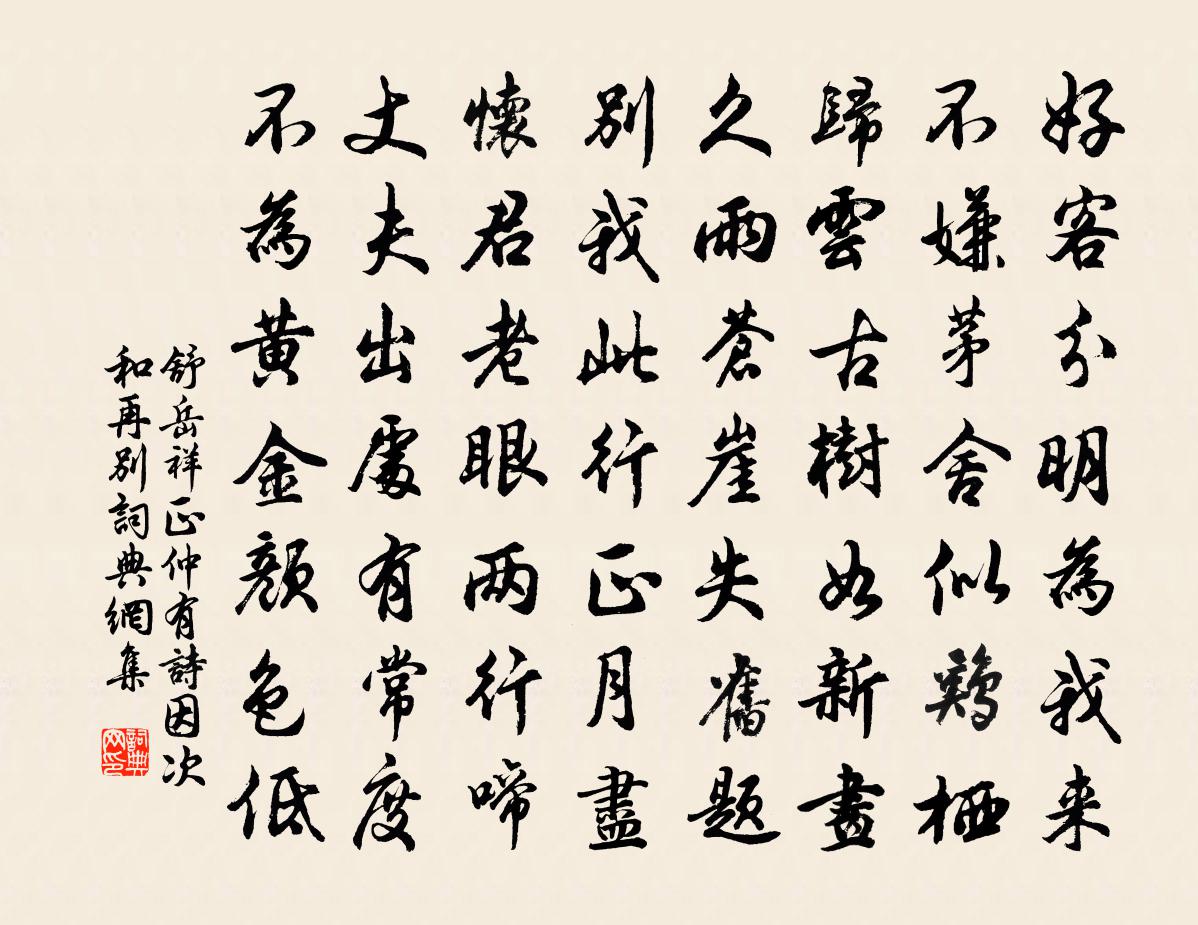 詩詞名句歷史字典書法欣賞書法字典國語詞典說文解字康熙字典古漢語字典標 題 作 者 詩 句 正仲有詩因次和再別作者:舒岳祥 朝代:宋代正仲有詩因次和再別原文好客分明為我來,不嫌茅舍似雞棲。歸雲古樹如新畫,久雨蒼崖失舊題。別我此行正月盡,懷君老眼兩行啼。丈夫出處有常度,不為黃金顏色低。詩詞問答問:正仲有詩因次和再別的作者是誰?答:舒岳祥問:正仲有詩因次和再別寫於哪個朝代?答:宋代舒岳祥正仲有詩因次和再別書法欣賞正仲有詩因次和再別書法作品詩詞推薦依韻答胡直孺李復〔宋代〕東蒙野老工何拙,刻楮三年不成葉。迂途獨往自名愚,舉足常嫌投險捷。忽然開口向時人,機士笑驚多脫頰。半生山頭石陸游〔宋代〕秋風萬木霣,春雨百草生,造物初何心,時至自枯榮。惟有山頭石,歲月浩莫測,不知四時運,常帶太古色。老翁試院唱酬十一首 次前韻三首蘇轍〔宋代〕老去在家同出家,《楞伽》四卷即生涯。粗詩怪我心猶壯,細字憐君眼未花。霜落初驚衾簟冷,酒酣猶喜笑言嘩。明道親享先農十首佚名〔宋代〕獻終豆徹,禮備樂成。祠容肅肅,風馭冥冥。三時務本,一墢射耕。人祗胥悅,祉福是膺。同留守王僕射各賦春中一物,從一韻至七劉禹錫〔唐代〕鶯。能語,多情。春將半,天欲明。始逢南陌,復集東城。林疏時見影,花密但聞聲。營中緣催短笛,樓上來定哀奉酬陳介庵明府桐江見寄陳必復〔宋代〕寒侵征袖客先知,曉角吹霜下客衣。歸興只緣松菊晚,宦情肯為稻粱肥。山村日落人收市,海浦風生浪打圍。怊悵送平禪人歸鄂渚釋正覺〔宋代〕浮舟春水作歸征,家有良田可飯羹。久客迴翔雲一點,舊巢臥看月三更。人猜我住尖頭屋,爾去誰扶折腳鐺。為問衛卿叔自青暘寄詩一卷以飲酒果核殽味烹茶齋葛立方〔宋代〕不堪羈寓天一方,無心佩紫兼懷黃。侍酒無由道路長,如意至今質西涼。箬溪竹葉儻許嘗,藝色何須留窈娘。緬懷如夢令(二之二)向子諲〔宋代〕誰識薌林秋露。勝卻諸天花雨。休更覓曹溪,自有箇中玄路。參取。參取。滴滴要知落處。閿鄉寓居十首茆堂吳融〔唐代〕結得茆檐瞰碧溪,閒雲之外不同棲。猶嫌未遠函關道,正睡剛聞報曉雞。夜靜獨登小閣有所見因書文同〔宋代〕危閣橫空蔽野扉,夜深來上久忘歸。水光瀲灩和煙動,雲色褵褷夾月飛。隔岸葦村聞笛遠,背灣松塢見燈微。此間柳藏經二絕句柳藏經〔唐代〕寒水停園沼,秋池滿敗荷。杜門窮典籍,所得事今多。誰謂三才貴,余觀萬化同。心虛嫌蠹食,年老怯狂風。禪人並化主寫真求贊釋正覺〔宋代〕發皚皚而雪山,目湛湛而秋潭。杖拂老伴,叢林飽參。萬全非一有,二破卻成三。門門虛而正受,物物各自禪談。秋日有感因誦王元之送文元公詩云追思元白在晁說之〔宋代〕三吳山水喜秋風,白蟹青蝦甬水東。獨步晁丞孫子到,誰憐憔悴眾人中。題悟空寺繆鑒〔宋代〕不到招提二十霜,眼明獨識魯靈光。雲餐已供伊薄塞,風鐸得傅替戾罔。新寺金湯龍化遠,舊家王謝燕飛忙。行人代張元老上許漕李新〔宋代〕文章摛錦已堆胸,直指威聲府仰中。蜀部星高千幛靜,平輿龍起一淵空。閱人妙學函明鏡,飛鏑清心本素風。垂手題衢州石壁寺徐照〔宋代〕岩上橫生脈,平林一里溪。眾船寒渡集,高寺遠山齊。殘磬吹風斷,眠禽壓竹低。自嫌昏黑至,難認壁間題。念奴嬌(酬王城山)劉辰翁〔宋代〕兩丸日月,細看來、也是樊籠中物。點點山河經過了,拔幟幾番殘壁。白是沙堤,蒼然吳楚,一片成氈雪。此時把月前韻感事孫應時〔宋代〕駒去不食藿,馬佚能傷葵。烈士多慷慨,耿耿誰當知。起吟清夜闌,邊月明春閨。雨心杜陵老,澒洞終南齊。安公子(中呂調)柳永〔宋代〕長川波瀲灩。楚鄉淮岸迢遞,一霎煙汀雨過,芳草青如染。驅驅攜書劍。當此好天好景,自覺多愁多病,行役心情名句推薦西子蒙不潔,則人皆掩鼻而過之。雖有惡人,齊戒沐浴,則可以祀上帝。孟子《孟子·離婁章句下·第二十五節》 守節自誓,親誨之學。歐陽修《畫地學書》 過五關,斬六將馮夢龍《喻世明言·卷三十一》 秋霜欲下手先知,燈底裁縫剪刀冷。白居易《空閨怨》 黃鸝驚夢破,青鳥喚春還。張弘范《臨江仙·憶舊》 一朝春盡紅顏老,花落人亡兩不知。曹雪芹《紅樓夢·第二十七回》 寂寞深閨,柔腸一寸愁千縷。李清照《點絳唇·閨思》 念碎劈芳心,縈思千縷,贈將幽素,偷翦重雲。吳文英《風流子·黃鐘商芍藥》 怠慢忘身,禍災乃作。荀子《荀子·勸學》 書當快意讀易盡,客有可人期不來。陳師道《絕句·書當快意讀易盡》