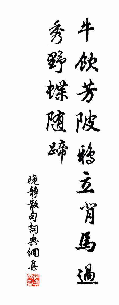 詩詞名句歷史字典書法欣賞書法字典國語詞典說文解字康熙字典古漢語字典標 題 作 者 詩 句 句作者:晚靜 朝代:宋代句原文牛飲芳陂鴉立背,馬過秀野蝶隨蹄。詩詞問答問:句的作者是誰?答:晚靜問:句寫於哪個朝代?答:宋代晚靜句書法欣賞句書法作品詩詞推薦石鏡寺盧照鄰〔唐代〕古墓芙蓉塔,神銘松柏煙。鸞沉仙鏡底,花沒梵輪前。銖衣千古佛,寶月兩重圓。穩隱香台夜,鐘聲徹九天。郫縣春日吟吳泳〔宋代〕去年春日百花斑,今歲逢春萬竹間。共靚竹香宜細看,春風不會一朝閒。和國鎮晚秋齋中見寄張伯玉〔宋代〕越國風光與眾殊,貳車才調世應無。晴樓對酌雲平海,夜榻分題月滿湖。吟嘯江山君好手,主張詩酒我非夫。行當喜雪六首陳造〔宋代〕南鄰賞雪珠箔褰,紅爐綠酒圍嬋娟。非鄰飛雪灑枕席,擁戶亭午無炊煙。袁安吻燥屋不補,東郭足皸履已穿。嗚呼贈韋秘書子春二首李白〔唐代〕谷口鄭子真,躬耕在岩石。高名動京師,天下皆籍籍。斯人竟不起,雲臥從所適。苟無濟代心,獨善亦何益。惟君效陶四首用葛秋岩韻釋文珦〔宋代〕坐石滋南風,幽抱和且衎。志唯在山水,身不關治亂。終曲遂忘言,舉目送飛翰。所得皆天真,初不加習玩。岑公岩張俞〔宋代〕池光復涵澈,萬象皆鏡入。亭觀出浮雲,彤彤映邦域。左右浮屠宮,巋然爭{上山下業}岌。孰雲南浦陋,今始逢山中寄外龍輔〔宋代〕泊舟古岸傍,松柏日已昫。本非同心期,空似西陵路。落花吟邵雍〔宋代〕萬紫千紅處處飛,滿川桃李漫成蹊。狂風猛雨日將暮,舞榭歌台人乍稀。水上漂浮安有定,徑邊狼籍更無依。流鶯桂軒辭楊維楨〔元代〕桂樹叢生兮軒之陽,沐雨露兮含風霜。王孫不歸兮春草歇而不芳,軒中之人兮壽而康。折瓊枝以為佩兮餐金粟以為詠史詩蒼梧胡曾〔唐代〕有虞龍駕不西還,空委簫韶洞壑間。無計得知陵寢處,愁雲長滿九疑山。吏部侍郎李公靖康小雅〔宋代〕烈烈李公,實備全德。義動幽明,氣貫金石。扈蹕敵營,爰究忠烈。杞人之憂,廢立大厄。公挺不雇,二將面叱。春日六言十二首劉克莊〔宋代〕褵褷病鶴翅短,虺隤老馬力疲。不知大翰會事,且吟小家數詩。驀山溪楊 * 〔宋代〕當年蘇小,家住苕溪尾。一棹採蓮歸,悄羞得、鴛鴦飛避。苹洲蓼岸,花臉兩難分,崖半倚。風乍起。蕩漾煙光里贈信安鄭道人貫休〔唐代〕貌古似蒼鶴,心清如鼎湖。仍聞得新義,便欲注陰符。點化金常有,閒行影漸無。杳兮中便是,應不食菖蒲。寄王褒伯和明舉韻二首郭印〔宋代〕會面知何日,愁懷待一舒。吾曹皆委運,世事勿論渠。故國有喬木,先人無敝廬。岷山思共隱,此計孰雲疏。住京寄同志聶夷中〔唐代〕有京如在道,日日先雞起。不離十二街,日行一百里。役役大塊上,周朝復秦市。貴賤與賢愚,古今同一軌。白兔二神峰陳岩〔宋代〕伯仲怡然意甚真,齊肩握手笑相親。雲陰解駮排空立,秀出人間棣萼春。翠雲屏乾隆〔清代〕崔巍孤峰削玉華,山樞旁出古槎枒。何人解事為鐫泐,語鑿空猶道女蝸。裴如晦赴河陽幕梅堯臣〔宋代〕嚎風一夜動,作雪欲愁客。客莫苦嗟行,農望明年麥。方來笑語同,又是關河隔。主人賢且智,不待子所畫。名句推薦別來春半,觸目柔腸斷。李煜《清平樂·別來春半》 起來搔首,梅影橫窗瘦。汪藻《點絳唇·新月娟娟》 賞罰不可輕行,用人彌須慎擇。吳兢《貞觀政要·卷三·論擇官》 馬穿楊柳嘶,人倚鞦韆笑,探鶯花總教春醉倒。王磐《清江引·清明日出遊》 當事者迷,旁觀者清。佚名《增廣賢文·下集》 二月賣新絲,五月糶新谷。聶夷中《詠田家 / 傷田家》 今夫山一卷石之多,及其廣大,草木生之,禽獸居之,寶藏興焉。子思《中庸·第二十六章》 問姓驚初見,稱名憶舊容。李益《喜見外弟又言別》 懷君屬秋夜,散步詠涼天。韋應物《秋夜寄邱員外 / 秋夜寄丘二十二員外》 裳裳者華,其葉湑兮。佚名《裳裳者華》