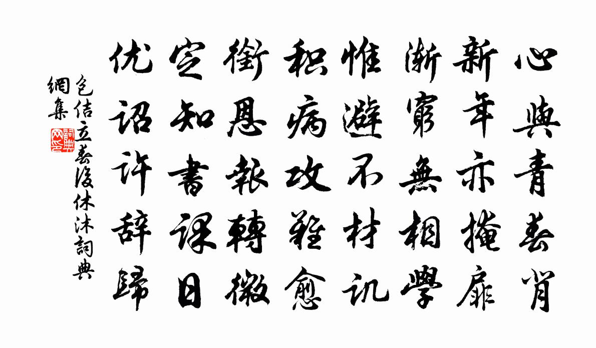 詩詞名句歷史字典書法欣賞書法字典國語詞典說文解字康熙字典古漢語字典標 題 作 者 詩 句 立春後休沐作者:包佶 朝代:唐代立春後休沐原文心與青春背,新年亦掩扉。漸窮無相學,惟避不材譏。積病攻難愈,銜恩報轉微。定知書課日,優詔許辭歸。詩詞問答問:立春後休沐的作者是誰?答:包佶問:立春後休沐寫於哪個朝代?答:唐代包佶立春後休沐書法欣賞立春後休沐書法作品詩詞推薦逍遙吟邵雍〔宋代〕吾道本來平,人多不肯行。得心無後味,失腳有深坑。若未通天地,焉能為死生。向其間一事,須是自誠明。萬年人語佚名〔唐代〕寧飲三斗塵,無逢權懷恩。賦得妓陳子良〔唐代〕金谷多歡宴,佳麗正芳菲。流霞席上滿,回雪掌中飛。明月臨歌扇,行雲接舞衣。何必桃將李,別有待春暉。寄題贛簿彭南夫讀書樓二絕周必大〔宋代〕曾門嘗佐虎頭州,濟美人猶羨督郵。三仕今看孫又子,會持麾節繼前修。又和自官舍夢歸南湖釋寶曇〔宋代〕夢中身世亦間關,覺後懸知去不難。陶令歸來猶有酒,子云老去不遷官。時供採擷花千樹,醉共團欒竹萬竿。想見八翁十首張載〔宋代〕一身無礙竺乾翁,遍賀身世戒身同。船師從我乘桴去,頑空中與指真空。山中一絕盧綸〔唐代〕飢食松花渴飲泉,偶從山後到山前。陽坡軟草厚如織,因與鹿麛相伴眠。玩瑤台馮尊師〔元代〕直指玄元路。嘆苦海迷人不悟。在目前平平穩穩,又無眥險難相阻。把萬緣一切放下,他自有聖賢提舉。似斷雲野長思仙侯善淵〔元代〕謹修持。悟無為。惟願心聰世不迷。明知天地機。寶霞輝。燦精微。紫府青都自有期。瑤宮現聖儀。晚飯罷小立門外有作陸游〔宋代〕此心何敢慕輕肥,尚媿無功飽蕨薇。浦面鳥沖殘靄去,柳陰人荷一鋤歸。病嗟短髮紛紛白,老覺初心種種非。百步自述陶夢桂〔宋代〕每與溪山對,自然懷抱開。不愁明日事,何用即時杯。一任頭如雪,孤眠鼻有雷。早間巾履潤,池上看魚來。第一百九十五文天祥〔宋代〕眼中萬少年,得志行所為。白馬蹴微雪,追隨燕薊兒。夏夜納涼陸游〔宋代〕河漢微茫月漸低,風聲正在草堂西。莎根唧唧蟲相吊,木末翻翻鵲未棲。屯甲近聞如積水,守關不假用丸泥。孤臣贖雞白居易〔唐代〕清晨臨江望,水禽正喧繁。鳧雁與鷗鷺,游揚戲朝暾。適有鬻雞者,挈之來遠村。飛鳴彼何樂,窘束此何冤。喔喔過李生白居易〔唐代〕蘋小蒲葉短,南湖春水生。子近湖邊住,靜境稱高情。我為郡司馬,散拙無所營。使君知性野,衙退任閒行。行攜山甫游嵊拜戴安道墓而歸新年過我鳳棲作此贈舒岳祥〔宋代〕尚謁死安道,寧忘生閬鳳。千岩幾尊酒,百歲一枝筇。且可耽甜黑,何須醉軟紅。謝公離臥處,明月在岩松。蘇武慢馮尊師〔元代〕志氣凌雲,精神英秀,得脫遍求真理。虛空爐戶,自已天真,遭遇便能修制。師不高明,咫尺如隔,千里安分真偽驀山溪(送李彥時)葛勝仲〔宋代〕出門西笑。千里長安道。不用引離聲,便登榮、十洲三島。畫船珠箔,苹末水風涼,隨柳岸,楚台人,景與人俱好答顏生見寄陳師道〔宋代〕闕然車馬不聞音,行路艱危已備更。求舍問田真得計,臨流據石有餘清。江山滿目開新卷,韋杜諸人得細評。閒處題韓柳廟碑一首劉克莊〔宋代〕韓柳子孫皆物故,士民尸祝尚如新。吾行天下已頭白,三百年唐惟二人。名句推薦況復煩促倦,激烈思時康。杜甫《夏夜嘆》 日射紗窗風撼扉,香羅拭手春事違。李商隱《日射》 大膽天下去得,小心寸步難行。馮夢龍《警世通言·卷二十一》 隔岸荒雲遠斷,繞磯小樹微明。歸莊《錦堂春·半壁橫江矗起》 幸非一人,專固害。來俊臣《羅織經·治下卷第三》 去時梅萼初凝粉。不覺小桃風力損。歐陽修《玉樓春·去時梅萼初凝粉》 樓倚霜樹外,鏡天無一毫。杜牧《長安秋望》 玉樹歌殘猶有曲,錦帆歸去已無家。曾棨《維揚懷古》 從此信音稀,嶺南無雁飛。李師中《菩薩蠻·子規啼破城樓月》 父老得書知我在,小軒臨水為君開。蘇軾《送賈訥倅眉》