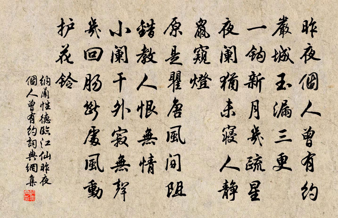 納蘭性德臨江仙·昨夜個人曾有約書法欣賞
