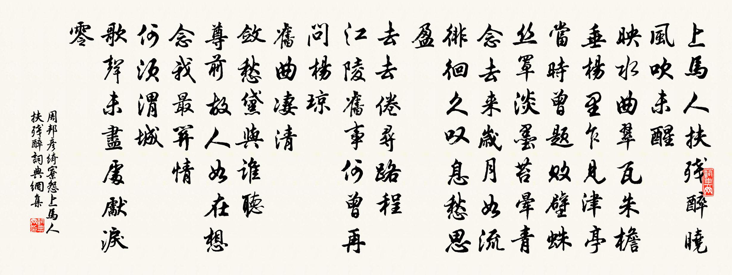 周邦彥綺寮怨·上馬人扶殘醉書法欣賞
