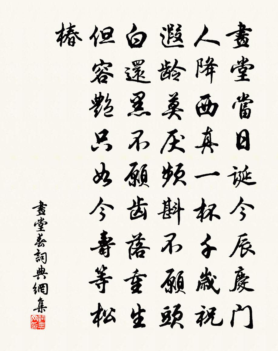 畫堂當日誕今辰。慶門人降西真。一杯千歲祝遐齡。莫厭頻斟。