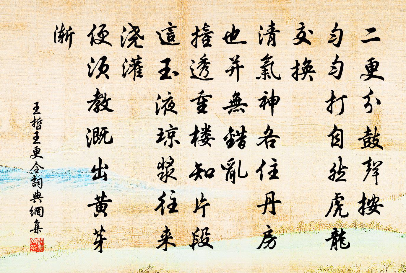 詩詞名句歷史字典書法欣賞書法字典國語詞典說文解字康熙字典古漢語字典標 題 作 者 詩 句 王更令作者:王哲 朝代:元代王更令原文二更分,鼓聲按。勻勻打,自然虎龍交換。清氣神、各住丹房,也並無錯亂。撞透重樓知片段。這玉液瓊漿,往來澆灌。便須教溉出黃芽,漸詩詞問答問:王更令的作者是誰?答:王哲問:王更令寫於哪個朝代?答:元代問:王更令是什麼體裁?答:詞王哲王更令書法欣賞王更令書法作品詩詞推薦滿江紅(滕王閣)袁去華〔宋代〕畫棟珠簾,臨無地、滄波萬頃。雲盡斂、西山橫翠,半江沈影。斜日明邊回白鳥,晚煙深處迷漁艇。聽棹歌、游女月夜贈項子謙蔡幼學〔宋代〕月色淨加水,奈此清興何。誰人當領此,隔屋呼項佗。駕言先我出,追隨費經過。履聲適相逢,歡然甜亭茶。乾坤金石台遙碧堂黎道華〔宋代〕三真駕鶴朝上清,金童前導雙霓旌。去如摶風不復返,至今霧雨愁青冥。空山樓觀才煙靄,山根水作青羅帶。道人翠旌詩歐陽修〔宋代〕盛禮郊儀肅,純音帝樂清。葳蕤飄翠羽,赫奕展華旌。鳳邸光交覆,鸞旗色共明。繽紛拂葩蓋,輝映雜緌纓。且異金陵詞故台城妓〔唐代〕宮中細草香紅濕,宮內纖腰碧窗泣。唯有虹梁春燕雛,猶傍珠簾玉鉤立。宿雨王安石〔宋代〕綠攪寒蕪出,紅爭暖樹歸。魚吹塘水動,雁拂塞垣飛。宿雨驚沙盡,晴雲晝漏稀。卻愁春夢短,燈火著征衣。水調歌頭(送竹隱知郢州)戴復古〔宋代〕鵰鶚上雲漢,虎豹守天關。一官遊戲,笑向古郢試朱轓。天下封疆幾郡,盡得公為太守,奉詔仰天寬。萬物一吐氣擬詠懷詩 十七庾信〔南北朝〕日晚荒城上。蒼茫余落暉。都護樓蘭返。將軍疎勒歸。馬有風塵氣。人多關塞衣。陣雲平不動。秋蓬卷欲飛。聞道秋晴張嵲〔宋代〕時事任從兒輩說,新詩誰得老夫降。鬼名罷檢秋堂靜,臥看風枝動晚窗。講稿公妓飲問政堂有誚予不來者借韻呈司戶同虞儔〔宋代〕東家誰念我累然,慚愧何曾十萬錢。病骨那禁三伏熱,長眉空負十分妍。睡涼喜有青奴伴,藥瞑頻呼赤腳煎。閣束文孝廟曾極〔宋代〕德隱前星民已和,山隈水曲廟何多。皇孫不得承天統,猶使而翁恨蠟鵝。登萬歲樓孟浩然〔唐代〕萬歲樓頭望故鄉,獨令鄉思更茫茫。天寒雁度堪垂淚,月落猿啼欲斷腸。曲引古堤臨凍浦,斜分遠岸近枯楊。今朝螢強至〔宋代〕幸藉炎蒸力,因遷腐草蹤。清宵能自照,暗室肯相容。雨巷幽光晦,風簾亂點重。臨書方汝賴,惟恐有鳴蛬。端午詞御閣晏殊〔宋代〕五彩絲長系臂初,萬年芳樹影扶疏。豈勞方士標神篆,自有真靈衛帝居。步虛司空圖〔唐代〕阿母親教學步虛,三元長遣下蓬壺。雲韶韻俗停瑤瑟,鸞鶴飛低拂寶爐。天宮小閣納涼邵雍〔宋代〕小閣憑虛看洛城,滿川雲物拱神京。風從萬歲山頭至,多少煙嵐並此清。秋居雜詠十首李彌遜〔宋代〕出門泥活活,不聞車馬喧。一身謝羈絆,百事從棄捐。坐曠非息慮,逃空遂忘言。青燈有餘燼,妙香無續煙。涓涓過呂城閘六首楊萬里〔宋代〕等到船齊閘欲開,船船捩拖整帆桅。一船最後知何故,日許時間獨不來。和范蜀公題蜀中花圖韓絳〔宋代〕徑尺千餘朵,矜誇古復今。錦城春物異,粉面瑞雲深。賞愛難忘酒,珍奇不費金。應知色空理,夢幻即歡心。西江月石孝友〔宋代〕歌徹秋娘金縷,醉扳織女雲車。而今誰復薦相如。拔劍茫然四顧。好景憑詩斷送,閒愁著酒消除。鏡中絲髮莫驚呼名句推薦本理則國固,本亂則國危。管仲《管子·霸言》 夜長爭得薄情知,春初早被相思染。姜夔《踏莎行·自沔東來》 杪秋霜露重,晨起行幽谷。柳宗元《秋曉行南谷經荒村》 春蠶到死絲方盡,蠟炬成灰淚始乾。李商隱《無題·相見時難別亦難》 脫衣換得商山酒,笑把離騷獨自傾。王禹偁《清明日獨酌》 日月盈昃,辰宿列張。周興嗣《千字文·全文》 薄倖郎君何日到,想自當初,莫要相逢好。施耐庵《蝶戀花·一別家山音信杳》 東風不與周郎便,銅雀春深鎖二喬。杜牧《赤壁》 行多有病住無糧,萬里還鄉未到鄉。盧綸《逢病軍人》 烏啼鵲噪昏喬木,清明寒食誰家哭。白居易《寒食野望吟》