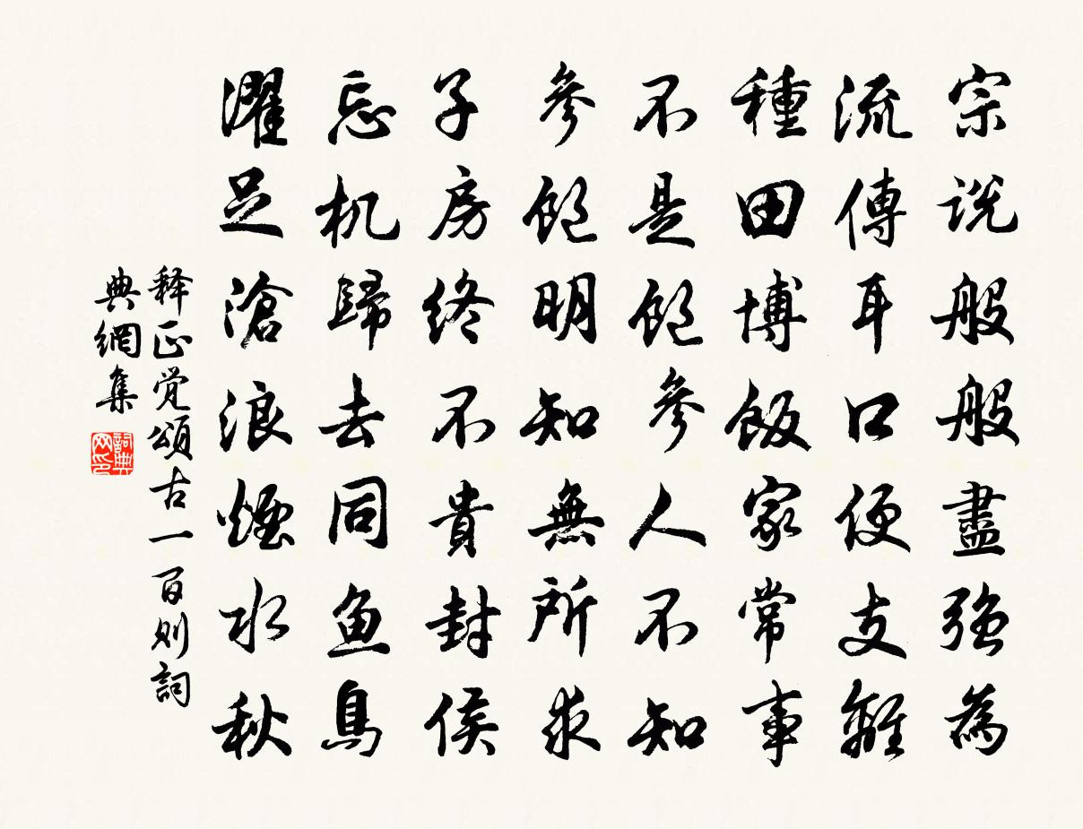 詩詞名句歷史字典書法欣賞書法字典國語詞典說文解字康熙字典古漢語字典標 題 作 者 詩 句 頌古一百則作者:釋正覺 朝代:宋代頌古一百則原文宗說般般盡強為,流傳耳口便支離。種田博飯家常事,不是飽參人不知。參飽明知無所求,子房終不貴封侯。忘機歸去同魚鳥,濯足滄浪煙水秋。詩詞問答問:頌古一百則的作者是誰?答:釋正覺問:頌古一百則寫於哪個朝代?答:宋代釋正覺頌古一百則書法欣賞頌古一百則書法作品詩詞推薦春日汪藻〔宋代〕一春略無十日晴,處處浮雲將雨行。野田春水碧於鏡,人影渡傍鷗不驚。桃花嫣然出籬笑,似開未開最有情。茅茨京居暮春感興二首之一賀鑄〔宋代〕閒坊稅屋遠人群,晨鵲昏鴉亦厭聞。無奈春風作多事,滿庭花絮正紛紛。憶杭州梅花,因敘舊遊,寄蕭協律白居易〔唐代〕三年閒悶在餘杭,曾為梅花醉幾場。伍相廟邊繁似雪,孤山園裡麗如妝。蹋隨游騎心長惜,折贈佳人手亦香。賞自書嘆陸游〔宋代〕無能自號痴須老,尚健人驚矍鑠翁。未向松根藏病骨,尚尋花底 * 。翩翩孤影如歸鶴,冉冉流年付斷蓬。曾謁酬杭州白使君,兼寄浙東元大夫張籍〔唐代〕相印暫離臨遠鎮,掖垣出守復同時。一行已作三年別,兩處空傳七字詩。越地江山應共見,秦天風月不相知。人間靈芝寺別祖席諸友柴望〔宋代〕落日寒城暮雨余,滿斟離酒意何如。見妻還指張儀舌,痛國誰憐賈誼書。羸馬病僮旋僱倩,寺禽山獠亦欷噓。長安句釋延壽〔宋代〕言前體道乾坤窄,筆下搜吟海岳枯。城頭月朱彝尊〔清代〕別離偏比相逢易,眾里休迴避。喚坐回身,料是秋波,難制盈盈淚。酒闌空有相憐意,欲住愁無計。漏鼓三通,月上帥漕閔雨十首彭龜年〔宋代〕文移急征輸,追逮及圭撮。安得語裡胥,反手逐旱魃。水調歌/水調佚名〔宋代〕雪霽萬山出,和氣藹王正。平園春事競起,梅柳凍全醒。此際朝元歸路,疑有真仙呈瑞,笙鶴九宵聲。東閣識風度和毛國鎮白雲莊五詠其三眺遠台蘇轍〔宋代〕山似高人長遠人,不登高處見無因。築台土石無多子,照眼峰巒得許新。陣馬奔騰時絕遠,風濤舒捲忽無垠。白雲次韻子瞻雨中督役夜宿水陸寺詩二首蘇轍〔宋代〕雲氣連山雨瀉盆,莫投僧舍欲關門。暫時灑掃寬行役,終夕崎嶇入夢魂。煩熱暗消秋簟冷,烝濡未解夜燈昏。二年雜曲歌辭。雜曲王勃〔唐代〕智瓊神女,來訪文君。蛾眉始約,羅袖初熏。歌齊曲韻,舞亂行分。若向陽台薦枕,何啻得勝朝雲。出關和雷侍郎送行無魔不成佛觀過始知仁之句陳杰〔宋代〕事來思爛熟,罪去得深循。天壤嗟微義,風霜本至仁。十年江社夢,一道雪梅春。回首無他囑,當言莫愛身。菩薩蠻梅窗〔宋代〕折來初步東溪月。月溪東步初來折。香處是瑤芳。芳瑤是處香。蘚花浮暈淺。淺暈浮花蘚。清對一枝瓶。瓶枝一對隱逸釋楚巒〔宋代〕杖屨獨游栽藥圃,琴樽多在釣魚船。晚來花下敲門者,不是神仙即酒仙。偈頌一百五十首釋心月〔宋代〕藥山休去,直得三十二相八十種好,一時現前。然雖如是,也好與一杓。題茅山胡道士琴月卷江賓王〔宋代〕皎皎松上月,泠泠手中琴。一彈颯靈飈,再彈驅層陰。鏗然發清響,窅皛延餘音。流光復徘徊,空林轉蕭森。象器示表弟沈見可趙蕃〔宋代〕裴公台上送入日,道鄉台上看出雲。窮居逼仄不屢到,拄杖容與能平分。江湖鶴髮嘆老我,道路繭足嗟夫君。畫手金牛道中李新〔宋代〕龍鱗鳳翼阻騰驤,仰首青雲自涉茫。漢月滿衣諳客思,巴音側耳覺吾鄉。金牛有路通秦惠,籌筆無功愧蜀王。只笑名句推薦故人應念,杜鵑枝上殘月。文天祥《酹江月·和友驛中言別》 江帆幾片疾如箭,山泉千尺飛如電周德清《塞鴻秋·潯陽即景》 任是春風吹不展。困倚危樓。秦觀《減字木蘭花·天涯舊恨》 見而不見,聞而不聞,知而不知。韓非及後人《韓非子·主道》 寄意寒星荃不察,我以我血薦軒轅。魯迅《自題小像》 盡信書,則不如無書。孟子《孟子·盡心章句下·第三節》 淡黃楊柳暗棲鴉。玉人和月摘梅花。賀鑄《減字浣溪沙·樓角初銷一縷霞》 萬里平湖秋色冷,星辰垂影參然。牛希濟《臨江仙·洞庭波浪颭晴天》 策馬自沙漠,長驅登塞垣。高適《薊中作》 調角斷清秋,征人倚戍樓。張喬《書邊事》