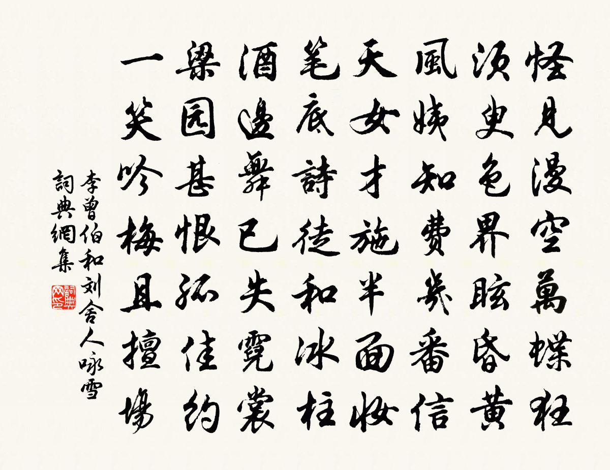 詩詞名句歷史字典書法欣賞書法字典國語詞典說文解字康熙字典古漢語字典標 題 作 者 詩 句 和劉舍人詠雪作者:李曾伯 朝代:宋代和劉舍人詠雪原文怪見漫空萬蝶狂,須臾色1~1界眩昏黃。風姨知費幾番信,天女才施半面妝。筆底詩徒和冰柱,酒邊舞已失霓裳。梁園甚恨孤佳約,一笑吟梅且擅場。詩詞問答問:和劉舍人詠雪的作者是誰?答:李曾伯問:和劉舍人詠雪寫於哪個朝代?答:宋代李曾伯和劉舍人詠雪書法欣賞和劉舍人詠雪書法作品詩詞推薦春日自省二首白玉蟾〔宋代〕雪洗桃花面,煙描柳葉眉。與春同是夢,安用賞春為。四時田園雜興 春日范成大〔宋代〕土膏欲動雨頻催,萬草千花一餉開。舍後荒畦猶綠秀,鄰家鞭筍過牆來。好事近王之道〔宋代〕霞影入瑤觴,酒與餘霞同色。人共昌朝方永,過觥籌三百。一枝紅皺石榴裙,簾卷篆煙碧。約我他年湖上,看九華丁收仲寺丞輓詩蔡戡〔宋代〕元佑名卿後,甘盤舊學臣。肯堂真有子,論世豈無人。仕至二千石,年垂八十春。哀榮子毋憾,全福更誰論。方稚川恕齋五絕曾豐〔宋代〕一心貫群倫,乃是吾祖事。耳孫不繩武,愧子兩大字。送鄭少府赴滏陽岑參〔唐代〕子真河朔尉,邑裡帶清漳。春草迎袍色,晴花拂綬香。青山入官舍,黃鳥度宮牆。若到銅台上,應憐魏寢荒。湖上閒望白居易〔唐代〕藤花浪拂紫茸條,菰葉風翻綠剪刀。閒弄水芳生楚思,時時合眼詠離騷。和象翁絕句衛宗武〔宋代〕舟行必水陸行車,此地無桑只種麻。安得野蠶生活萬,化成絲繭遍家家。簡寂觀祖無擇〔宋代〕順風曾出帝王尊,身後高名與觀存。石室深居廣成子,布囊薄葬楊王孫。流塵冪冪凝丹灶,清吹徐徐觸絳旛。牢落李宗古出示謝李道人苕帚杖從蔣彥回乞葬地二黃庭堅〔宋代〕提攜禪客扶衰杖,斷當姻家葬骨山。因病廢棋仍廢酒,鷓鴣鸚鵡伴清閒。端午帖子太上皇后閣周必大〔宋代〕艾葉雙人巧,菖花九節榮。玉皇膺曼壽,金母共長生。病中丘葵〔宋代〕數日喉何嗄,三年肺未蘇。自知愁不禁,誰復問何如。病體作冬夜,山莊獨老夫。恐傷阿{上彌下女}意,不敢寄點絳唇王十朋〔宋代〕闌檻陰沈,紫雲呈瑞餘寒凜。捲簾猗枕。香逼幽人寢。入夢何年,廬阜聞名稔。風流甚。阿誰題品。喚作熏籠錦。月夕睡起獨吟有懷建康參政陸游〔宋代〕月上虛堂一榻橫,斷香漠漠欲三更。隔簾清露挾秋氣,繞樹驚鴉啼月明。只怪夢尋千里道,不知愁作幾重城?苦吟戲題玉台集李覯〔宋代〕江右君臣筆力雄,一言宮體便移風。始知姬旦無才思,祗把豳詩詠女功。村舍書事陸游〔宋代〕紙窗百衲地爐紅,圍坐牛醫卜肆翁。時節杯盤來往熟,朝晡鹽酪有無通。男丁共結春耕耦,婦女相呼夜績同。老子醉中懷江湖舊遊偶作短歌陸游〔宋代〕無渡河,浪花無蒂高崢嶸;莫登樓,茫茫芳草難為情。華軒寶馬只好路旁看,冶金伐石空留後世名。古來惟有竹林投謁齊己乾康〔唐代〕隔岸紅塵忙似火,當軒青嶂冷如冰。烹茶童子休相問,報導門前是衲僧。送希甫使蜀孔武仲〔宋代〕漢節西南出,征鞍萬里賒。清朝早敭歷,遠使更光華。山壯蠶叢國。雲深杜宇家。暫宣寬大詔,恩信及天涯。寄南康徐大夫孔武仲〔宋代〕山南泉石有餘清,幾日籃輿天上行。亦欲西園伴飛蓋,龐公不慣入州城。名句推薦非得賢之難,用 之難。非用之難,信之難。房玄齡《晉書·列傳·第二十二章》 苕之華,其葉青青。佚名《苕之華》 救人須救急,施人須當厄。馮夢龍《醒世恆言·卷十》 春日載陽,有鳴倉庚。佚名《七月》 天下英雄誰敵手?曹劉。生子當如孫仲謀辛棄疾《南鄉子·登京口北固亭有懷》 非我而當者,吾師也;是我而當者,吾友也;諂諛我者,吾賊也。荀子《荀子·修身》 蓬鬢哀吟長城下,不堪秋氣入金瘡。盧綸《逢病軍人》 燕子不知人去也,飛認闌乾。韓疁《浪淘沙·莫上玉樓看》 舉目山河異,偏傷周顗情。李白《金陵新亭》 勸君莫打枝頭鳥,子在巢中望母歸。白居易《鳥》