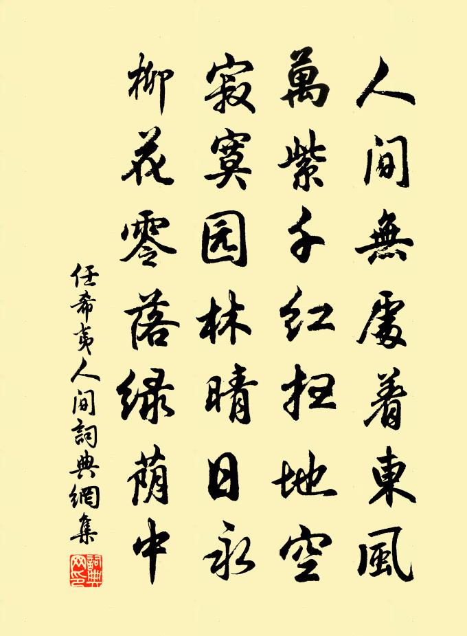 詩詞名句歷史字典書法欣賞書法字典國語詞典說文解字康熙字典古漢語字典標 題 作 者 詩 句 人間作者:任希夷 朝代:宋代人間原文人間無處著東風,萬紫千紅掃地空。寂寞園林晴日永,柳花零落綠蔭中。詩詞問答問:人間的作者是誰?答:任希夷問:人間寫於哪個朝代?答:宋代任希夷人間書法欣賞人間書法作品詩詞推薦送吳先輩赴京齊己〔唐代〕煙霄已遂明經第,江漢重來問苦吟。托興偶憑風月遠,忘機終在寂寥深。千篇未聽常徒口,一字須防作者心。此日歐陽拾遺讀書堂項安世〔宋代〕茲行覽得失,撫已動競愧。暮景尚可鞭,毋使寸陰棄。宣城馬御史酒闌一夕而西因以寄之御史嘗留老梅堯臣〔宋代〕三更鐵醉下陵陽鐵峰,平明鐵溪上去無蹤。叉牙鐵鎖謾橫絕,濕櫓不驚潭底龍。斷腸吳姬指如鐵,欲剝玉棐將何從雲峰寺張士遜〔宋代〕百越回轅度翠微,全家還憩白雲扉。白雲知我帝鄉去,旋拂征鞍也要歸。和希膺韻胡仲弓〔宋代〕醉將濃墨寫烏絲,湖海相逢彼一時。洗竹僅留牆外筍,買花空揀擔頭枝。白鷗早已寒前約,青鳥誰知誤後期。惆悵題舒女廟許渾〔唐代〕山樂來迎去不言,廟前高柳水禽喧。綺羅無色雨侵帳,珠翠有聲風繞幡。妝鏡尚疑山月滿,寢屏猶認野花繁。孤舟哀石昌言舍人梅堯臣〔宋代〕朔日望顏色,衣冠朝帝閽。西靈未生魄,東岱已收魂。吊哭新居啟,封題舊篋存。善人吾不見,何可問乾坤。聖賢挽葉夫人劉克莊〔宋代〕年與藁砧齊,來嬪自始笄。典刑丞相子,禮法大夫妻。怪鵩驚頻集,離鸞忍只棲。傷心謬含等,猶是嫁時賫。弋陽縣驛陸游〔宋代〕大雨山中採藥回,丫頭岩畔覓詩來。喚船野渡逢迎雪,攜酒溪頭領略梅。久客愁心端欲折,何時笑口得頻開?殷勤中伏日永叔遺冰梅堯臣〔宋代〕日色若炎火,正當三伏時。盤冰賜近臣,絡繹中使馳。瑩澈肖水玉,凜氣侵入肌。近日多故友,分貺能者誰。信都謝石佛璉大禪楊冠卿〔宋代〕人生天地間,百年如逆旅。榮華風中煙,富貴草頭露。得喪能幾何,頫仰即今古。師具 * 眼,與人一線路。紛紛哭補闕亡友綦毋學士王灣〔唐代〕明代資多士,儒林得異才。書從金殿出,人向玉墀來。詞學張平子,風儀褚彥回。崇儀希上德,近侍接元台。曩契雜題四首劉子翬〔宋代〕殘霞銷暝色,新月長圓輝。黃落樹滋本,夜眠人息機。五月十六日夜城南觀月分韻得月字張栻〔宋代〕梅收清風來,宇淨實鑒揭。頻年城南遊,未有今夜月。呼舟泛微瀾,游魚亦出沒。危榭倒影浮,倚檻涼入骨。舉酒鷓鴣天·陌上柔桑破嫩芽辛棄疾〔宋代〕陌上柔桑破嫩芽,東鄰蠶種已生些。平岡細草鳴黃犢,斜日寒林點暮鴉。山遠近,路橫斜,青旗沽酒有人家。城中瑞上人求詩戴表元〔宋代〕寶葉山中源悟師,布衲百結面如痴。十年相憶忽在眼,談笑甚似仍耽詩。以筍送諸公二首趙蕃〔宋代〕蘭在當門未免鋤,竹生那可礙階除。莫言無罪充庖宰,自汝為生托地疏。送朱中舍游江東李嘉祐〔唐代〕孤城郭外送王孫,越水吳洲共爾論。野寺山邊斜有徑,漁家竹里半開門。青楓獨映搖前浦,白鷺閒飛過遠村。若到策杖喻良能〔宋代〕田園依峻岭,牽興每須登。卻得台郎力,扶持借赤藤。偶書鄭剛中〔宋代〕何時見池館,一二佳友生。酣飲入深夜,竹間燈火明。名句推薦施惠勿念,受恩莫忘。朱柏廬《朱子家訓·全文》 黃金燃桂盡,壯志逐年衰。孟浩然《秦中感秋寄遠上人 / 秦中寄遠上人》 楊柳乍如絲,故園春盡時。納蘭性德《菩薩蠻·問君何事輕離別》 自憐十五餘,顏色桃李紅。李白《長干行二首》 凡彼禍難也,先者恆凶,後者恆吉。佚名《黃帝四經·十大經·雌雄節》 水深橋樑絕,中路正徘徊曹操《苦寒行》 欲寄彩箋兼尺素,山長水闊知何處?晏殊《蝶戀花·檻菊愁煙蘭泣露》 臨行挽衫袖,更嘗折殘菊。蘇軾《送頓起》 誰謂含愁獨不見,更教明月照流黃。沈佺期《古意呈補闕喬知之 / 古意 / 獨不見》 西風亂葉溪橋樹。秋在黃花羞澀處。張榘《青玉案·被檄出郊題陳氏山居》