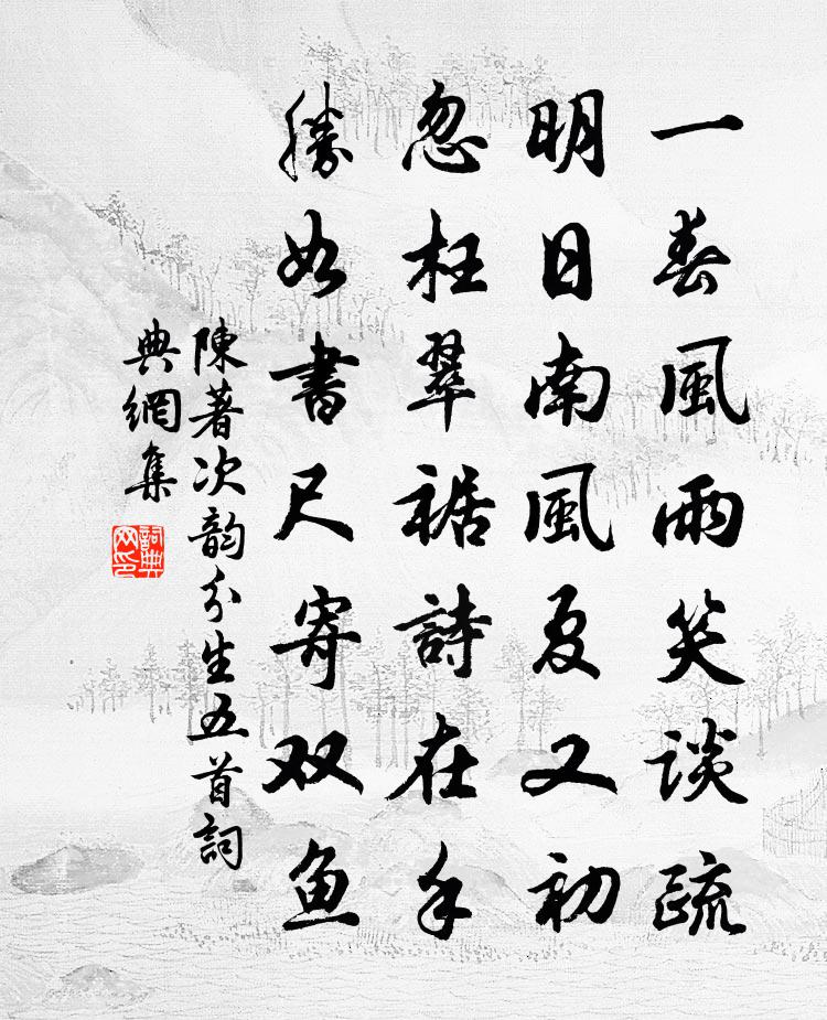 詩詞名句歷史字典書法欣賞書法字典國語詞典說文解字康熙字典古漢語字典標 題 作 者 詩 句 次韻分生五首作者:陳著 朝代:宋代次韻分生五首原文一春風雨笑談疏,明日南風夏又初。忽枉翠裾詩在手,勝如書尺寄雙魚。詩詞問答問:次韻分生五首的作者是誰?答:陳著問:次韻分生五首寫於哪個朝代?答:宋代陳著次韻分生五首書法欣賞次韻分生五首書法作品詩詞推薦用餘子畏韻其詩有警句雲若知瓦礫真成道便覺陳藻〔宋代〕少長城闉老一村,平生好語不曾聞。百年馬鬣空埋我,三載鰲頭更祝君。幸有鄰僧分隙地,豈無座主識雄文。須臾雪羅隱〔唐代〕細玉羅紋下碧霄,杜門顏巷落偏饒。巢居只恐高柯折,旅客愁聞去路遙。撅凍野蔬和粉重,掃庭松葉帶酥燒。寒窗西湖舊夢汪元量〔宋代〕月香水影逋梅白,雨色晴光坡柳青。一箇銷金鍋子裡,舞裾歌扇不曾停。反輗歌二首趙崇嶓〔宋代〕生人送死人,哀哀淚如霰。生人閱寒暑,冉冉亦如電。來去遞相送,展轉不可見。丘樊謹封殖,陵谷猶有變。萬古山行二絕黎廷瑞〔宋代〕杖藜窅窕更崎嶇,黃葉漫山路欲無。小屋低煙長短竹,曲塘斜日兩三鳧。蘇明允府君輓詞陳襄〔宋代〕禮閣儀新奏,延英席久虛。自從掩關臥,無復草玄書。東府先生誄,西山孝子廬。誰言身後事,文止似相如。自勉陸游〔宋代〕自信直如弦,殘年偶得全。老猶嗤佞佛,貧亦諱言錢。旦暮勤鞭策,麈埃痛洗湔。仍須語兒子,此事要家傳。寄暢當(聞以子弟被召從軍)韋應物〔唐代〕寇賊起東山,英俊方未閒。聞君新應募,籍籍動京關。出身文翰場,高步不可攀。青袍未及解,白羽插腰間。昔為雙井圖徐得之〔宋代〕異時生出鬼門關,及去宜州竟不還。意者早知名是累,持鋤應只在家山。詠苕霅釋文珦〔宋代〕苕霅水煙鄉,溪風六月涼。家家有船步,日日聽魚根。柳樹垂陰密,蘋花入夢香。山入心亦愛,時到詠滄浪。偈頌一百六十首·其二釋宗杲〔宋代〕大道只在目前,要且目前難睹。欲識大道真體,不離聲色言語。李仲鎮懶窠韓元吉〔宋代〕我帶天下帶懶,自謂帶世莫雙。朅來官中都,懶極濟以憃。有如千黑魚,東西轉橋矼。又如橐駝臥,厭逐群吠尨。又題牡丹上主人司空孫魴〔唐代〕一年芳勝一年芳,愛重賢侯意異常。手辟紅房看闊狹,自張青幄蓋馨香。白疑美玉無多潤,紫覺靈芝不是祥。只恐西白溪期裴方舟不至皎然〔唐代〕望君不見復何情,野草閒雲處處生。應向秦時武陵路,花間寂歷一人行。下第後屏居長安,書懷寄太原從事劉駕〔唐代〕刖足豈更長,良工隔千里。故山彭蠡上,歸夢向汾水。低摧神氣盡,僮僕心亦恥。未達誰不然,達者心思此。行年徐郎廟楊時〔宋代〕古廟靈場枕碧巔,松楸依約鎖風煙。羽毛一去無訊息,墮落人間幾百年。七不堪詩七首宋祁〔宋代〕五不堪,未始臨喪吊。倍重秦失號,禮譏老聾笑。和陶與殷晉安別韻送陳順之赴官吳芾〔宋代〕子往治畿邑,趣裝亦良勤。惠然來過我,話別更情親。顧我老且病,已與死為鄰。獨思陪勝侶,倍覺惜清晨。忍唱次韻吉老十小詩黃庭堅〔宋代〕什襲發硎刀,無名自貴高。秋衣猶葛制,午飯厭溪毛。次余仲庸松風閣韻十九首 其三裘萬頃〔宋代〕古木陰陰六月涼,幽花藉藉四時香。絲桐清夜作三弄,明月入簾風拂床。名句推薦坐上別愁君未見,歸來欲斷無腸。蘇軾《臨江仙·送王緘》 凡出言,信為先。詐與妄,奚可焉?李毓秀《弟子規·信》 興天下之利,除天下之害。墨子《墨子·12章 尚同(中)》 悠悠洛陽道,此會在何年。陳子昂《春夜別友人二首·其一》 寵辱不驚,肝木自寧陳繼儒《小窗幽記·集靈篇》 一霎荷塘過雨,明朝便是秋聲。項鴻祚《清平樂·池上納涼》 城門失火,殃及池魚。佚名《增廣賢文·上集》 投策命晨裝,暫與園田疏。陶淵明《始作鎮軍參軍經曲阿作》 薄霧濃雲愁永晝,瑞腦銷金獸。李清照《醉花陰·薄霧濃雲愁永晝》 得百姓之力者富,得百姓之死者強,得百姓之譽者榮。荀子《荀子·王霸》