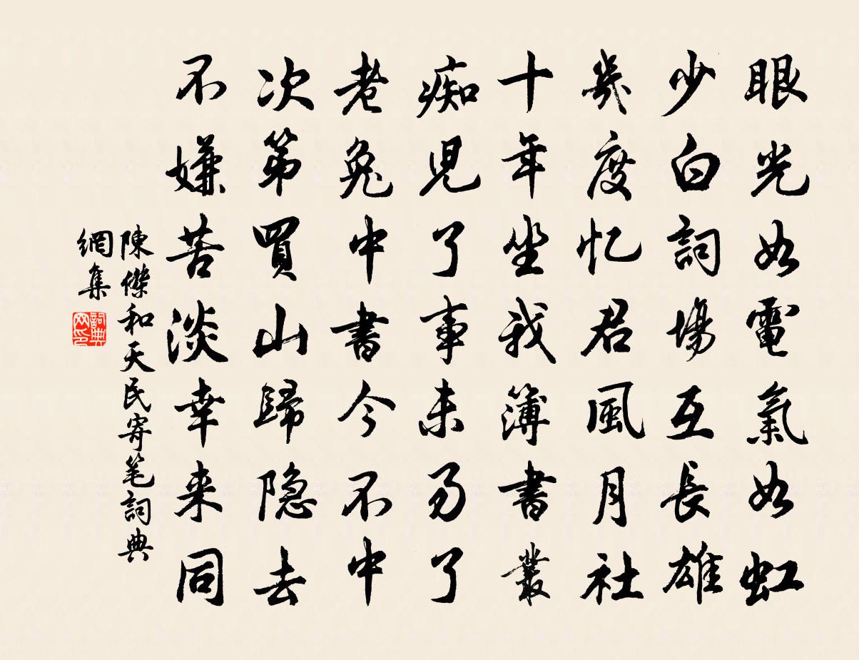 詩詞名句歷史字典書法欣賞書法字典國語詞典說文解字康熙字典古漢語字典標 題 作 者 詩 句 和天民寄筆作者:陳杰 朝代:宋代和天民寄筆原文眼光如電氣如虹,少白詞場互長雄。幾度憶君風月社,十年坐我簿書叢。痴兒了事未易了,老兔中書今不中。次第買山歸隱去,不嫌苦淡幸來同。詩詞問答問:和天民寄筆的作者是誰?答:陳杰問:和天民寄筆寫於哪個朝代?答:宋代陳杰和天民寄筆書法欣賞和天民寄筆書法作品詩詞推薦上高鼻軒起亭二絕蘇轍〔宋代〕山下清溪溪上市,溪光山色映人煙。幽亭正在人聲里,長與溪山共寂然。讀蘇叔黨汝州北山雜詩次其韻陸游〔宋代〕吾幼從父師,所患經不明,何嘗效侯喜,欲取能詩聲;亦豈劉隋州,五字矜長城。秋雨短檠夜,掉頭費經營,區區次韻因上人晚菊簡魏定父王之道〔宋代〕道人如青松,孤高不成業。愛此黃金花,蕭然有淳風。新詩皎秋月,警我野性慵。佳意不在酒,此身今醉翁。以橘贈湖州李公擇陳舜俞〔宋代〕去著登山屐,夢歸清霅門。親嘗霜後橘,思侑府中樽。為問林間路,曾過水畔村。人言封境近,往往被公恩。寧州道中楊夔〔唐代〕城枕蕭關路,胡兵日夕臨。唯憑一炬火,以慰萬人心。春老雪猶重,沙寒草不深。如何驅匹馬,向此獨閒吟。平都山陸游〔宋代〕名山近江步,蠟屐得閒行。奔鹿沖人過,藏丹徹夜明。唐碑多斷蝕,梁殿半欹傾。洞口雲常涌,檐牙柏再榮。行逢秋熱二首楊萬里〔宋代〕年年極暑與秋期,日日秋陽在暮時。我自愁吟無意思,蟬聲移近入檐枝。題山寺井賈島〔唐代〕沈沈百尺餘,功就豈斯須。汲早僧出定,鑿新蟲自無。藏源重嶂底,澄翳大空隅。此地如經劫,涼潭會共枯。辛春日詞御閣晏殊〔宋代〕青輅迎春習習來,天泉池上曉冰開。珠幡已報三陽候,柏葉將陳萬壽杯。甜苦筍錢聞詩〔宋代〕先生仙去擁霓旌,數宇猶存簡寂名。還向箇中真得味,從教甜苦筍邊生。秋興八首追和杜老王之道〔宋代〕勳業休煩付考功,此生終待老山中。宦情薄似賢人酒,詩思清於少女風。秋雨養肥桑耳白,溪流濯出柳須紅。不堪開歲連日大雪陸游〔宋代〕開歲大雪如飛鷗,轉盼已見平檐溝。村深出門風裂面,況復取醉湖邊樓。從來春雪不耐久,臥聽點滴無時休。去年風嘆呂溫〔唐代〕青海風,飛沙射面隨驚蓬。洞庭風,危牆欲折身若空。西馳南走有何事,會須一決百年中。新渠詩蘇軾〔宋代〕新渠之水,其來舒舒。溢流於野,至於通衢。渠成如神,民始不知。問誰為之?邦君趙侯。新渠之田,在渠左右。寄杜位(頃者與位同在故嚴尚書幕)杜甫〔唐代〕寒日經檐短,窮猿失木悲。峽中為客恨,江上憶君時。天地身何在,風塵病敢辭。封書兩行淚,沾灑裛新詩。送九華道士游茅山杜荀鶴〔唐代〕忽起地仙興,飄然出舊山。於身無切事,在世有餘閒。日月浮生外,乾坤大醉間。故園華表上,誰得見君還。蘇武慢馮尊師〔元代〕元氣充餐, * 遮體,萬事轉頭何濟。黃芽白雪,黑水紅雲,軒帝注傳名世。深謝名師,說破希夷,妙理本來精粹同王維集青龍寺曇壁上人兄院五韻王昌齡〔唐代〕本來清淨所,竹樹引幽陰。檐外含山翠,人間出世心。圓通無有象,聖境不能侵。真是吾兄法,何妨友弟深。天香夜別張五李白〔唐代〕吾多張公子,別酌酣高堂。聽歌舞銀燭,把酒輕羅裳。橫笛弄秋月,琵琶彈陌桑。龍泉解錦帶,為爾傾千觴。奉和待勤照上人不至皇甫冉〔唐代〕東洛居賢相,南方待本師。旌麾儼欲動,杯錫杳仍遲。積雪迷何處,驚風泊幾時。大臣能護法,況有故山期。名句推薦江水浸雲影,鴻雁欲南飛。朱熹《水調歌頭·隱括杜牧之齊山詩》 牽牛織女遙相望,爾獨何辜限河梁。曹丕《燕歌行二首·其一》 對朝雲靉靆,暮雨霏微,亂峰相倚。黃庭堅《醉蓬萊》 雨打梨花深閉門,忘了青春,誤了青春。唐寅《一剪梅·雨打梨花深閉門》 憑觴靜憶去年秋,桐落故溪頭。晏幾道《訴衷情·憑觴靜憶去年秋》 天地不仁,以萬物為芻狗;聖人不仁,以百姓為芻狗。老子《老子·道經·第五章》 春雲吹散湘簾雨,絮黏蝴蝶飛還住。納蘭性德《菩薩蠻·春雲吹散湘簾雨》 春透水波明,寒峭花枝瘦。秦湛《卜運算元·春情》 萬里辭家事鼓鼙,金陵驛路楚雲西。劉長卿《送李判官之潤州行營》 雨歇梧桐淚乍收,遣懷翻自憶從頭。納蘭性德《浣溪沙·雨歇梧桐淚乍收》