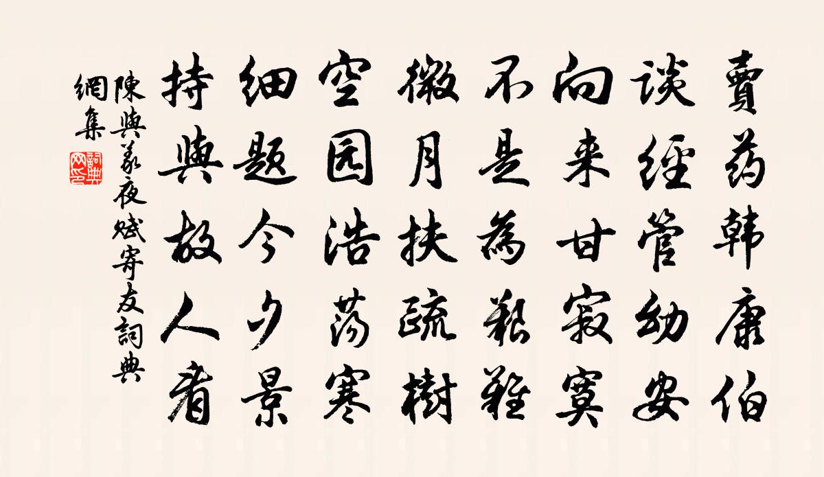 賣藥韓康伯,談經管幼安。向來甘寂寞,不是為艱難。
