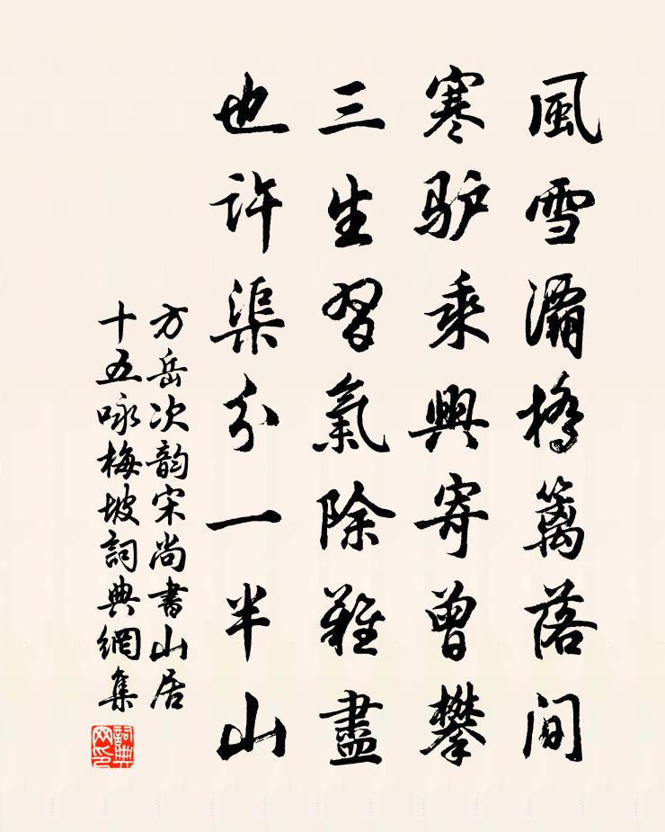- 冷冷水向橋東去。漠漠雲歸溪上住。劉鎮《玉樓春·東山探梅》