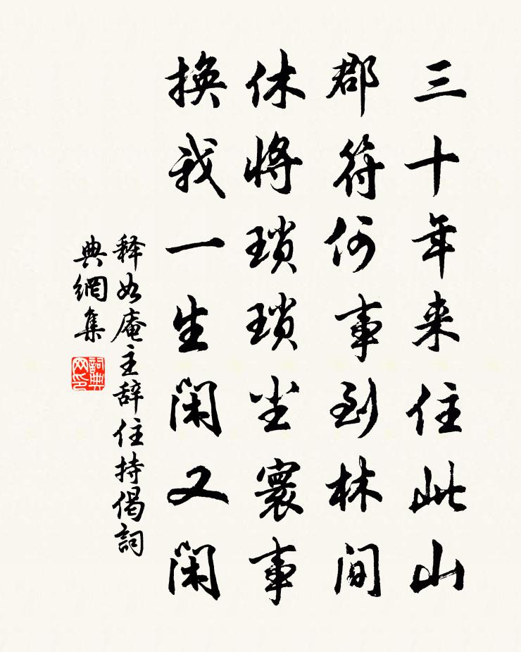 詩詞名句歷史字典書法欣賞書法字典國語詞典說文解字康熙字典古漢語字典標 題 作 者 詩 句 辭住持偈作者:釋如庵主 朝代:宋代辭住持偈原文三十年來住此山,郡符何事到林間。休將瑣瑣塵寰事,換我一生閒又閒。詩詞問答問:辭住持偈的作者是誰?答:釋如庵主問:辭住持偈寫於哪個朝代?答:宋代釋如庵主辭住持偈書法欣賞辭住持偈書法作品詩詞推薦臨江仙(曉晴)劉辰翁〔宋代〕海日輕紅通似臉,小窗明麗新晴。滿懷著甚是真情。不知春睡美,為愛曉寒輕。說似吳山樓萬疊,雪銷未盡宮城。觀漁行孫岩〔宋代〕霜降平湖鑒群象,中有黃魚幾一丈。漁師早已中豪家,今旦連舟布新網。東西南北三重圍,圍形漸縮如小池。孟獲次韻謝董君讀予詩稿方回〔宋代〕宇宙茫茫戰馬塵,中原文獻不無人。詩裁彩筆天公妒,書擁青燈夜氣神。簁雨簸風六月冷,磔雲裂霧千峰新。何當大熱五首 其一戴復古〔宋代〕天地一大窯,陽炭烹六月。萬物此陶鎔,人何怨炎熱。君看百穀秋,亦自暑中結。田水沸如湯,背葉濕如潑。農夫沁園春 東館路中許衡〔元代〕自笑平生。一事無成。險阻備經。記丁年去國,干戈擾攘,囗囗囗囗,蹤跡飄零。魯道塵埃,齊封景物,旅況悠悠聞道卿途中授計司判官楊億〔宋代〕幾年華省冠名曹,歸棹夤緣入海濤。才奉色難馨夕膳,便將心計析秋毫。政成婺女生祠在,地近明光伏奏勞。夜直滿江紅元好問〔金代〕枕上吳山,隱隱見、宮眉修碧。人好在、斷渾似,畫圖相識。羅襪塵香來有信,玉簫聲遠尋無跡。恨不將、春色醉偈頌二百零五首釋正覺〔宋代〕不問維摩經,看底甚麽經,大千卷出破塵情。水中鹽味,色里膠青,機前有路妙難名。才形言像迢然去,又是泥團雨後王冕〔元代〕雨後千山淨,炊煙處處新。世情殊不足,風俗豈能淳?老棘餘生意,槁花空悟春。相逢非古意,在我著烏巾。偈頌十三首釋智遇〔宋代〕傷弓之鳥,見曲木而高飛。有人見得雲門,善為我辭。春晚訪鏡湖方乾貫休〔唐代〕幽居湖北濱,相訪值殘春。路遠諸峰雨,時多擉鱉人。蒸花初釀酒,漁艇劣容身。莫訝頻來此,伊余亦隱淪。西齋秋感二十首方回〔宋代〕江上楓已丹,林中橘猶綠。天寒百骸痛,抱膝玩幽獨。生世六十年,鮮榮足憂辱。賦歸棄空廬,惜此數竿竹。兒孫岩下放言五首之釣台黃庭堅〔宋代〕林居野處,而貫萬事。花落鳥啼,而成四時。物有才德,水為官師。空明湛群木之影,搏擊下諸峰之巘。游魚靜而題劍門杜光庭〔唐代〕誰運乾坤陶冶功,鑄為雙劍倚蒼穹。題詩曾駐三天駕,礙日長含八海風。贊歷代天師第二十五代諱乾曜白玉蟾〔宋代〕橫握鏌鋣入洞天,洞天漠漠掩寒煙。仁宗親問金丹訣,笑指斜陽噪亂蟬。邊頭作李端〔唐代〕邠郊泉脈動,落日上城樓。羊馬水草足,羌胡帳幕稠。射鵰過海岸,傳箭怯邊州。何事歸朝將,今年又拜侯。除夜自石湖歸苕溪 其二姜夔〔宋代〕美人台上昔歡娛,今日空台望五湖。殘雪未融青草死,苦無麋鹿過姑蘇。登華岩寺樓望終南山贈林校書兄弟孟郊〔唐代〕地脊亞為崖,聳出冥冥中。樓根插迥雲,殿翼翔危空。前山胎元氣,靈異生不窮。勢吞萬象高,秀奪五嶽雄。一望薛司空自青州歸朝楊巨源〔唐代〕天眷君陳久在東,歸朝人看大司空。黃河岸畔長無事,滄海東邊獨有功。已變畏途成雅俗,仍過舊里揖秋風。一門花影蘇軾〔宋代〕重重疊疊上瑤台,幾度呼童歸不開。剛被太陽收拾去,卻教明月送將來。名句推薦雲拼欲下星斗動,天樂一聲肌骨寒。劉禹錫《八月十五夜桃源玩月》 村北村南,穀雨才耕遍。范成大《蝶戀花·春漲一篙添水面》 得天下英才而教育之。孟子《孟子·盡心章句上·第二十節》 西施若解傾吳國,越國亡來又是誰。羅隱《西施》 還始覺、留情緣眼,寬頻因春。吳文英《渡江雲三犯·西湖清明》 江上雪,獨立釣漁翁。李綱《望江南·江上雪》 秋風別蘇武,寒水送荊軻。庾信《擬詠懷二十七首·其二十六》 綠淨春深好染衣。際柴扉。賀鑄《釣船歸·綠淨春深好染衣》 歷覽千載書,時時見遺烈。陶淵明《癸卯歲十二月中作與從弟敬遠》 況復煩促倦,激烈思時康。杜甫《夏夜嘆》