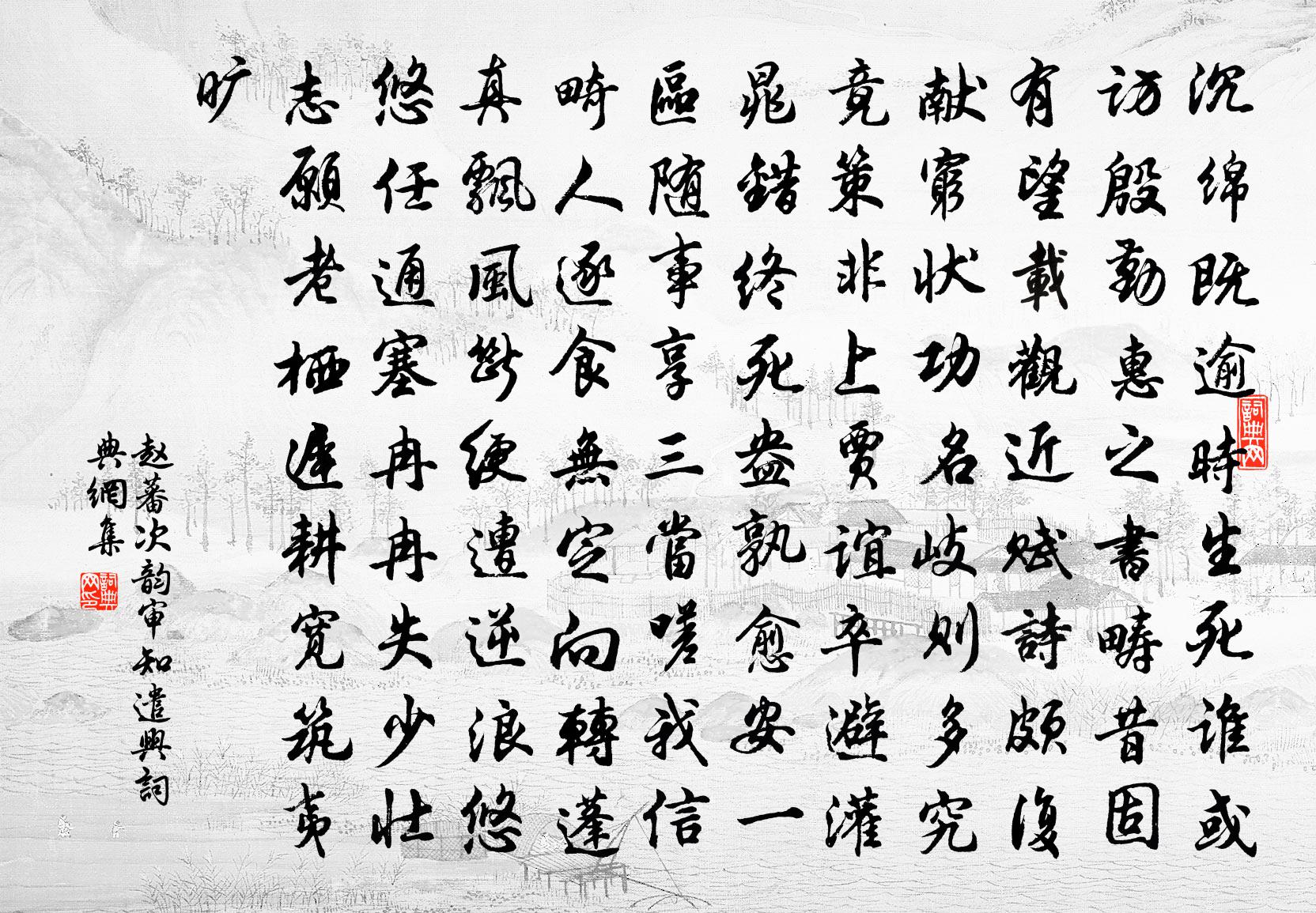 詩詞名句歷史字典書法欣賞書法字典國語詞典說文解字康熙字典古漢語字典標 題 作 者 詩 句 次韻審知遣興作者:趙蕃 朝代:宋代次韻審知遣興原文沉綿既逾時,生死誰或訪。殷勤惠之書,疇昔固有望。載觀近賦詩,頗復獻窮狀。功名岐則多,究竟策非上。賈誼卒避灌,晁錯終死盎。孰愈安一區,隨事享三當。嗟我信畸人,逐食無定向。轉蓬真飄風,斷綆遭逆浪。悠悠任通塞,冉冉失少壯。志願老棲遲,耕寬築夷曠。詩詞問答問:次韻審知遣興的作者是誰?答:趙蕃問:次韻審知遣興寫於哪個朝代?答:宋代趙蕃次韻審知遣興書法欣賞次韻審知遣興書法作品詩詞推薦郡事多冗命繩翁拉彥翔則明德素游趙園彥翔歸程公許〔宋代〕世溷溷爭捷徑,發種種不勝簪。款門恰來石友,倚檻同觀玉岑。利州汪元量〔宋代〕雲棧遙遙馬不前,風吹紅樹帶青煙。城因兵破慳歌舞,民為官差失井田。岩谷搜羅追獵戶,江湖刻剝及漁船。酒邊陸侍石右得祠歸里往餞弗及寄以是詩趙汝回〔宋代〕三以囊封入紫微,一星今夜出朗闈。賈誼幸無湘水謫,知章乞得鏡湖歸。乘潮不等詩人別,望闕恨憂諫者稀。笠澤生查子(和李商老)謝薖〔宋代〕情親難語離,且盡玻璃盞。雙鯉有來時,莫使音書緩。征驂去若飛,不道家山遠。相見小馮君,笑語迎歸雁。言懷張蠙〔唐代〕不將高蓋竟煙塵,自向蓬茅認此身。唐祖本來成大業,豈非姚宋是平人。或問茉莉素馨孰優予日素馨與茉莉香比肩但素鄭剛中〔宋代〕茉莉天姿如麗人,肌理細膩骨肉勻。眾葉薿薿開綠雲,小蕊大花氣淑貞。素馨於時亦呈新,蓄香便未甘後塵。獨恨還都宋祁〔宋代〕一封東走罷州麾,卻趁清班上赤墀。侍史香爐留直夜,王孫春草見歸時。虛名所賴天藏拙,晚歲無如病與衰。要在臨江仙 以鴛鴦梅一盆壽程靜山平章程文海〔元代〕千歲蒼虬成玉樹。江南江北孤芳。平生何處最聞香。五更江上路,幾度月中霜。休笑梅兄今老大,年年青子雙雙。中奉大夫直徽猷閣致仕邵及之輓詞二首周必大〔宋代〕廉甚仍知止,高風似孔戣。北歸垂橐日,南省掛冠時。清白傳諸子,安閒閱十期。今誰主文字,好繼退之碑。剪彩張九齡〔唐代〕奼女矜容色,為花不讓春。既爭芳意早,誰待物華真。葉作參差發,枝從點綴新。自然無限態,長在艷陽晨。題大盈驛壁黃公度〔宋代〕西風落莫空館,暮色迷濛遠戀。家近不妨酒盡,夜寒陡怯衣單。皇后合春帖子趙湘〔唐代〕紫蘭紅蓼簇香盤,曉逐金壺下太官。朝罷三宮歸已晚,日華明麗雪消殘。偶題(前首一作杜光庭詩)鄭遨〔唐代〕似鶴如雲一個身,不憂家國不憂貧。擬將枕上日高睡,賣與世間榮貴人。帆力劈開滄海浪,馬蹄踏破亂山青。浮名賦得秋江晚照徐鉉〔唐代〕落日照平流,晴空萬里秋。輕明動楓葉,點的亂沙鷗。罾網魚梁靜,笞簦稻穗收。不教行樂倦,冉冉下城樓。久病,或勸勉強游適,吟四絕答之范成大〔宋代〕捫虱即是忙事,驅蠅豈非褊心。香暖香寒功課,窗明窗暗光陰。安樂窩中吟邵雍〔宋代〕安樂窩中甚不貧,中間有榻可容身。儒風一變至於道,和氣四時長若春。日月作明明主日,人言成信信由人。唯人憶游嵩山梅堯臣〔宋代〕四字丹書萬仞崖,神清之洞鎖樓台。煙霞極目無人到,鸞鶴今應待我來。冬至日天慶觀朝拜,雲日晴麗,遙想郊禋慶成范成大〔宋代〕淅淅霜風不滿旗,紫煙黃氣捧朝曦。五更貫索埋光後,萬里鉤陳放仗時。留滯周南無舊事,布宣漢德有新詩。豐年曲江亭望慈恩寺杏園花發周弘亮〔唐代〕江亭閒望處,遠近見秦源。古寺遲春景,新花發杏園。萼中輕蕊密,枝上素姿繁。拂雨雲初起,含風雪欲翻。容輝減字木蘭花尹志平〔元代〕同塵混世。誰解忘言無酒醉。混世同塵。落魄逍遙甘分貧。靈源不昧。剩積無涯真寶貝。不昧靈源。一氣清成要上名句推薦淺把涓涓酒,深憑送此生。杜甫《水檻遣心二首》 壯歲旌旗擁萬夫,錦襜突騎渡江初。辛棄疾《鷓鴣天·有客慨然談功名因追念少年時事戲作》 聞人善則疑之,聞人惡則信之,此滿腔殺機也。陳繼儒《小窗幽記·集靈篇》 無論作何等人,總不可有勢利氣王永彬《圍爐夜話·第三五則》 迢遞嵩高下,歸來且閉關。王維《歸嵩山作》 漢兵已略地,四方楚歌聲。虞姬《和項王歌》 臥聞兒女夸翁健,詩句年光一樣新劉克莊《戊午元日二首》 雨聲颼颼催早寒,胡雁翅濕高飛難。杜甫《秋雨嘆三首》 別院深深夏席清,石榴開遍透簾明。蘇舜欽《夏意》 哀莫大於心死。莊子《莊子·外篇·田子方》