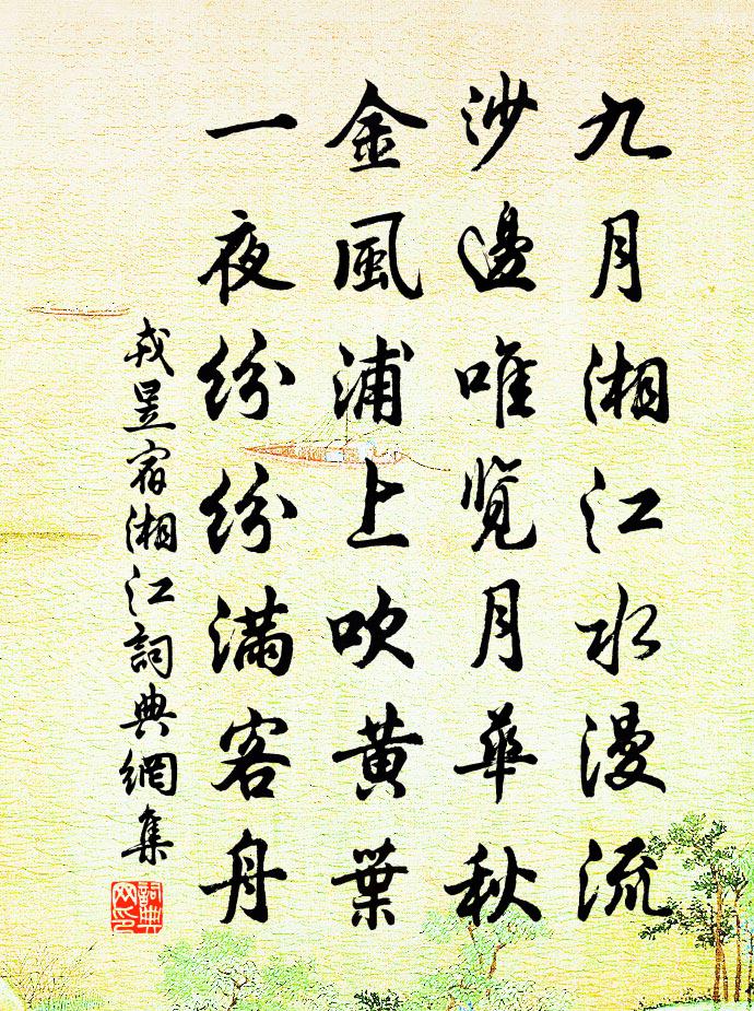 九月湘江水漫流,沙邊唯覽月華秋。金風浦上吹黃葉,一夜紛紛滿客舟。