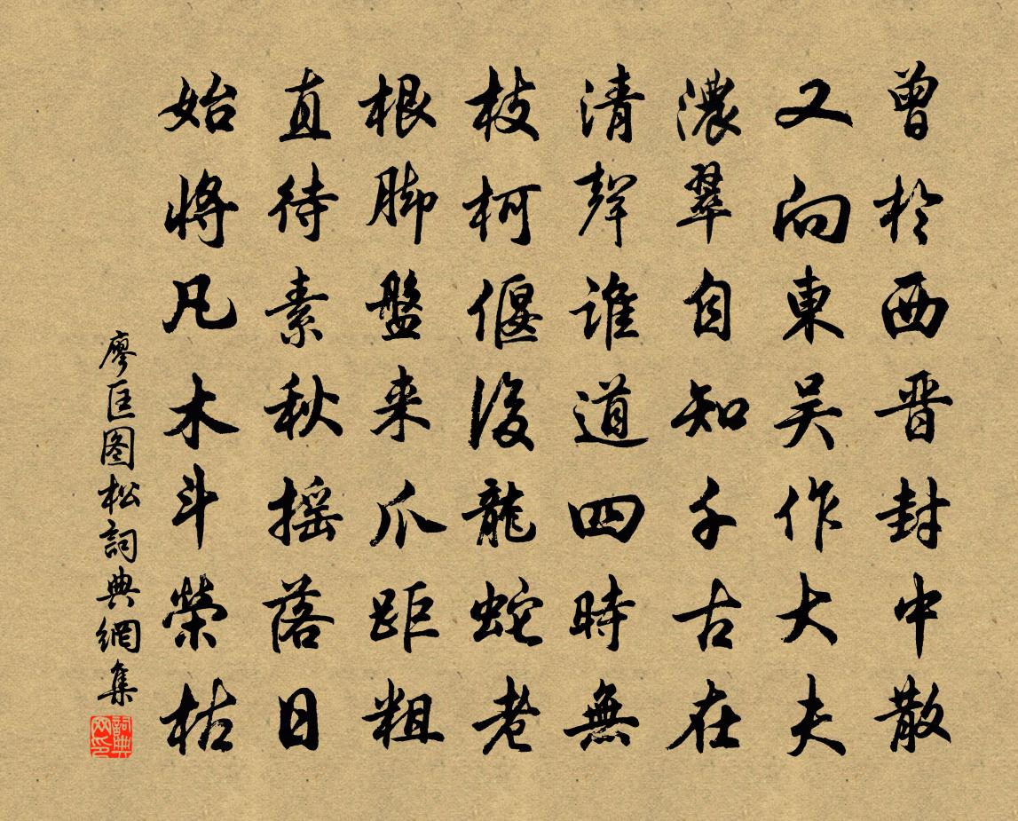詩詞名句歷史字典書法欣賞書法字典國語詞典說文解字康熙字典古漢語字典標 題 作 者 詩 句 松作者:廖匡圖 朝代:唐代松原文曾於西晉封中散,又向東吳作大夫。濃翠自知千古在,清聲誰道四時無。枝柯偃後龍蛇老,根腳盤來爪距粗。直待素秋搖落日,始將凡木斗榮枯。詩詞問答問:松的作者是誰?答:廖匡圖問:松寫於哪個朝代?答:唐代問:松是什麼體裁?答:七律廖匡圖松書法欣賞松書法作品注釋全唐詩:卷740-13詩詞推薦華峰亭喻良能〔宋代〕華峰抱紫翠,茲亭瞰清幽。春林羅畫屏,新月吐玉鉤。宛如東屯居,恍若南澗游。信美吾亦樂,特用慰淹留。次信文早春韻洪皓〔宋代〕一星終後尚蹉跎,四壁如懸已化梭。方殢聖賢排旅悶,忽驚天地應人和。春風乍扇融冰雪,佛火初收散綺羅。遐想奉陪韋中丞使君游鶴林寺皇甫曾〔唐代〕古寺傳燈久,層城閉閣閒。香花同法侶,旌旆入深山。寒磬虛空里,孤雲起滅間。謝公憶高臥,徒御欲東還。眼兒媚汪元量〔宋代〕記得年時賞荼蘼。蝴蝶滿園飛。一雙寶馬,兩行簫管,月下扶歸。而今寂寞人何處,脈脈淚沾衣。空房獨守,風穿西齋秋感二十首方回〔宋代〕血氣少未定,所見恨淺局。百鍊至老成,精力已不足。所□著法言,紀事篡實錄。向來竊有志,遲回未欲速。□□道中即事姚勉〔宋代〕霜融霧消又作晴,四山日氣烘春明。黃葉如金紅如錦,枯梢無葉更覺清。陳宣乾至晐項安世〔宋代〕十年無事書生病,一日談兵志士忙。虜退便收前印綬,秋來仍著戰衣裳。天寒白兆腥風起,月黑黃陂燐火光。試問徵招調中腔(天寧節)王安中〔宋代〕紅雲蒨霧籠金闕。聖運葉、星虹佳節。紫禁曉風馥天香,奏九韶、帝心悅。瑤階萬歲蟠桃結。睿算永、壺天風月。銅螭署楊修〔宋代〕挈壺傳箭逼天聰,鑄出蟠螭巧范同。何事腹中藏怪物,人驚蝘蜓氣如虹。夜坐元稹〔唐代〕雨滯更愁南瘴毒,月明兼喜北風涼。古城樓影橫空館,濕地蟲聲繞暗廊。螢火亂飛秋已近,星辰早沒夜初長。孩提夏旱一首蘇籀〔宋代〕陽厄會百六,驕亢慘如燬。素秋垂二七,十旬赤千里。土田靈龜坼,水車渴烏柅。歷時書不雨,槁矣吁田穉。雖然次韻酬潘茂洪見寄張鎡〔宋代〕懷人非特為能詩,襟抱如君坦復怡。三徑許時無地覓,一生高處只天知。江湖老夢疎篷慣,燈火涼秋細字宜。此興訪郭圓機機宜不遇晁說之〔宋代〕久雨宜新霽,秋光更可憐。尚嫌鴻雁近,肯使鹿麑前。興矚唯高隱,名談盡昔賢。那知忙事在,曳杖行荒田。曲江獨行招張十八白居易〔唐代〕曲江新歲後,冰與水相和。南岸猶殘雪,東風未有波。偶游身獨自,相憶意如何?莫待春深去,花時鞍馬多。次韻王尉致香方岳〔宋代〕客有知吾癖,能分一雪涼。只將蘭意思,自與夢商量。竹密雨聲雋,窗深山意長。研朱對周易,老鼎亦英揚。閏六月,立秋後暮熱,追涼郡圃二首楊萬里〔宋代〕上得城來眼頓明,暮山爭獻數炎青。垂楊舞罷西風葉,一葉多時獨未停。高平縣東私路李賀〔唐代〕侵侵槲葉相,木花滯寒雨。今夕山上秋,永謝無人處。石溪遠荒澀,棠實懸辛苦。古者定幽尋,呼君作私路。檐卜花楊巽齋〔宋代〕檐卜標名自寶坊,薰風開遍一庭霜。間來掃地跏趺坐,受用此花無盡香。榴皮題壁任鄭〔宋代〕榴皮不見煙火語,雋詠坡仙三和餘。從此留芳應未歇,斕斑蘚壁可無書。錢知縣輓詞葉適〔宋代〕送子三為邑,十年嗟往來。誰言債難了,不與命同回。卓魯終留愛,龔黃豈蔽材。雲愁旦暮雪,雪打又添哀。名句推薦狡兔盡則良犬烹,敵國滅則謀臣亡。韓非及後人《韓非子·內儲說下六微》 南陵水面漫悠悠,風緊雲輕欲變秋。杜牧《南陵道中 / 寄遠》 曉戰隨金鼓,宵眠抱玉鞍。李白《塞下曲六首·其一》 見梨花初帶夜月,海棠半含朝雨。万俟詠《三台·清明應制》 誰見汀洲上,相思愁白蘋。劉長卿《餞別王十一南遊》 天際兩蛾凝黛,愁與恨、幾時極。韓元吉《霜天曉角·題採石蛾眉亭》 強本而節用,則天不能貧。荀子《荀子·天論》 待到山花爛漫時,她在叢中笑。 * 《卜運算元·詠梅》 兒童相見不相識,笑問客從何處來。賀知章《回鄉偶書二首·其一》 心不可太大,心太大,則舍近圖遠,難期有成矣。王永彬《圍爐夜話·第三十則》