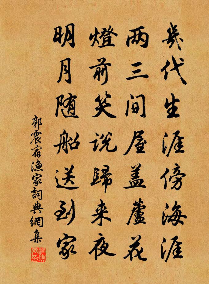 從體裁角度看,這是一首七絕詩。全詩寫夜宿漁家所感到漁家生活的苦樂與漁民豪爽樂觀的性情。首句“幾代生涯傍海涯”中疊用兩個“涯”字,把生涯與海涯聯繫起來,形成音節樸實流暢,樸實中見巧思的妙處。“兩三間屋蓋蘆花”句中的“蘆花”意象,簡潔準確地勾勒出漁家的生活環境。