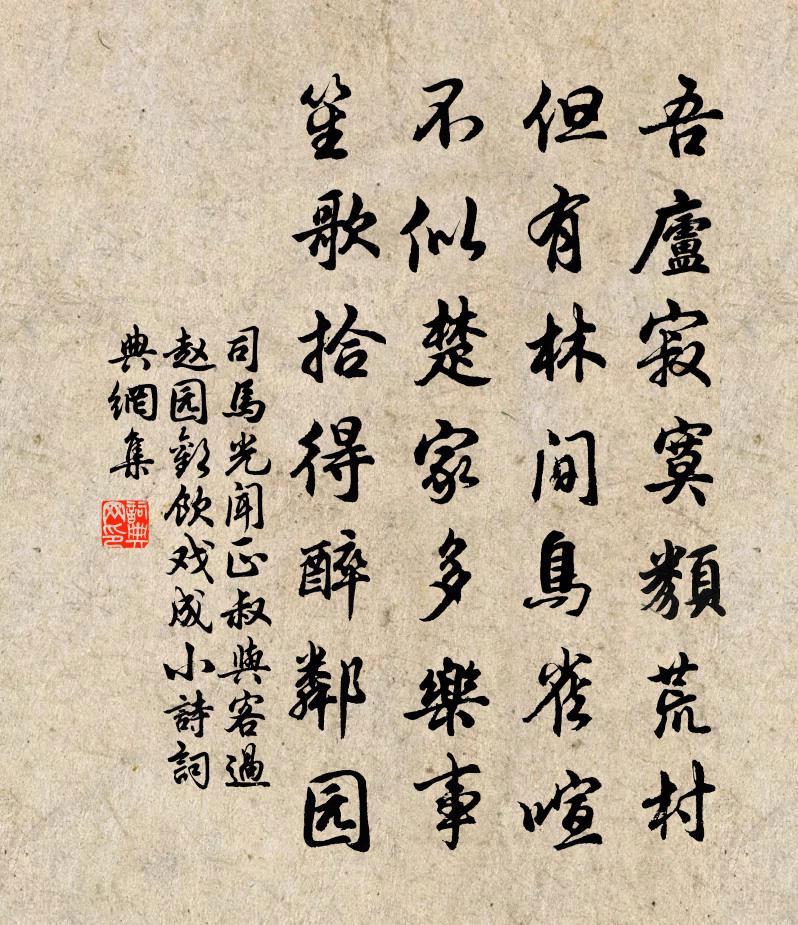 吾廬寂寞類荒村,但有林間鳥雀喧。不似楚家多樂事,笙歌拾得醉鄰園。