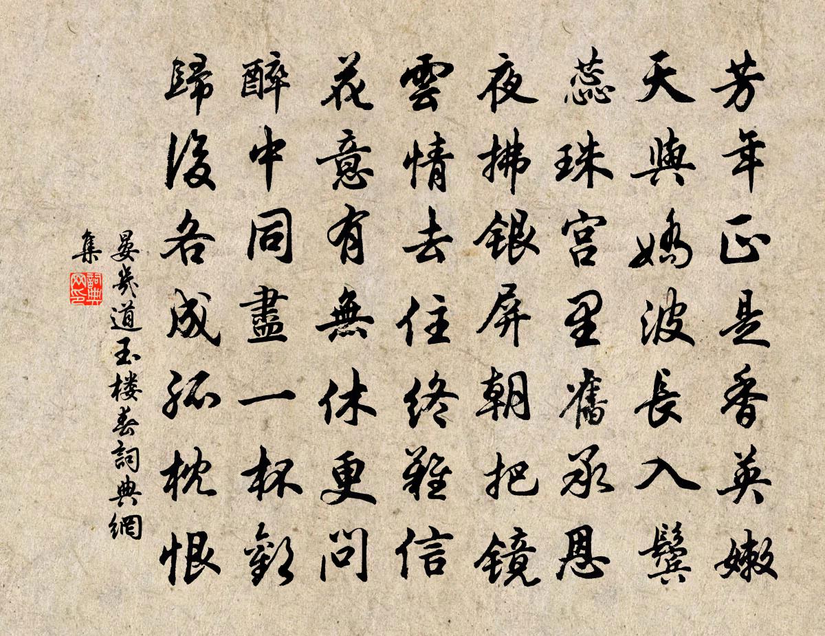 芳年正是香英嫩,天與嬌波長入鬢。蕊珠宮裡舊承恩,夜拂銀屏朝把鏡。