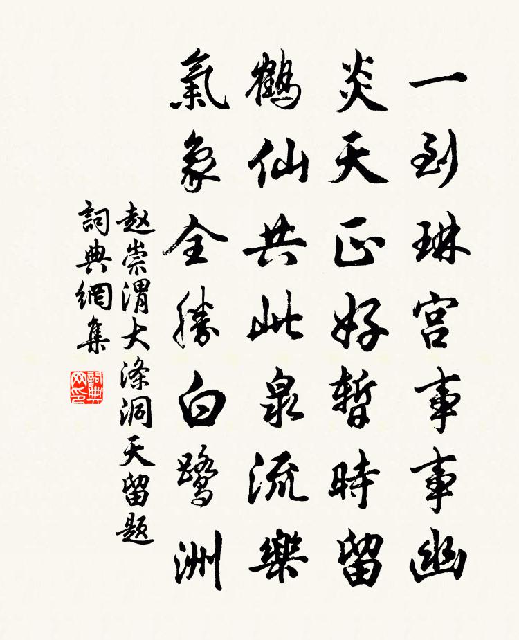 詩詞名句歷史字典書法欣賞書法字典國語詞典說文解字康熙字典古漢語字典標 題 作 者 詩 句 大滌洞天留題作者:趙崇渭 朝代:宋代大滌洞天留題原文一到琳宮事事幽,炎天正好暫時留。鶴仙共此泉流樂,氣象全勝白鷺洲。詩詞問答問:大滌洞天留題的作者是誰?答:趙崇渭問:大滌洞天留題寫於哪個朝代?答:宋代趙崇渭大滌洞天留題書法欣賞大滌洞天留題書法作品詩詞推薦哭容倅舅氏二首劉克莊〔宋代〕尚記陪言笑,如今叫不應。兒分身後俸,僧上殯前燈。宅有遺基在,田無一畝增。問天何至此,在日以廉稱。北游夜懷許彬〔唐代〕苦心終是否,舍此復無營。已致歸成晚,非緣去有程。館空吟向月,霜曙坐聞更。住久誰相問,馳羸又獨行。次韻娑羅花洪咨夔〔宋代〕摩耶樹老無多子,天女花妍有許般。莫把東邊枝便斫,堂堂留與碧霄乾。南山羅漢贊十六首黃庭堅〔宋代〕四十九年大教主,波旬請故入涅盤。佛身常尋法界住,非其境界故不見。未法眾生蒶福田,眾魔染衣汗戒律。稽首送徐季公運乾罷任王之道〔宋代〕羈棲無奈老而窮,又見徐卿馬首東。快意一時荷葉雨,增明千里稻花風。高材合在雲霄上,勝處能忘澗壑中。法護贈釋疏言還道林寺詩李節〔唐代〕湘川床狺狺兮俗床獷且佷,床利殺業偷兮吏莫之馴。繄釋氏兮易暴使仁,釋何在兮釋在斯文,湘水滔滔兮四望何依淳熙八年春帖子詞太上皇帝合六首崔敦詩〔宋代〕翠管吹寒去,青旗卷仗來。慈皇千萬壽,春日上春杯。曲水亭董嗣杲〔宋代〕竹色松陰翠浪浮,春風吹落澗聲幽。古亭當路空涼透,溪水循盤散漫流。繭紙敘詩年幾換,羽觴傳酒禊重修。晴嵐過宋呈曾公冕吳則禮〔宋代〕團欒棗熟官焙奇,澆我清秋雁鶩池。絕聞人說宋城令,真是南豐僕射兒。運糧行劉克莊〔宋代〕極邊官軍守戰場,次邊丁壯俱運糧。縣符旁午催調發,大車小車聲軋軋,霜寒晷短路又滑,擔夫肩穿牛蹄脫。嗚呼嘉禾合穎佚名〔宋代〕天祚皇王德,神呈瑞谷嘉。感時苗特秀,證道葉方華。氣轉騰佳色,雲披映早霞。薰風浮合穎,湛露淨祥花。六穗宣城鹿鳴宴吳泳〔宋代〕儒臣簪筆典州麾,重為江山緝舊儀。宴序古來元有禮,鹿鳴廢后更無詩。科名到手還須耐,文字當場莫好奇。更盡竹溪再和余亦再作劉克莊〔宋代〕謹守三緘晚嘿,僅含兩齒早衰。先賢食粥乞米,呆漢炊沙作糜。柬陳宗之趙汝績〔宋代〕略約東風客袖寒,賣花聲里立闌乾。有錢不肯沽春酒,旋買唐詩對雨看。舟行三章劉學箕〔宋代〕扁舟兮容與,浮雲兮舒捲。波澄兮練橫,山秀兮屏展。散發兮平罔,濯纓兮清淺。皇皇兮何之,路長兮悠緬。早賦西寨寓居徐夤〔唐代〕閒讀南華對酒杯,醉攜筇竹畫蒼苔。豪門有利人爭去,陋巷無權客不來。解報可能醫病雀,重燃誰肯照寒灰。嚴陵添春色/醉鄉春秦觀〔宋代〕喚起一聲人悄。衾冷夢寒窗曉。瘴雨過,海棠晴,春色又添多少。社瓮釀成微笑。半缺癭瓢共舀。覺健倒,急投床書情奉寄蔣弋陽公張良臣〔宋代〕五都一何綺,歌管政繁會。眷我友明月,援琴寫秋瀨。何言昃離後,一飽困藜稗。風雨墨如翳,欲往徒自礙。詠地藏殿牡丹一莖五花鍾離景伯〔宋代〕春風榮萬木,此卉異常葩。海角逢三月,僧房見五花。馨香驚俗眼,燦爛照高牙。公子休追賞,如來會上夸。送程給事知越州陳昇之〔宋代〕早年交契最綢繆,垂老江城為少留。瀕海新霜築金壘,瑣闈初遠邃廷旒。過家燕坐多賓樂,到郡公餘放吏休。滿目名句推薦如今卻憶江南樂,當時年少春衫薄。韋莊《菩薩蠻·如今卻憶江南樂》 還背垂虹秋去,四橋煙雨,一宵歌酒。吳文英《瑞龍吟·送梅津》 鳥向檐上飛,雲從窗里出。吳均《山中雜詩》 強攜酒、小橋宅,怕梨花落盡成秋色。姜夔《淡黃柳·空城曉角》 讀書不作儒生酸,躍馬西入金城關。謝逸《送董元達》 矜高倨傲,無非客氣降伏得,客氣下而後正氣伸洪應明《菜根譚·概論》 惟有兩行低雁,知人倚、畫樓月。范成大《霜天曉角·梅》 齊有倜儻生,魯連特高妙。李白《古風·齊有倜儻生》 愁煩中具瀟灑襟懷,滿抱皆春風和氣;暗昧處見光明世界,此心即白日青天。王永彬《圍爐夜話·第七八則》 傷心千里江南,怨曲重招,斷魂在否?吳文英《鶯啼序·春晚感懷》