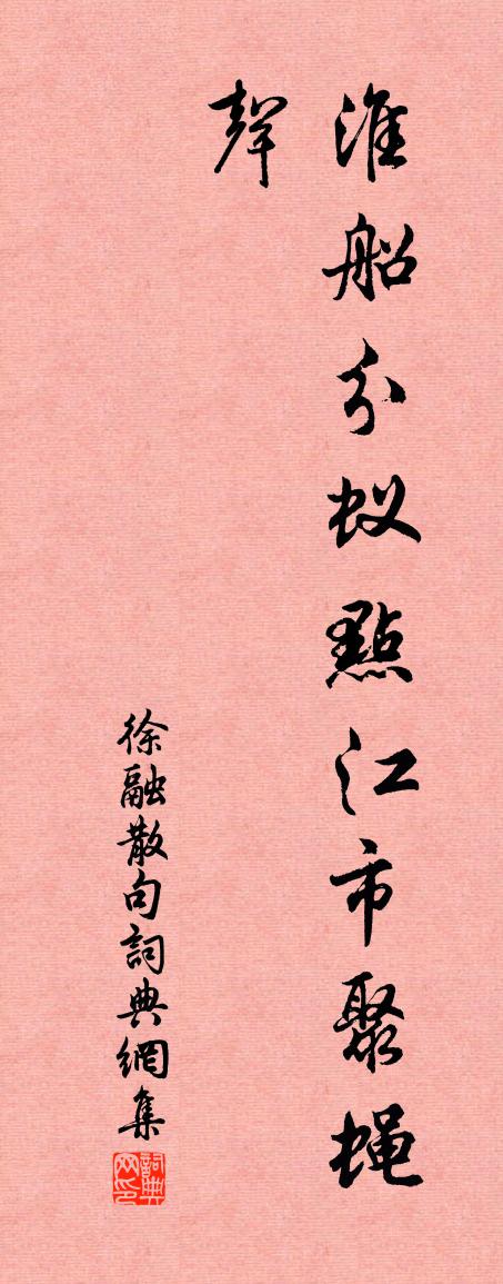 詩詞名句歷史字典書法欣賞書法字典國語詞典說文解字康熙字典古漢語字典標 題 作 者 詩 句 句作者:徐融 朝代:宋代句原文淮船分蟻點,江市聚蠅聲。詩詞問答問:句的作者是誰?答:徐融問:句寫於哪個朝代?答:宋代徐融句書法欣賞句書法作品詩詞推薦次韻毅父戶部兄游棲岩寺晁補之〔宋代〕恐是初禪第一天,千秋龍象鎮危巔。坐看玉井蓮飄葉,絕勝香壚日照煙。點點蟻封知晉甸,紛紛雁背向秦川。要須曉過葉家橋二首楊萬里〔宋代〕雞唱嗔人睡,鴉啼唁客勞。近山煙外遠,矮竹苣邊高。老矣猶長鋏,悠哉未大刀。繞圩無雜樹,一色柳新繅。唐享昊天樂第五武則天〔唐代〕朝壇霧卷,曙嶺煙沉。爰設筐幣,式表誠心。筵輝麗璧,樂暢和音。仰惟靈鑒,俯察翹襟。轉調木蘭花王吉昌〔元代〕氣融和,風韻切。龍蟠虎*,戊庭交結。溫存寸體縈春雪。神光月樣,九天輝徹。照破迷雲摩陣滅。三台六腑,八自中都歸題勝業寺古柏廖行之〔宋代〕昔聞南山下,有柏古且奇。書痴守寒窗,一見嗟無期。歸從軟紅塵,乃識蒼虬姿。青青十畝蔭,凜凜千年枝。山靈江夏送張丞李白〔唐代〕欲別心不忍,臨行情更親。酒傾無限月,客醉幾重春。藉草依流水,攀花贈遠人。送君從此去,回首泣迷津。初授秘監並賜金紫閒吟小酌偶寫所懷白居易〔唐代〕紫袍新秘監,白首舊書生。鬢雪人間壽,腰金世上榮。子孫無可念,產業不能營。酒引眼前興,詩留身後名。閒傾福昌雜詠五首張耒〔宋代〕張翰飄然欲鱠鱸,周南久客意何如。風悲故國荊榛地,日落空城雉兔墟。明月搗衣聞洛杵,故人憑雁寄南書。旅歌送西懷忠朝佐赴象州教授二首趙蕃〔宋代〕西山南浦昔相逢,桂林象郡今相送。長才妙略世所知,諸公遺人胡不用。文風廣被固可喜,志士遠適豈其理。上書奉答樂道韓維〔宋代〕禁職台綱佚舊儒,青林華屋儼高居。炎天久隔押犀論,暇日聊脂載酒車。雨逼秋容生戶牖,風回涼思入襟裾。東朝出城葉茵〔宋代〕清曉出江城,波平覺棹輕。煙荷學人老,風柳作秋聲。歲稔時無事,心和物有情。客來慵與語,苦苦問功名。秋晚即事三首李彌遜〔宋代〕一水縈迴兩岸鷗,翩翩無數近行舟。十年不見渾如舊,有意隨人天際浮。送趙蕃辰州司理韓元吉〔宋代〕故家零落眼中稀,歲月崢嶸踏路岐。詩解窮人君莫恨,錢能使鬼我方知。片言折獄非無日,談笑封侯會有時。一上頌古三十二首釋明辯〔宋代〕盤走珠兮珠走盤,當機脫略好生觀。世人知貴不知價,信手拈來也不難。至性靈迂僻學術空虛幸逢好古之君獲在藏書之李至〔宋代〕蓬閣多餘暇,君恩豈易酬。病猶豈祿賜,閒勝在林丘。風月僧留宿,松筠鶴共游。素餐終不穩,卻擬訪漁舟。題壁佚名〔宋代〕白塔橋邊賣地經,長亭短驛甚分明。如何只說臨安路,不較中原有幾程。新春詞鄭獬〔宋代〕晴暉散入鳳凰樓,一桁朱簾不下鉤。漢殿鬧簪雙彩燕,並和春色上釵頭。懷寄周元翁十首賀鑄〔宋代〕周郎妙雅道,五字可人師。許與非不嚴,奈何取我詩。我詩如秋蟲,徒增長年悲。指疵固有望,逐臭得無嗤。詩鳴送李侍郎歸衡州二首王炎〔宋代〕道重物自輕,心清內無欲。未定胸中見,難行天下獨。冠蓋上青雲,著鞭競馳逐。南山有德人,一笑遺寵辱。巋然浣溪沙劉仲尹〔元代〕繡館人人倦踏青。粉垣深處簸錢聲。賣花門外綠陰輕。簾幕風柔飛燕燕,池塘花暖語鶯鶯。有誰知道一春情。名句推薦淇澳春雲碧,瀟湘夜雨寒。憨山德清《詠竹五首》 集中什九從軍樂,亘古男兒一放翁。梁啓超《讀陸放翁集》 刑天舞乾戚,猛志固常在。陶淵明《讀山海經·其十》 玉骨那愁瘴霧,冰姿自有仙風。蘇軾《西江月·梅花》 一家之計在於和,一生之計在於勤。佚名《增廣賢文·上集》 思其人,至其鄉;其處在,其人亡。司馬光《資治通鑑·漢紀三十九》 傷心秦漢,生民塗炭,讀書人一聲長嘆。張可久《賣花聲·懷古》 不學問,無正義,以富利為隆,是俗人者也。荀子《荀子·儒效》 今為羌笛出塞聲,使我三軍淚如雨。李頎《古意》 我軍青坂在東門,天寒飲馬太白窟。杜甫《悲青坂》