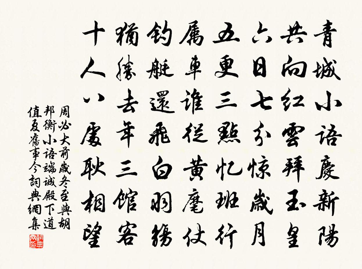 詩詞名句歷史字典書法欣賞書法字典國語詞典說文解字康熙字典古漢語字典標 題 作 者 詩 句 前歲冬至與胡邦衡小語端誠殿下道值夏舊事今作者:周必大 朝代:宋代原文青城小語慶新陽,共向紅雲拜玉皇。六日七分驚歲月,五更三點憶班行。屬車誰從黃麾仗,釣艇還飛白羽觴。猶勝去年三館客,十人八處耿相望。詩詞問答問:《前歲冬至與胡邦衡小語端誠殿下道值夏舊事今》的作者是誰?答:周必大問:該詩寫於哪個朝代?答:宋代書法欣賞前歲冬至與胡邦衡小語端誠殿下道值夏舊事今書法作品詩文賞析【原題】:前歲冬至與胡邦衡小語端誠殿下道值夏舊事今年邦衡舉易緯六日七分之說輒用子美五更三點為對後數日得劉文潛運使書記去年館中團拜人今作八處感嘆成詩詩詞推薦經和靖林先生舊隱強至〔宋代〕獨行先生舊隱荒,大名寧受一棺藏。能詩秀骨應無朽,近冢閒花亦自香。捲軸門人收篋笥,歲時族子奉烝嘗。逸民菩薩蠻吳泳〔宋代〕鶯花舊恨憑誰雪。也須管句燈時節。黃已上眉峰。小槽初滴紅。好天佳月夕。結佩飛霞客。醒恐不如酲。何妨獨屢燈二首林之奇〔宋代〕自從失道人多岐,擿植冥行信所之。昨夜忽然尋得路,孤燈一點是吾命。閱史六首陳造〔宋代〕樹威立敵只商君,俯仰欺誣莽更文。何事君王自聰哲,三槐五鼎買崩分。白雲自西來過書巢南窗陸游〔宋代〕岷山千里青未了,恨隔長江不到吳。羈雲冉冉吾舊識,安得挽之來坐隅!景仁示去歲所賦菊屏菊塔二詩輒以一篇答之韓維〔宋代〕斯民去古遠,日與巧偽遷。粲粲黃金花,揉屈同杯棬。列屏聳浮圖,光彩生盤筵。匪惟悅群兒,愛詠及華顛。我欲兩鵓鴣楊維楨〔元代〕兩鵓鴣,朝朝暮暮啼不休。天陰婦棄去,雨止還相求。天公陰晴變不測,嗟爾夫婦難為逑。勃勃水西頭,啼過東家蝶戀花·送春劉鉉〔宋代〕人自憐春春未去。萱草石榴,也解留春住。只道送春無送處。山花落得紅成路。高處鶯啼低蝶舞。何況日長,燕子石鼓歌韓愈〔唐代〕張生手持石鼓文,勸我試作石鼓歌。少陵無人謫仙死,才薄將奈石鼓何。周綱凌遲四海沸,宣王憤起揮天戈。大開雜曲歌辭東飛伯勞歌李嶠〔唐代〕傳書青鳥書迎簫鳳,書巫嶺荊台書數通夢。書誰家窈窕住園樓,五馬千金照陌頭。羅裙玉佩當軒出,點翠施紅競春五羊同官真率曾豐〔宋代〕小醵無妨職,嬉遊不離城。盤隨豐儉出,杯聽淺深傾。附耳俱情話,巡檐各意行。歸猶有餘興,後會莫寒盟。春日即事五首舒邦佐〔宋代〕穀雨催秧蠶再眠,採桑女伴罷鞦韆。前村亦少遊人到,牛歇濃陰人餉田。謝人賀生子卓田〔宋代〕古雲錦被無兒息,此語從來太沒情。熊夢方慚徒吉葉,弧門尚冀或成功。拙軀增累何須慶,寒舍添丁未是榮。不意謝師恩 前後帶喝馬一聲王處一〔元代〕就中偏許同音耗。一例誰能曉。有個人人靈復俏。攢星步斗,暗符顛倒。金書報。升降朝元道。碧虛仙眷重遷號。十二月二十四日問潭孔昭疾見庭下雨中花雲木胡銓〔宋代〕幽花臥雨滋濺淚,秀色可人羞冶容。卻笑楚人非博物,不知木末有芙蓉。以酒錢送明叔二絕代簡趙蕃〔宋代〕酒錢時乞故憐蘇,三百青銅寄與沽。硯水長枯肺仍渴,可茲涓滴所能濡。老而健貧而詩自志其喜八首方回〔宋代〕萬山讀書地,近偶脫煙氛。幸保分膰廟,常營葬骨墳。婿佳殊逸少,兒懶過宗文。忽已門前月,僧敲醉亦聞。摸魚兒(西湖送春)陳允平〔宋代〕倚東風、畫闌十二,芳陰簾幕低護。玉屏翠冷梨花瘦,寂寞小樓煙雨。腸斷處。悵折柳柔情,舊別長亭路。年華似贈徑山銛書記陸游〔宋代〕徑山老將無勍敵,百萬魔軍俱掃跡。座下何人策雋功,籌略縱橫銛記室。銛公聲名滿吳會,惟有放翁最先識。奕奕送程公明李新〔宋代〕自憐瘦骨飲冰寒,惆悵相逢下眼看。閒想顯人應笑我,道傍初試折腰官。名句推薦敖不可長,欲不可從,志不可滿,樂不可極。戴聖《禮記·曲禮上》 漸秋闌、雪清玉瘦,向人無限依依。李清照《多麗·詠白菊》 昔別君未婚,兒女忽成行杜甫《贈衛八處士》 唯有長江水,無語東流。柳永《八聲甘州·對瀟瀟暮雨灑江天》 驚回千里夢,已三更。起來獨自繞階行。岳飛《小重山·昨夜寒蛩不住鳴》 貴名不可以比周爭也,不可以誇誕有也,不可以勢重脅也荀子《荀子·儒效》 綠酒初嘗人易醉。一枕小窗濃睡。晏殊《清平樂·金風細細》 雲收雨過波添,樓高水冷瓜甜,綠樹陰垂畫檐。白樸《天淨沙·夏》 年時俯仰過,功名宜速崇。張華《壯士篇》 淡泊以明志,寧靜而致遠。羅貫中《三國演義·第三十七回》