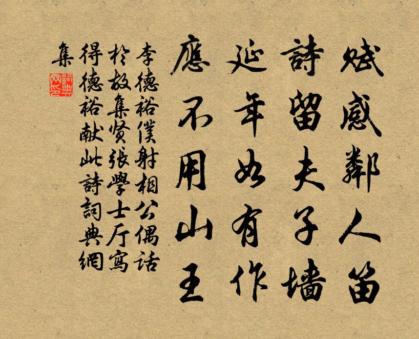 詩詞名句歷史字典書法欣賞書法字典國語詞典說文解字康熙字典古漢語字典標 題 作 者 詩 句 僕射相公偶話於故集賢張學士廳寫得德裕…獻此詩作者:李德裕 朝代:唐代原文賦感鄰人笛,詩留夫子牆。延年如有作,應不用山王。詩詞問答問:《僕射相公偶話於故集賢張學士廳寫得德裕…獻此詩》的作者是誰?答:李德裕問:該詩寫於哪個朝代?答:唐代書法欣賞僕射相公偶話於故集賢張學士廳寫得德裕…獻此詩書法作品注釋全唐詩:卷475-37詩詞推薦洞仙歌曾紆〔宋代〕相如當日,曾奏凌雲賦。落筆縱橫妙風雨。記揚鞭輦路,同醉金明,窮勝賞,不管重城已暮。舊遊如夢覺,零落朋調空首座釋守淨〔宋代〕山龜有殼藏頭尾,七十二鑽不奈何。恰似秀峰空首座,嘉招不肯出煙蘇。初渡淮北岸楊凝〔唐代〕別夢雖難覺,悲魂最易銷。殷勤淮北岸,鄉近去家遙。古風寄周元翁黃庭堅〔宋代〕周元翁,古人風。詩書苦,作字工。允有德,自琢礱。觀古人,怨慧聰。眼欲盲,耳欲聾。黃落後,期君同。太霞宮孔武仲〔宋代〕誰氏夸豪力,琳宮一手開。光輝動金碧,瀟灑絕塵埃。煮石洞中火,流霞天上杯。籃輿穿翠樾,只為聽琴來。奉和襲美謝友人惠人參陸龜蒙〔唐代〕五葉初成椵樹陰,紫團峰外即雞林。名參鬼蓋須難見,材似人形不可尋。品第已聞升碧簡,攜持應合重黃金。殷勤戲題小雀捕飛蟲畫扇黃庭堅〔宋代〕小蟲心在一啄間,得失與世同輕重。丹表妙處不可傳,輪扁斲輪如此用。次惠上人冷泉夜坐宋慶之〔宋代〕此景寫不盡,此懷誰與俱。月來林影碎,雲去石頭孤。萬籟各休息,天香乍有無。因師寄佳句,清夢更勞吾。寄題江山葉氏翠香亭王柏〔宋代〕小詩越境論交情,不見新亭句未精。寄語主人猶缺典,梅花應恨不同清。寄友朱浚〔宋代〕溪月知相憶,江雲約共吟。夜船書一紙,飛過赤楓林。宿樟亭驛白居易〔唐代〕夜半樟亭驛,愁人起望鄉。月明何所見?潮水白茫茫。對酒戲詠陸游〔宋代〕不管詩人太瘦生,但念酒徒稀醉眠。憑誰為畫畢吏部,縛著鄰家春瓮邊。耕織嘆趙汝鐩〔宋代〕春催農工動阡陌,耕犁紛紜牛背血。種蒔已遍復耘耔,久晴渴雨車聲發。往來邏視曉夕忙,香穗垂頭秋登場。一年雨中陳與義〔宋代〕北客霜侵鬢,南州雨送年。未聞兵革定,從使歲時遷。古澤生春靄,高空落暮鳶。山川含萬古,鬱郁在樽前。臨溪樓敖邁〔宋代〕花溪老子昔喜花,紅雲紫霞香滿家。竹溪逸士昔愛竹,翠靄蒼煙陰繞屋。羌茲偉人臨溪樓,唐相之裔來溪頭。奄有五方帝佚名〔宋代〕太徽靈德,若首五精。本仁興益,降氣施生。純牲有碩,旨酒斯清。錫茲幫嘏,既壽洽平。南華五十韻朱翌〔宋代〕鄉里黃梅接,家居祖剎鄰。常聞肉身佛,甘作磑坊人。堅有懸腰石,空無拂鏡塵。已舂諸米熟,自識本心真。拄杖郴江百詠並序劍泉阮閱〔宋代〕大阿氣在鬥牛邊,報惠論讎世有仙。黥賊東來攜敗鐵,地靈安肯為生泉。新市驛別郭同年張詠〔宋代〕驛亭門外敘分攜,酒盡揚鞭淚濕衣。莫訝臨歧再回首,江山重疊故人稀。天津感事二十六首邵雍〔宋代〕雲輕日淡天津暮,風急林疏洛水秋。獨步獨吟人莫會,時時鷗鷺下汀洲。名句推薦生則盡力,死則死耳!張廷玉《明史·列傳·卷二十》 前村後壟桑柘深,東鄰西舍無相侵。貫休《春晚書山家屋壁二首》 沅水通波接武岡,送君不覺有離傷。王昌齡《送柴侍御》 普天皆滅焰,匝地盡藏煙。沈佺期《寒食》 至人天隱,其次地隱,其次名隱。王通《中說·卷四·事君篇》 台高不盡看楓葉,院淨何須坐菊花。沈輅《九日登高台寺》 霰雪紛其無垠兮,雲霏霏而承宇。屈原《九章》 滿目山河空念遠,落花風雨更傷春。晏殊《浣溪沙·一向年光有限身》 春遊之盛,西湖未能過也。姜夔《琵琶仙·雙槳來時》 常思某人德業勝於我,某人學問勝於我,則可以自慚矣。王永彬《圍爐夜話·第六一則》