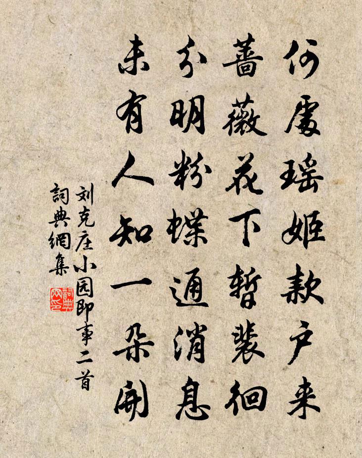何處瑤姬款戶來,薔薇花下暫裴徊。分明粉蝶通訊息,未有人知一朵開。