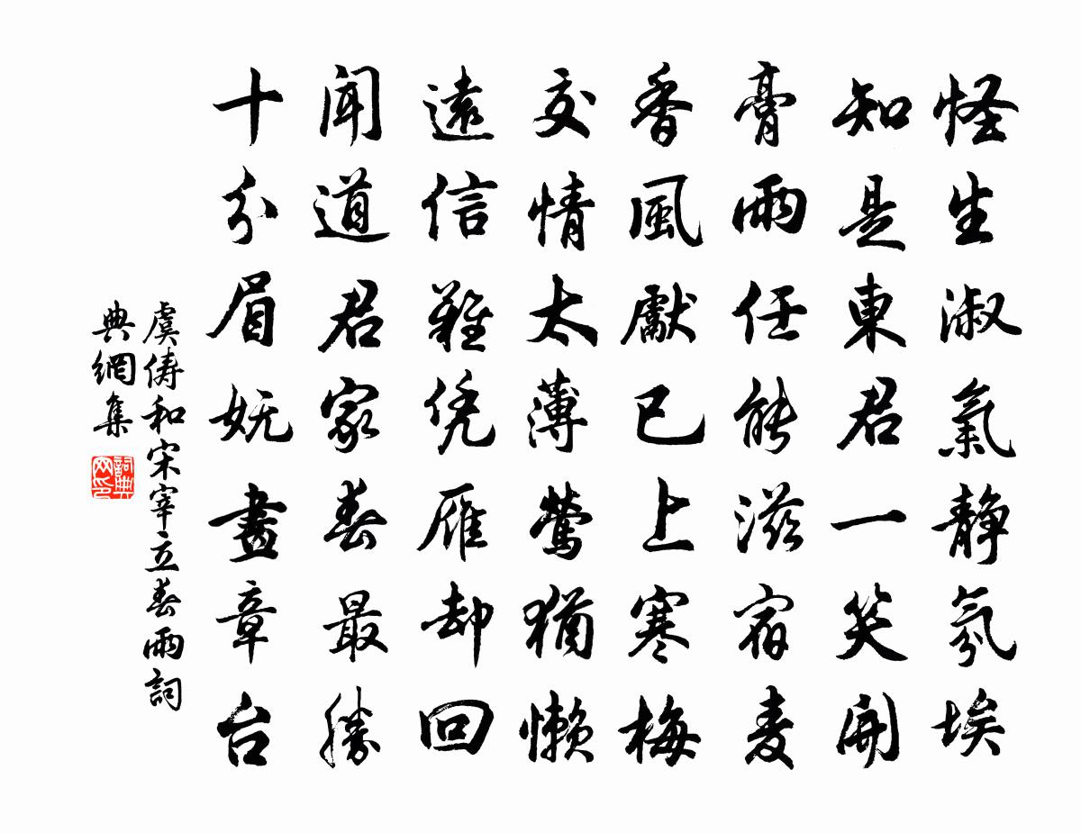 詩詞名句歷史字典書法欣賞書法字典國語詞典說文解字康熙字典古漢語字典標 題 作 者 詩 句 和宋宰立春雨作者:虞儔 朝代:宋代和宋宰立春雨原文怪生淑氣靜氛埃,知是東君一笑開。膏雨任能滋宿麥,香風先已上寒梅。交情太薄鶯猶懶,遠信難憑雁卻回。聞道君家春最勝,十分眉嫵畫章台。詩詞問答問:和宋宰立春雨的作者是誰?答:虞儔問:和宋宰立春雨寫於哪個朝代?答:宋代虞儔和宋宰立春雨書法欣賞和宋宰立春雨書法作品詩詞推薦頌古四十四首釋師範〔宋代〕蘿蔔從來出鎮州,城南門外水東流。饒君說得渾相似,須是親曾到地頭。偈三十五首釋祖珍〔宋代〕諸人被十二時使,老僧使得十二時。牧童嶺上一聲笛,驚起群鴉繞樹飛。思佳客陳亮〔宋代〕花拂闌乾柳拂空。花枝綽約柳鬟松。蝶翻淡碧低邊影,鶯囀濃香杪處風。深院落,小簾櫳。尋芳猶憶舊相逢。橋邊秋日西湖園亭仇遠〔宋代〕西湖一曲百泉通,漠漠青山繞梵宮。故國園林秋色淨,明朝風雨桂花空。銀笙玉笛清歌外,畫舫珠簾落照中。人物讀史連文鳳〔宋代〕滿道累累盡赭衣,含冤相語泣相隨。一因今日身親見,只說先秦事可疑。僧正倚大師庵居曾鞏〔宋代〕蘭裓方袍振錫回,結茅蕭寺遠塵埃。五峰日破朝雲出,三谷花浮澗水來。風散異香禪榻靜,鳥窺清唄法筵開。因過真珠簾陸游〔宋代〕山村簾水館參差簾路。感羈簾游、正似殘春風絮。掠地穿簾,知是竟歸何處。鏡里新霜空自憫,問幾時、鸞台鰲署代王維謹挽李察院二首黃榦〔宋代〕關洛蕭條南渡日,龜山往事屬龍津。過庭詩禮傳宗旨,蓋世功名付後人。風憲隻身中與外,清忠壯節晚如新。崇蘭春雪寄鄭府尹宋祁〔宋代〕風御憑空攬玉塵,急飄斜舞碎霙勻。九重闕里都無夜,五出花前自作春。賸借薄寒添雁夕,強留餘晦惱鸞晨。須知孫季章無愧鄭季奕徐斯遠以仆留智門載酒見過趙蕃〔宋代〕明知喜我出山來,占此僧窗共酒杯。重愧子云孤好事,絕勝安道不空回。醉落魄·預賞景龍門追悼明節皇后趙佶〔宋代〕無言哽噎。看燈記得年時節。行行指月行行說。願月常圓,休要暫時缺。今年華市燈羅列。好燈爭奈人心別。人前和陳魯山十詩以孟夏草木長遶屋樹扶疏為韻陸游〔宋代〕杜門殊省事,百巧輸一粗。燒香淨掃地,袖手了朝暮。君看瓦摳手,端自勝金注。塵機早見貸,不待雞竿樹。詠古二首有所寄劉禹錫〔唐代〕車音想轔轔,不見綦下塵。可憐平陽第,歌舞嬌青春。金屋容色在,文園詞賦新。一朝復得幸,應知失意人。寂寥崇因寺晏殊〔宋代〕捲簾山色眼前見,入夜濤聲枕上聞。苔徑雨餘堆落葉,石樓風靜鎖寒雲。喜得自牧上人書齊己〔唐代〕吳都使者泛驚濤,靈一傳書慰毳袍。別興偶隨雲水遠,知音本自國風高。身依閒淡中銷日,發向清涼處落刀。聞著遙見韓偓〔唐代〕悲歌淚濕澹胭脂,閒立風吹金縷衣。白玉堂東遙見後,令人斗薄畫楊妃。有感十首吳芾〔宋代〕河山關塞一萬里,文武衣冠二百年。四海蕭條宮殿去,無人解道取幽燕。劉村渡二首楊萬里〔宋代〕隔岸輕舟不可呼,小橋獨木有如無。落松滿地金釵瘦,遠樹黏天菌子孤。次韻向伯薛侍郎李彌遜〔宋代〕世外營居絕點埃,到身無地展全才。行藏曾許當年,翰墨能從異縣來。海上梅花迎歲落,江頭桂子得秋開。一樽負一翦梅(憶別)李石〔宋代〕紅映闌乾綠映階。閒悶閒愁,獨自徘徊。天涯訊息幾時歸,別後無書有夢來。後院棠梨昨夜開。雨急風忙次第催。名句推薦玉門山嶂幾千重,山北山南總是烽。王昌齡《從軍行七首》 諸君才絕世,獨步許誰強妙信《九日酬諸子》 驚塞雁,起城烏,畫屏金鷓鴣。溫庭筠《更漏子·柳絲長》 力微休負重,言輕莫勸人。佚名《增廣賢文·上集》 二十四橋仍在,波心蕩、冷月無聲。姜夔《揚州慢·淮左名都》 風日薄、度牆啼鳥聲亂。盧祖皋《宴清都·初春》 志士不忘在溝壑,勇士不忘喪其元。孟子《孟子·滕文公章句下·第一節》 應是夜寒凝。惱得梅花睡不成。黃升《南鄉子·冬夜》 花開不並百花叢,獨立疏籬趣未窮。鄭思肖《畫菊》 別來春半,觸目柔腸斷。李煜《清平樂·別來春半》