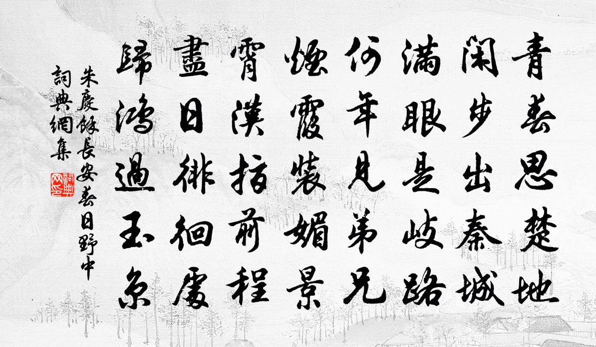 詩詞名句歷史字典書法欣賞書法字典國語詞典說文解字康熙字典古漢語字典標 題 作 者 詩 句 長安春日野中作者:朱慶餘 朝代:唐代長安春日野中原文青春思楚地,閒步出秦城。滿眼是岐路,何年見弟兄。煙霞裝媚景,霄漢指前程。盡日徘徊處,歸鴻過玉京。詩詞問答問:長安春日野中的作者是誰?答:朱慶餘問:長安春日野中寫於哪個朝代?答:唐代朱慶餘長安春日野中書法欣賞長安春日野中書法作品注釋全唐詩:卷515-65詩詞推薦題峽江譚溫父詠齊楊萬里〔宋代〕漁郎載我下峽水,夜尋故人有譚子。柴門竹屋斷崖底,艮齊手題詠齋字。巴丘花草一番新,玉笥峰頭月半輪。如今張鎬徐鈞〔宋代〕仗節星馳趣援兵,睢陽惜已陷忠臣。閭邱振命雖誅死,猶有浮圖著矢人。初南食貽元十八協律韓愈〔唐代〕鱟實如惠文,骨眼相負行。蠔相黏為山,百十各自生。蒲魚尾如蛇,口眼不相營。蛤即是蝦蟆,同實浪異名。章舉公子行羅鄴〔唐代〕金鞍玉勒照花明,過後春風特地生。半醉五侯門裡出,月高猶在禁街行。月下呈章秀才(八元)劉長卿〔唐代〕自古悲搖落,誰人奈此何。夜蛩偏傍枕,寒鳥數移柯。向老三年謫,當秋百感多。家貧惟好月,空愧子猷過。歷城郡治凝波亭祖無擇〔宋代〕耽耽層構俯清漣,山色波光曉共鮮。形勝增雄齊十二,風流素盛客三千。鋪舒柳影眠鷗渚,欺壓蓮香載妓船。公退宮詞楊皇后〔宋代〕角黍冰盤飣餖裝,酒闌昌歜泛瑤觴。近臣夸賜金書翁,御侍爭傅佩帶香。贈雲谷先生釋法薰〔宋代〕卦盤掇轉味天機,禍有胎兮福有基。昨夜孛星移一位,先生睡著不曾知。代家君答聞老詩三首唐仲友〔宋代〕江山天借使詩昌,太守風流似沈郎。莫作推敲沖導其,好攜佳句過黃堂。無錫得次子詩促歸曹勛〔宋代〕老大心情不外求,得閒歡喜且閒休。每思塵土年華老,欲接神仙汗漫遊。三月不知春爛熳,五旬卻值雨飛浮。催歸壽朴翁姜夔〔宋代〕與師同月不同年,歸墨歸儒各自緣。想得山中無壽酒,但攜茶到菊花前。【雙調】一機錦 離思佚名〔元代〕寶釵分,鸞鏡缺,瓶墜簪斷折,《三疊陽光》爭忍,別。心兒里痛哽咽,眼兒里彈淚血。空教我扌絕耳揉腮,執手晨起裴吳二直講過門雲鳳閣韓舍人物故作五梅堯臣〔宋代〕曉陌行車過,交相嘆且驚。荀龍聞一蛻,穆駿失全鳴。不復中畫直,空餘左史成。緒言猶在耳,尚想見平生。送蘇州姚長史韓翃〔唐代〕江城驛路長,煙樹過雲陽。舟領青絲纜,人歌白玉郎。葛衣行柳翠,花簟宿荷香。別有心期處,湖光滿訟堂。白塔院陸游〔宋代〕冷翠千竿玉,浮嵐萬幅屏。憑欄避微雨,挈笠遇歸僧。殘月明樓角,屯雲擁塔層。溪山屬閒客,隨意倚枯藤。滿江紅劉克莊〔宋代〕梅雨初收,渾不辨、東坡南盪。清旦里、鼓鐃動地,車輪空巷。畫舫稍漸京輦俗,紅旗會踏吳兒浪。共葬魚娘子斬恣逍遙姬翼〔元代〕野服黃冠,芒鞋梨杖。無拘系、水雲來往。行歌立舞,玄談清唱。也不論、王侯高尚。性月圓明,神珠晃朗。周沙初寓橫涇黃順之〔宋代〕十年泉石夢,及此始依然。野迥天垂地,身閒日抵年。稍欣聞見少,漸與土風便。分得漁樵席,白雲相共眠。放言王禹偁〔宋代〕靜算人間事偶然,窮通未必在穹玄。關從白馬欺來度,赦被青蠅暗裡傳。禁樹罷吟紅爛漫,江蘺且詠綠芊綿。放言歲寒知松柏黃庭堅〔宋代〕松柏天生獨,青青貫四時。心藏後凋節,歲有大寒知。慘澹冰霜晚,輪囷澗壑姿。或容螻蟻穴,未見斧斤遲。搖落名句推薦秋已盡,日猶長,仲宣懷遠更淒涼。李清照《鷓鴣天·寒日蕭蕭上瑣窗》 欲系青春,少住春還去。朱淑真《蝶戀花·送春》 故人江海別,幾度隔山川。司空曙《雲陽館與韓紳宿別》 忽憶故人天際去,計程今日到梁州。白居易《同李十一醉憶元九》 自古驕兵多致敗,從來輕敵少成功。羅貫中《三國演義·第六十九回》 人情反覆,世路崎嶇。洪應明《菜根譚·概論》 會天大雨,道不通,度已失期司馬遷《陳涉世家》 以小人之慮,度君子之心。劉義慶《世說新語·雅量》 去歲江南見雪時,月底梅花發。張孝祥《卜運算元·雪月最相宜》 卻看妻子愁何在,漫捲詩書喜欲狂杜甫《聞官軍收河南河北》