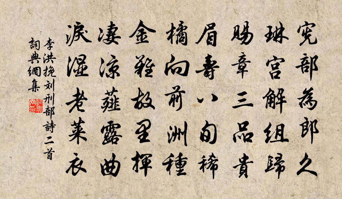 詩詞名句歷史字典書法欣賞書法字典國語詞典說文解字康熙字典古漢語字典標 題 作 者 詩 句 挽劉刑部詩二首作者:李洪 朝代:宋代挽劉刑部詩二首原文憲部為郎久,琳宮解組歸。賜章三品貴,眉壽八旬稀。橘向前洲種,金難故里揮。淒涼薤露曲,淚濕老萊衣。詩詞問答問:挽劉刑部詩二首的作者是誰?答:李洪問:挽劉刑部詩二首寫於哪個朝代?答:宋代李洪挽劉刑部詩二首書法欣賞挽劉刑部詩二首書法作品詩詞推薦簡仙遊宰共瀛甫登二首王邁〔宋代〕詩要淵明賦,琴須宓子鳴。幸哉吾百里,行矣見雙清。民瘼需綏撫,人才待作成。豬肝非我嗜,無事累高明。一籮金/蝶戀花佚名〔宋代〕新冬十葉蓂添一。良辰喜是翁生日。金鴨爇沉香。祥煙繞畫堂。遐齡方五十。厚福猶千百。看取小甥孫。年年捧壽和東林湛堂禪師喜雪韻五首袁燮〔宋代〕去歲寒雲久積陰,四郊雪片臘中深。今年一稔民安業,老守區區慰此心。挽李靖少傅夫人喻良能〔宋代〕九月秋光急,山川苦霧迷。卜邙新隧啟,度鞏短簫齊。寶劍知終合,靈蟾已隕西。松門來會葬,車馬幾千蹄。問俗李新〔宋代〕窮極天窺涘,幽陰地絕春。石壇荒拆鬼,藥媼下羌神。頭號雀分疏事,晴山親近人。刲羊留髓骨,正欲卜歸辰。丙辰夏和周宰李呂〔宋代〕愛公北堂幽,背郭出塵外。登臨攬萬象,氣宇自怡泰。目寄孤歸鴻,道存不下帶。山水含清暉,況復總其會。隔岸和叔穎楮衾王洋〔宋代〕自顧生來骨相屯,不容強覓彩衣輕。榮華地位無多子,寂寞因緣已半生。我擁素衾方自喜,君貽組句遂兼榮。書窗古意宋祁〔宋代〕虎嘯雲岩下,風生林嶺隅。須防威可假,慎勿逐城狐。日本然上人1釋紹曇〔宋代〕橫擔楖栗走諸方,佛祖玄關路轉長。放下身心歸故隱,金烏依舊出扶桑。庚子三月二十七日又易守當塗四月十一日發辭岳珂〔宋代〕九重旒冕真知己,幾度弓旌憶款門。素志不為溫飽計,赤心未報聖明恩。鶴汀雲雨暮應卷,牛渚風煙秋欲昏。休向蠶謝枋得〔宋代〕養口資身賴以桑,終成王道澤流長。吐絲不羨蜘蛛巧,飼葉頻催織女忙。三起三眠時化運,一生一死命天常。待看哭趙忠定范模〔宋代〕鼂董青冥上,夔龍紫極邊。五龍方夾日,九虎已當天。夷險丹心直,安危白髮卷。吊湘人不去,何用解膠弦。句釋洪英〔宋代〕天際雪埋千尺石,洞門凍折數株松。紹興祀太社太稷十七首佚名〔宋代〕[函鍾為宮]功烈在民,誕受露雨。良耜既歌,乃揚帗舞。是奉是尊,厚禮斯舉。相其豈年,多府稌多黍。謝王諫議見思吟邵雍〔宋代〕西齋前後半松筠,萬慮澄余始見真。不謂天光明淨處,又能時憶舊交親。和東澗丁卯上元日見寄三絕句劉克莊〔宋代〕臂短生來不善緣,那堪年已迫申轅。聃書字字家人語,不似蒙莊好寓言。感興五首次韻和李希孝三晁補之〔宋代〕長歌遺世情,滄浪之水清。鑠金在眾口,折軸由群輕。君子貴同塵,安事皎皎明。儻在子所呼,牛馬亦我名。送朝士使虜楊萬里〔宋代〕又見皇舉賦北征,謪仙俊氣似秋鷹。詩成紫寒三更月,馬渡黃河十丈冰。趙北燕南有人否,禽胡歸漢竟誰曾。天家和較藝書事歐陽修〔宋代〕相隨懷詔下天閽,一鎖南宮隔幾旬。玉麈清談消永日,金◇美酒惜余春。杯盤餳粥春風冷,池館榆錢夜雨新。猶是滿江紅陳善〔宋代〕三月風前花薄命,五更枕上春無力。名句推薦停船暫借問,或恐是同鄉。崔顥《長干行·君家何處住》 事以密成,語以泄敗。韓非及後人《韓非子·說難》 紅酥手,黃縢酒,滿城春色宮牆柳。陸游《釵頭鳳·紅酥手》 庭中有奇樹,綠葉發華滋。佚名《庭中有奇樹》 家有千口,主事一人。佚名《增廣賢文·下集》 長太息以掩涕兮,哀民生之多艱。屈原《離騷》 此身合是詩人未?細雨騎驢入劍門。陸游《劍門道中遇微雨》 金風細細。葉葉梧桐墜。晏殊《清平樂·金風細細》 盡叫得鵑聲碎,卻教人空斷腸。阿魯威《湘妃怨·夜來雨橫與風狂》 山一程,水一程,身向榆關那畔行,夜深千帳燈。納蘭性德《長相思·山一程》