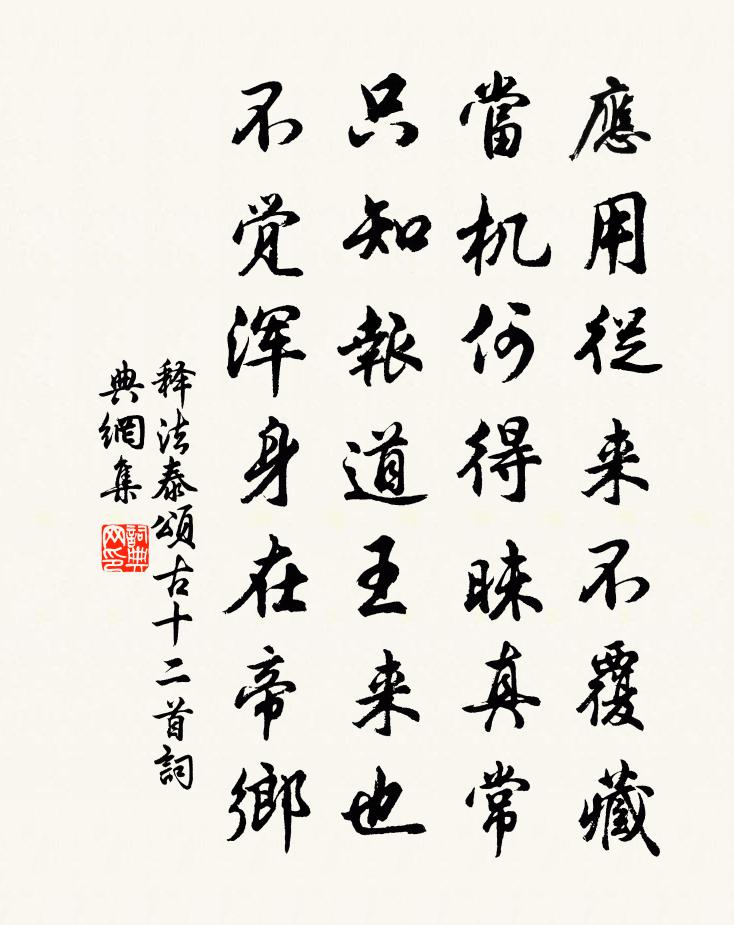 詩詞名句歷史字典書法欣賞書法字典國語詞典說文解字康熙字典古漢語字典標 題 作 者 詩 句 頌古十二首作者:釋法泰 朝代:宋代頌古十二首原文套用從來不覆藏,當機何得昧真常。只知報導王來也,不覺渾身在帝鄉。詩詞問答問:頌古十二首的作者是誰?答:釋法泰問:頌古十二首寫於哪個朝代?答:宋代釋法泰頌古十二首書法欣賞頌古十二首書法作品詩詞推薦登柳州城樓寄漳汀封連四州柳宗元〔唐代〕城上高樓接大荒,海天愁思正茫茫。驚風亂颭芙蓉水,密雨斜侵薜荔牆。嶺樹重遮千里目,江流曲似九迴腸。共來玉樓春劉辰翁〔宋代〕霜風不動晴明好。探梅有約城東道。橋邊失卻老仙期,城門落日人歸早。野田一望迷芳草。除是騰空君後到。立馬鵲鴉行於石〔宋代〕世以鵲為吉,人多喜其鳴。世以鴉為凶,鳴多人輒嗔。吉凶一以定,嗔喜此焉分。相彼新羅鷂,於何分愛憎。群鴉奉和魯望漁具十五詠種魚皮日休〔唐代〕移土湖岸邊,一半和魚子。池中得春雨,點點活如蟻。一月便翠鱗,終年必赬尾。借問兩綬人,誰知種魚利。長歌行佚名〔兩漢〕青青園中葵,朝露待日晞。陽春布德澤,萬物生光輝。常恐秋節至,焜黃華葉衰。百川東到海,何時復西歸?少壯題餘乾姚三錫書鈔劉克莊〔宋代〕頃傳湯序心傾挹,茲得姚鈔手闔開。朱子所疑非孔傳,漢儒之罪甚秦灰。時清縱未經筵召,歲晚寧無掌故來。攬轡謝王秘書送桂花吳芾〔宋代〕病中恨不見花開,賴有仙郎折送來。一笑相看如有得,呼兒草劃具樽罍。途中酬李少府贈別之作高適〔唐代〕西上逢節換,東征私自憐。故人今臥疾,欲別還留連。舉酒臨南軒,夕陽滿中筵。寧知江上興,乃在河梁偏。行李水龍吟 聽房氏自然歌,求詞為賦張翥〔元代〕春風瓊樹香中,數聲恰似流鶯囀。歌塵飛下,落花起舞,驪珠脫串。豆蔻珠簾,牡丹雪嶺,小桃人面。是自然絕藝即事釋行海〔宋代〕江上烽煙雜戰塵,鳳城風景可憐人。白頭老母關情切,眼見鶯花不是春。龐居士贊釋梵琮〔宋代〕得便宜是落便宜,傾盡家珍賣笊籬。男女聚頭無結果,這般翁子大無知。皇后閣春帖子許應龍〔宋代〕臘前三白兆年豐,即更彌旬雪滿空。歲籥未經春已到,從今物物被和風。泗州郡圃四照堂梅堯臣〔宋代〕官艫客艑滿淮汴,車馳馬聚無閒時。豈有餘力事棟宇,後園荒草長離離。朱侯下車百職舉,亦治宴豆頻游嬉。梁冠晚杜甫〔唐代〕杖藜尋晚巷,炙背近牆暄。人見幽居僻,吾知拙養尊。朝廷問府主,耕稼學山村。歸翼飛棲定,寒燈亦閉門。過白彪訪沈次律有感十六韻張元乾〔宋代〕天驕毒中原,國勢苦日削。一為虛聲搖,顛沛幾失腳。翠華棲海隅,虎戱亦太虐。忽聞哀痛詔,迸淚向寥寞。何當送淨頭道者釋普度〔宋代〕糞埽堆頭拾得來,花前不覺笑顏開。靈山寫作送行句,留與叢林作禍胎。送陸澧倉曹西上劉長卿〔唐代〕長安此去欲何依,先達誰當薦陸機。日下鳳翔雙闕迥,雪中人去二陵稀。舟從故里難移棹,家住寒塘獨掩扉。臨水秋夜齋中陸游〔宋代〕殘年冉冉返丘園,敗屋蕭蕭長子孫。久悔文辭妨大學,偶因憂患得玄門。扶持後死知天幸,容養無能荷國恩。急雨醉中戲贈襲美陸龜蒙〔唐代〕南北風流舊不同,傖吳今日若相通。病來猶伴金杯滿,欲得人呼小褚公。夜聞雨用誠齋新涼韻方岳〔宋代〕歲事不可常,吾生復余幾。立秋五十日,殊未涼風至。山田欲生煙,旱氣亦可已。摵摵聲入桐,中夜攬衣起。未議名句推薦淡淡橫朝煙,脈脈深秋思。劉道著《湘江秋曉》 總是向人深處,當時枉道無情陸游《朝中措·代譚德稱作》 同來望月人何處?風景依稀似去年。趙嘏《江樓舊感 / 江樓感舊》 為學日益,為道日損。損之又損,以至於無為。老子《老子·德經·第四十八章》 箭徑酸風射眼,膩水染花腥。吳文英《八聲甘州·靈岩陪庾幕諸公游》 此地別燕丹,壯士發衝冠。駱賓王《於易水送人 / 於易水送別》 遙知不是雪,為有暗香來。王安石《梅花》 祖宗疆土,當以死守,不可以尺寸與人。脫脫《宋史·列傳·卷一百一十七》 細腰爭舞君沉醉,白日秦兵天下來。李涉《楚宮怨二首·其一》 聞說東風亦多情,被竹外、香留住。史達祖《留春令·詠梅花》