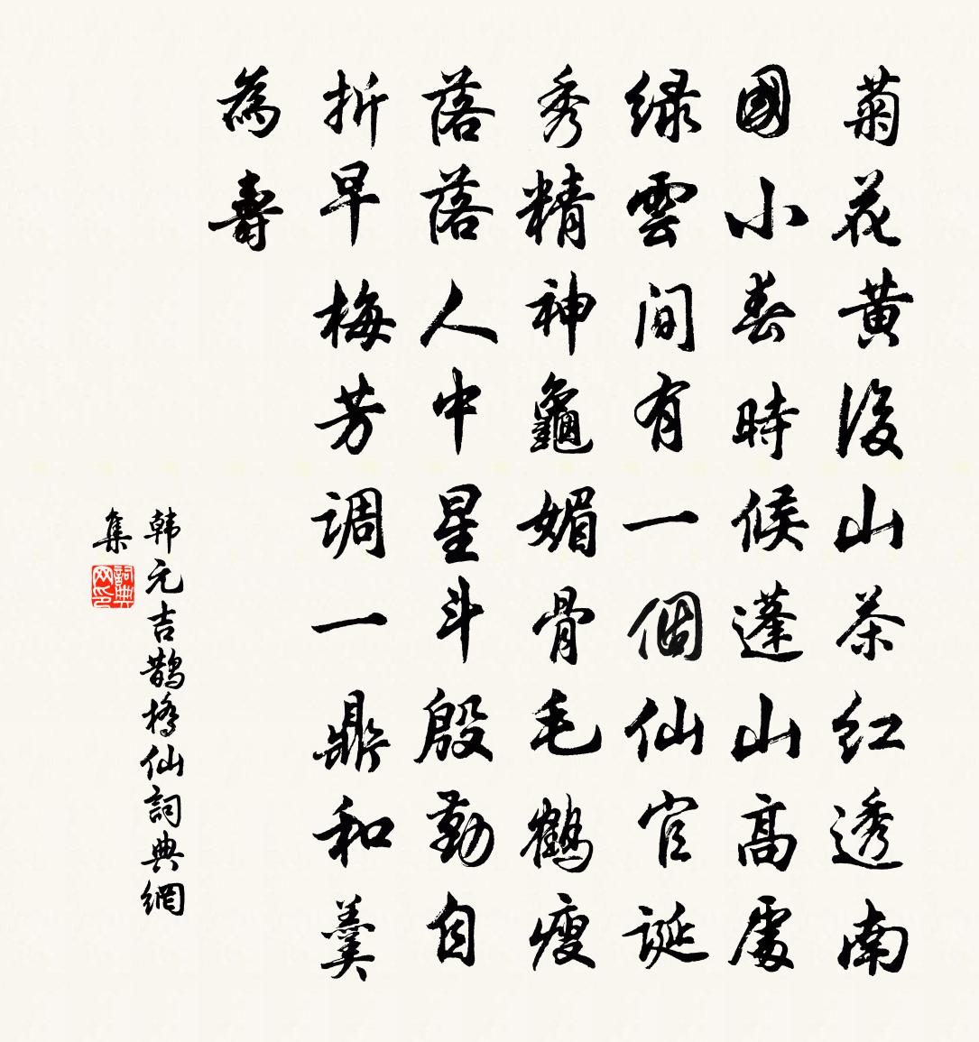 菊花黃後。山茶紅透。南國小春時候。蓬山高處綠雲間,有一個、仙官誕秀。