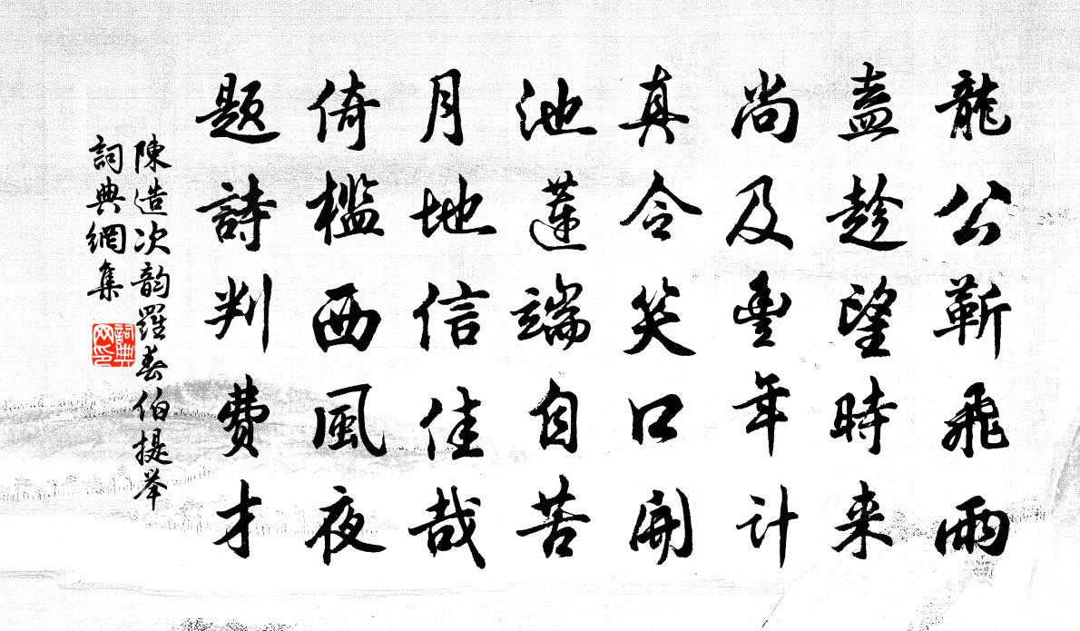 詩詞名句歷史字典書法欣賞書法字典國語詞典說文解字康熙字典古漢語字典標 題 作 者 詩 句 次韻羅春伯提舉作者:陳造 朝代:宋代次韻羅春伯提舉原文龍公靳飛雨,盍趁望時來。尚及豐年計,真令笑口開。池蓮端自苦,月地信佳哉。倚檻西風夜,題詩判費才。詩詞問答問:次韻羅春伯提舉的作者是誰?答:陳造問:次韻羅春伯提舉寫於哪個朝代?答:宋代陳造次韻羅春伯提舉書法欣賞次韻羅春伯提舉書法作品詩詞推薦遺懷楊時〔宋代〕君子雖自嚴,至潔宜若污。昭昭揭日月,所向將蝟如。天地一阱中,逼仄身亦孤。游世在虛己,浩蕩與時俱。靈府次韻俞路分見寄朱翌〔宋代〕有田二頃復何求,長恐斯言久不酬。青篛正堪煙雨笠,白文終返水雲裘。相親多謝風標子,可款豈無瀟灑侯。更下次大五侄問移家韻艾性夫〔宋代〕投老移家僻塢來,滿林秋露洗黃埃。飲才種麥須堪飽,衣旋培桑未可裁。萬古乾坤如傳舍,一生風雪嘆江梅。相看江城子(湘妃鼓瑟)葉夢得〔宋代〕銀濤無際卷蓬瀛。落霞明。暮雲平。曾見青鸞、紫鳳下層城。二十五弦彈不盡,空感慨,惜餘情。蒼梧煙水斷歸程和鮮于子駿鄆州新堂月夜二首(前次韻,後不次)蘇軾〔宋代〕去歲游新堂,春風雪消後。池中半篙水,池上千尺柳。佳人如桃李,胡蝶入衫袖。山川今何許,疆野已分宿。歲月三堂書懷吳則禮〔宋代〕青春已復作許妙,蜀錦輕覆千林殷。愧無好語贈秦嶺,猶想柁樓縈戍山。少日清尊兼白墮,暮年華發與蒼顏。自憐春詞毛滂〔宋代〕截肪初見昭華玉,刀出昆吾寶籀開。天助君王敷大喜,安排春色探先來。山出雲李紳〔唐代〕杳靄祥雲起,飄颺翠嶺新。縈峰開石秀,吐葉間松春。林靜翻空少,山明度嶺頻。回崖時掩鶴,幽澗或隨人。姑射題寄傲軒陳杰〔宋代〕富貴驕人擁廬兒,寒士不遜原壤夷。傲稱凶德無逢宜,長者寄爾渠得知。使襪聊為廷尉重,命履乃有帝師用,苟非挽新市張監酒三首黃榦〔宋代〕曲江人已矣,風采獨依然。薄宦何曾顯,英名到處傳。諸公交薦士,造物竟遺賢。窮達君應悟,怡神向九泉。謝胡文學惠水牛圖二卷司馬光〔宋代〕牛生天地間,益物用最大。其功配坤地,彖爻參眾卦。血毛類上帝,胖蠁景福介。宗廟及賓客,百禮無不在。引耒菩薩蠻賀鑄〔宋代〕綠楊眠後拖煙穗。日長掃盡青苔地。香斷入簾風。爐心檀燼紅。蘭溪修祓禊。上巳明朝是。不許放春慵。景陽臨曉送張無夢歸天台趙世長〔宋代〕瓊台卜幽隱,金液鏈真精。冰雪形容古,煙霞意思清。談玄通至道,養素達長生。補詔離仙窟,安居入帝京。唐虞又送別李嶠〔唐代〕岐路方為客,芳尊暫解顏。人隨轉蓬去,春伴落梅還。白雲度汾水,黃河繞晉關。離心不可問,宿昔鬢成斑。太常引楊果〔元代〕長淵西去接連昌。無日不花香。雲雨楚山娘。自見了、教人斷腸。弦中幽恨,曲中私語,孤鳳怨離凰。剛待不思量鸂鶒李群玉〔唐代〕錦羽相呼暮沙曲,波上雙聲戛哀玉。霞明川靜極望中,一時飛滅青山綠。別離情所鍾十二章章四句送定叟弟之官嚴陵張栻〔宋代〕送子目力短,朔風吹我裾。心焉獨如結,子也當念予。遣興次韻和晁應之四首張耒〔宋代〕日落村虛煙靄青,草根促織晚先鳴。群山袞袞望中去,新月娟娟愁里生。暗峽風雲秋慘澹,高城河漢夜分明。寄書考試局與孫元忠博士竹間對窗夜聞元忠通書聲黃庭堅〔宋代〕勃姑夫婦喜相喚,街頭雪泥即漸乾。已放遊絲高百尺,不應桃李尚春寒。應天長(三潭印月)張矩〔宋代〕桂輪逼采,菱沼漾金,潛虬暗動鮫室。水路乍疑霜雪,明眸洗春色。年時事,還記憶。對萬頃,葑痕龜坼。舊遊處名句推薦長相思,長相思。晏幾道《長相思·長相思》 此日六軍同駐馬,當時七夕笑牽牛。李商隱《馬嵬·其二》 易挑錦婦機中字。難得玉人心下事。劉克莊《玉樓春·戲林推》 孟夏草木長,繞屋樹扶疏。陶淵明《讀山海經·其一》 江上小堂巢翡翠,花邊高冢臥麒麟。杜甫《曲江二首》 今士之用身,不若商人之用一布之慎也。墨子《墨子·47章 貴義》 江海不擇小助,故能成其富。韓非及後人《韓非子·大體》 悵臥新春白袷衣,白門寥落意多違。李商隱《春雨》 頑老情懷,都無歡事,良宵愛幽獨。吳文英《一寸金·秋感》 自古逢秋悲寂寥,我言秋日勝春朝。劉禹錫《秋詞》