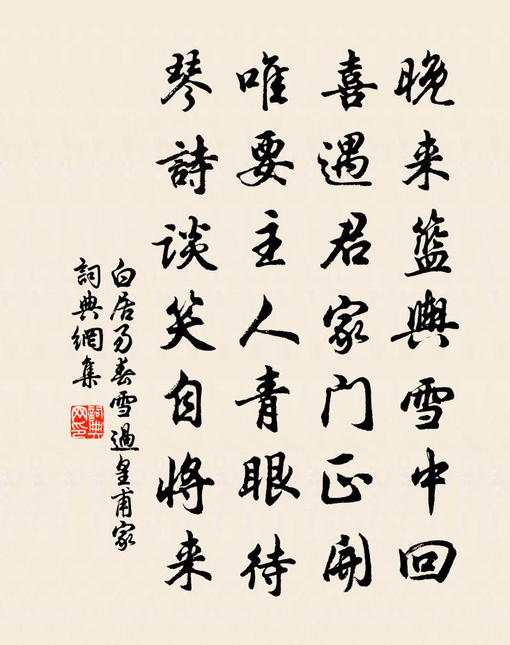 晚來籃輿雪中回,喜遇君家門正開。唯要主人青眼待,琴詩談笑自將來。
