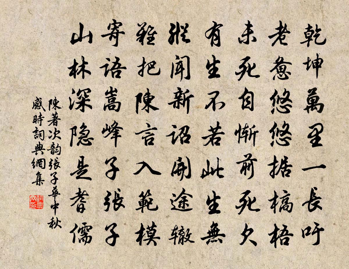 詩詞名句歷史字典書法欣賞書法字典國語詞典說文解字康熙字典古漢語字典標 題 作 者 詩 句 次韻張子華中秋感時作者:陳著 朝代:宋代次韻張子華中秋感時原文乾坤萬里一長吁,老憊悠悠據槁梧。未死自慚前死欠,有生不若此生無。縱聞新詔開途轍,難把陳言入范模。寄語嵩峰子張子,山林深隱是耆儒。詩詞問答問:次韻張子華中秋感時的作者是誰?答:陳著問:次韻張子華中秋感時寫於哪個朝代?答:宋代陳著次韻張子華中秋感時書法欣賞次韻張子華中秋感時書法作品詩詞推薦宣州九日聞崔四侍御與宇文太守游敬亭余時登響山不同此李白〔唐代〕九日茱萸熟,插鬢傷早白。登高望山海,滿目悲古昔。遠訪投沙人,因為逃名客。故交竟誰在,獨有崔亭伯。重陽得天台命二首劉子翬〔宋代〕暖風環佩滿芳洲,貝闕珠宮憶舊遊。此日劉郎心似水,桃花空繞暮溪流。寓天慶觀有林使君年八十七方燒丹雲一桼米大陸游〔宋代〕世路崎嶇久已忘,道腴禪悅度年光。故攜開士降龍缽,來寄高人夢蝶床。只道燒金有劉向,不知賣藥是韓康。日長五月十九日夜雨程公許〔宋代〕三日炎歊不可當,一宵風雨夜微涼。群龍莫吝為霖手,且與乾坤洗戰場。水仙曹彥約〔宋代〕盈盈蝶粉襯蜂黃,水國仙人內樣妝。同在寒梅應愧死,枯枝猶說傲冰霜。和信仲喜雨二首胡寅〔宋代〕雲漢吁嗟墮杳冥,德音雷動走群靈。天心逢契犧牲禱,田畯先聞黍稷馨。簾卷西山增爽氣,水通南澗漫平汀。一篇過採石懷太白黎廷瑞〔宋代〕騎驢花縣不相容,卻駕長鯨戲遠空。採石釣船還夜月,青山破墓幾秋風。平生賞識惟狂客,他日功名付令公。千載又勸耕吳芾〔宋代〕浙東十載歌豐登,去年水旱俄相乘。吾州何幸得一熟,四野絕聞愁嘆聲。田疇二月土膏動,樹頭布穀爭飛鳴。田家送宋昶明仲湖州學錄方回〔宋代〕為不有本末,根固枝必稠。又如水有源,源清無濁流。顏子先四勿,韻冕患不優。曾子貴者三,豈於籩豆求。九經賢者之孝二百四十首李迥秀林同〔宋代〕生我者為母,無緣貴賤分。不思罵婢語,何可使親聞。驀山溪石孝友〔宋代〕小花靜院。有個人人現。縹緲更娉婷,算不數、歌朋舞伴。鳴珂曲里,常記偶相逢,無語恨,有情愁,綠嫩紅妝淺次韻答王四黃庭堅〔宋代〕病懶百事廢,不惟書問疏。新詩苦招喚,是日鎖直廬。潢污深一尺,大道覆行車。晴夜遙相似,秋堂對望舒。皇太子生辰詩張鎡〔宋代〕慶協丁年慶,祥開甲觀雄。九霞光絢爛,重日彩曈曨。根本千齡固,元良萬口同。文孫覿堯法,聖子奉虞聰。視膳梅花王令〔宋代〕曉枝開早未多稠,屢嗅清香不忍收。萬木已知春盡到,百花常負後來羞。東風也合相和暖,臘雪無端欲滯留。滿眼代吳守與趙侯為壽劉過〔宋代〕虎頭燕含足奇謀,玉帳兵形象水流。此去關河應不遠,上方擬築望英樓。七夕二首李覯〔宋代〕無奈家家乞巧何,豈知天上拙人多。喚他烏鵲辛勤殺,才得扶舁渡淺河。一經堂鄭裕〔宋代〕莆之甲姓,實維大方。紫囊錦帳,閥閱膏粱。有子盈之,乃其最良。心志乎道,視之如忘。博究六藝,並包五常。出還韋應物〔唐代〕昔出喜還家,今還獨傷意。入室掩無光,銜哀寫虛位。淒淒動幽幔,寂寂驚寒吹。 * 復何知,時來庭下戲。咨嗟三奠子 離南陽後作元好問〔金代〕悵韶華流轉,無計留連。行樂地,一悽然。笙歌寒食後,桃李惡風前。連環玉,迴文錦,兩 * 。芳塵未遠,幽意又三首劉克莊〔宋代〕雪平腰各立師邊,半夜輸君得密傳。伴後村翁成二老,比絳縣人多一年。名句推薦一觴雖獨盡,杯盡壺自傾。陶淵明《飲酒·其四》 門外平橋連柳堤,歸來晚樹黃鶯啼。溫庭筠《春洲曲》 廣陵城裡昔繁華,煬帝行宮接紫霞。曾棨《維揚懷古》 生民之本,要當稼稽而食,桑麻以衣。顏之推《顏氏家訓·治家篇》 苔深不能掃,落葉秋風早。李白《長干行二首》 滿則慮嗛,平則慮險,安則慮危荀子《荀子·仲尼》 行人無限秋風思,隔水青山似故鄉。戴叔倫《題稚川山水》 紅淚偷垂,滿眼春風百事非。納蘭性德《採桑子·當時錯》 秋菊有佳色,裛露掇其英。陶淵明《飲酒·其四》 旌旆夾兩山,黃河當中流。李白《經亂離後天恩流夜郎憶舊遊書懷贈江夏韋太守良宰》