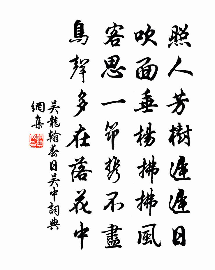 詩詞名句歷史字典書法欣賞書法字典國語詞典說文解字康熙字典古漢語字典標 題 作 者 詩 句 春日吳中作者:吳龍翰 朝代:宋代春日吳中原文照人芳樹遲遲日,吹面垂楊拂拂風。客思一筇攜不盡,鳥聲多在落花中。詩詞問答問:春日吳中的作者是誰?答:吳龍翰問:春日吳中寫於哪個朝代?答:宋代吳龍翰春日吳中書法欣賞春日吳中書法作品詩詞推薦九月初十日山房午睡恍見梅枝已吐白矣驚喜而舒岳祥〔宋代〕生愛梅花是性情,故園陰絕淚縱橫。夢中驚見南枝曝,起繞山邊水畔行。西叔兄生日魏了翁〔宋代〕只把農功作己憂,不將歲事與天謀。官修事舉文書靜,一室高眠粥似稠。臧僖伯諫觀魚左丘明〔先秦〕春,公將如棠觀魚者。臧僖伯諫曰:“凡物不足以講大事,其材不足以備器用,則君不舉焉。君將納民於軌物者也續十蟲吟5舒岳祥〔宋代〕蟲有土中狗,翼短身則長。行地如狗子,兩臂健擘張。縱橫成穴道,堀堁身蔽藏。握之人手中,排抉力其強。夜飛挽王信伯先生楊邦弼〔宋代〕伊洛親聞道,淵微賴發揚。東吳賢望重,西觀舊書藏。吾儻將安放,斯文豈遂亡。堂堂寧復見,門士慟新岡。妙恩侍者求語釋紹曇〔宋代〕一奩春錦斗鮮明,較古菱花越樣清。照影不應呼小玉,至今湖海客關情。參政謝公輓詞黃定〔宋代〕一自參機政,居然重本兵。尤優文與武,謚重敏兼榮。行矣躋三府,天乎夢兩楹。鄱陽當日讖,端的付唐生。春日即事黃庚〔宋代〕園林芳事漸闌珊,客思無聊午夢殘。紅杏花繁蜂蜜飽,碧芹香老燕泥乾。光陰有限鬢已白,勳業無楊心尚丹。倚遍二絕寄章氏女子鄭剛中〔宋代〕女子有家難戀汝,外甥似舅豈忘渠。春風萬里空相憶,但願平安數寄書。驄馬行杜甫〔唐代〕鄧公馬癖人共知,初得花驄大宛種。夙昔傳聞思一見,牽來左右神皆竦。雄姿逸態何崷崒,顧影驕嘶自矜寵。隅目晚春書懷簡陳巽叔二首王炎〔宋代〕畏病不多酌,遣情時自吟。絮飛春漠漠,樹密午陰陰。壯縣今岑寂,微官有陸沉。青山啼杜宇,未斷故園心。送張元安肅知軍宋祁〔宋代〕星闈幾罷日薰衣,萬里題封換使麾。都外鴟夷催軷酒,塞南楊柳望春旗。中軍尺檄閒飛羽,前隊鳴髇列素支。競病答黎士曹黎生前適越後之楚皎然〔唐代〕楚木紛如麻,高松自孤直。願得苦寒枝,與君比顏色。故鄉眇天末,羈旅滄江隅。委質在忠信,苦心無變渝。何繇頌一百則釋重顯〔宋代〕盡大地是藥,古今何太錯。閉門不造車,通途自寥廓。錯錯,鼻孔遼天亦穿卻。兩過黃伯厚皆不遇留詩別之利登〔宋代〕兩過安禪寺,皆言尚未歸。情知相見近,猶欲復來辭。灘淺舟行澀,風輕雨下微。白雲回首地,天闊柳絲絲。謁告得歸拜呈內機知府郎官五首程公許〔宋代〕公餘賡載不曾間,一段風流嗣建安。霜月西窗誰畫取,詩人雙聳玉樓寒。山居五首白玉蟾〔宋代〕竹風瑟瑟野猿號,月下酣眠不脫蓑。恐至丹爐傷白蟻,懶燒松燭惜飛蛾。麗人行楊維楨〔元代〕楊白花飛愁 * ,美人如華不勝春。錦韉馱起雙鳳縷,黃門挾飛五花雲。白日雷霆夾城道,樂遊園里春正好。就中與道原過西莊遂游寶乘王安石〔宋代〕周顒宅作阿蘭若,婁約身歸窣堵坡。今日隱侯孫亦老,偶尋陳跡到煙蘿。題善草字者一絕蘇籀〔宋代〕獐獵包羞爵秩加,輿人捧腹只呀呀。踏搖妍狀當壚手,如許銀鉤殆可嘉。名句推薦若言言悅耳,事事快心,便把此生埋在鴆毒中矣。洪應明《菜根譚·概論》 怕歌愁舞懶逢迎。妝晚托春酲。陸游《朝中措·代譚德稱作》 天清一雁遠,海闊孤帆遲。李白《送張舍人之江東》 侈而墮者貧,而力而儉者富。韓非及後人《韓非子·顯學》 贈遠虛盈手,傷離適斷腸。李商隱《十一月中旬至扶風界見梅花》 南山與秋色,氣勢兩相高。杜牧《長安秋望》 妝罷低聲問夫婿,畫眉深淺入時無。朱慶餘《近試上張籍水部 / 近試上張水部 / 閨意獻張水部》 有天命者任自為之,不汝禁也。脫脫《宋史·本紀·卷三》 閉心塞意,不高瞻覽者,死人之徒也哉。王充《論衡·卷十三·別通篇》 五月五日午,贈我一枝艾。文天祥《端午即事》