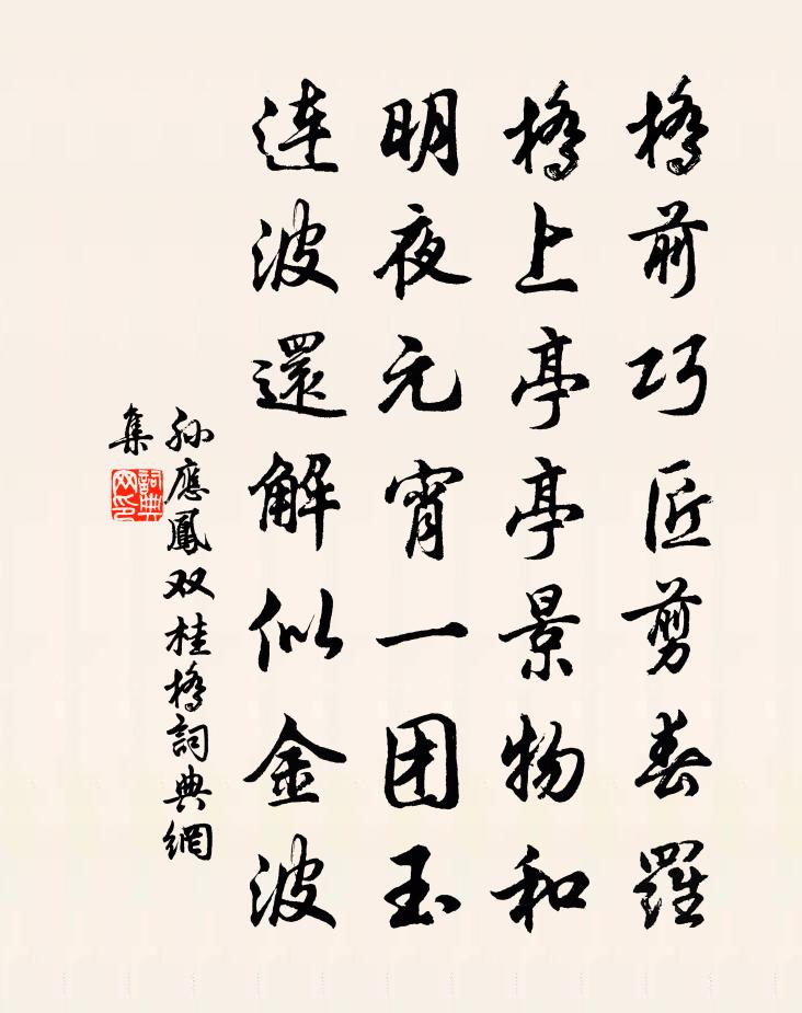 詩詞名句歷史字典書法欣賞書法字典國語詞典說文解字康熙字典古漢語字典標 題 作 者 詩 句 雙桂橋作者:孫應鳳 朝代:宋代雙桂橋原文橋前巧匠剪春羅,橋上亭亭景物和。明夜元宵一團玉,連波還解似金波。詩詞問答問:雙桂橋的作者是誰?答:孫應鳳問:雙桂橋寫於哪個朝代?答:宋代孫應鳳雙桂橋書法欣賞雙桂橋書法作品詩詞推薦浣溪沙史達祖〔宋代〕不見東山月露香。姚家借得小芬芳。亂鶯隨趁過宮牆。香珀碾花嬌有意,綠茸繡葉澀無光。御封春酒幾時嘗。村舍陸游〔宋代〕故絮五更偏覺冷,薄糜未午已先飢。誰知人不堪憂處,正是降魔奏凱時。贈友人罷舉赴交趾辟命杜荀鶴〔唐代〕罷卻名場擬入秦,南行無罪似流人。縱經商嶺非馳驛,須過長沙吊逐臣。舶載海奴鐶硾耳,象駝蠻女彩纏身。如何邙山古意薛曜〔唐代〕昔掩佳城路,曾驚壑易遷。今接宜都里,翻疑海作田。鏤鼎名應大,生金字不傳。風飆吹白日,羅綺拭黃泉。象鳳八月十七日,復登望海樓,自和前篇,是日榜蘇軾〔宋代〕亂山遮曉擁千層,睡美初涼撼不*。昨夜酒行君屢嘆,定知歸夢到吳興。沁園春(壬寅餞余宣諭入蜀)李曾伯〔宋代〕畫舸呼風,長劍倚天,半哉此行。指洞庭彭蠡,遍觀吳楚,瞿塘灩澦,直上峨岷。帝語春溫,軍聲秋肅,手濟時屯次黃必先主簿同年贈別韻范成大〔宋代〕當年仗外揖高標,繡縿蘆鞭寶馬驕。瓊苑天香飄合坐,碧城山色照同僚。思歸意決吾張翰,贈別情深子繞朝。蟹籪上廣東運副馬少卿壽十口號曾豐〔宋代〕使星轉作副樞星,天柱天階兩手擎。閹幸斜暉欲相射,回躔退舍養吾明。清明日后土祠送田徹楊巨源〔唐代〕清明千萬家,處處是年華。榆柳芳辰火,梧桐今日花。祭祠結雲綺,游陌擁香車。惆悵田郎去,原回煙樹斜。故僕射司馬文正公輓詞四首張耒〔宋代〕辭爵浮雲外,安民反手中。山林獨往意,袞繡太平功。布被終身儉,貂冠一命崇。他年兩行淚,碑下泣羊公。皇太后合春帖子六首蘇頌〔宋代〕冬至四十六,三陽生此辰。帝令天下壽,鑽燧教斯民。哭亦周趙文〔宋代〕二十年來黍一炊,英風惟有塚累累。兒童躑躅牛羊戲,陌上行人謂此誰。再和求首座洪邁〔宋代〕道人昔曳匡廬筇,五老負雪湓江東。犯寒貪覓玉梅句,雖有衲被何曾蒙。歸來苦雨熟梅子,卷裓深臥蠻煙中。詩傳浣溪沙(元夕後三日王文明席上)陳三聘〔宋代〕點檢尊前花柳叢。於中偏占牡丹風。等閒言語慣迎逢。扇影不搖珠的皪,釵梁斜嚲玉玲瓏。夢魂長向楚江東。贈別俗兄釋曇華〔宋代〕此行安忍泛輕舟,無奈官差不自由。痛望老人修淨業,莫教容易度春秋。懷公擇且問訊成父趙蕃〔宋代〕山雨戴溪雲,茅檐晝不分。林花應掃地,我友況離群。數口饑寒累,三生翰墨勤。因聲問吾弟,幾日定行雲。早起劉應時〔宋代〕斗轉星稀夜欲闌,月魂斜墮屋頭山。雞聲喚起十年事,盡在吟窗一枕間。寓天台水南四首林憲〔宋代〕小雨淒暮暮,入夜寒更作。泠泠竹間風,振我衣袂薄。野田鳴流泉,密樹紛翠幄。躡屐徐我行,長懷付寥廓。久不得張喬訊息(一本題下有有寄二字)鄭谷〔唐代〕天末去程孤,沿淮復向吳。亂離何處甚,安穩到家無。樹盡雲垂野,檣稀月滿湖。傷心繞村落,應少舊耕夫。贈友人賈島〔唐代〕五字詩成卷,清新韻具偕。不同狂客醉,自伴律僧齋。春別和花樹,秋辭帶月淮。卻歸登第日,名近榜頭排。名句推薦何夜無月?何處無竹柏?但少閒人如吾兩人者耳。蘇軾《記承天寺夜遊 / 記承天夜遊》 凌余陣兮躐余行,左驂殪兮右刃傷。屈原《國殤》 半夜銜枚,滿城深雪,忽已亡懸瓠。李綱《念奴嬌·憲宗平淮西》 為政在人。取人以身。修身以道。修道以仁。子思《中庸·第二十章》 不自貴於物而物宗焉,不自重於人而人敬焉。房玄齡《晉書·列傳·第二十五章》 舟非水不行,水入舟則沒佚名《孔子家語·六本》 浮天滄海遠,去世法舟輕。錢起《送僧歸日本》 吹燈窗更明,月照一天雪。袁枚《十二月十五夜》 平明日出東南地,滿磧寒光生鐵衣。李益《度破訥沙二首·其二 / 塞北行次度破訥沙》 落花狼藉酒闌珊,笙歌醉夢間。李煜《阮郎歸·呈鄭王十二弟》