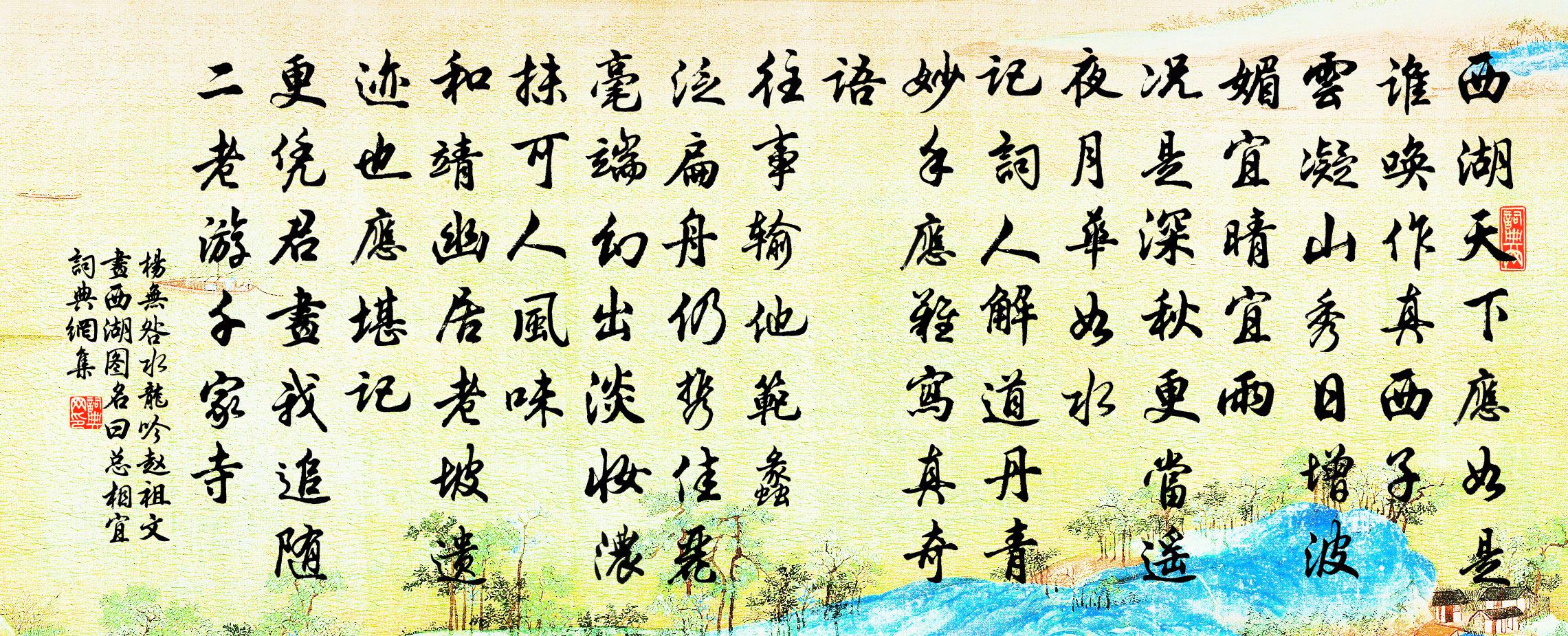 詩詞名句歷史字典書法欣賞書法字典國語詞典說文解字康熙字典古漢語字典標 題 作 者 詩 句 水龍吟(趙祖文畫西湖圖,名曰總相宜)作者:楊無咎 朝代:宋代原文西湖天下應如是。誰喚作、真西子。雲凝山秀,日增波媚,宜晴宜雨。況是深秋,更當遙夜,月華如水。記詞人解道,丹青妙手,應難寫、真奇語。往事輸他范蠡。泛扁舟、仍攜佳麗。毫端幻出,淡妝濃抹,可人風味。和靖幽居,老坡遺蹟,也應堪記。更憑君畫我,追隨二老,游千家寺。詩詞問答問:《水龍吟(趙祖文畫西湖圖,名曰總相宜)》的作者是誰?答:楊無咎問:該詩寫於哪個朝代?答:宋代問:該詩是什麼體裁?答:詞書法欣賞水龍吟(趙祖文畫西湖圖,名曰總相宜)書法作品詩詞推薦歸去來集字十首蘇軾〔宋代〕命駕欲何向,欣欣春木榮。世人無往復,鄉老有將迎。雲內流泉遠,風前飛鳥輕。相攜就衡宇,酌酒話交情。歸自鄂雙蓮生於後池偶作再寄紫微岳珂〔宋代〕巋然康戶山,獨秀蓮花峰。派為濂溪源,下有愛蓮翁。絕學嗣洙泗,千載同清風。書堂二池間,浮翠籠輕紅。居然沁園春(為潘郴州壽)黃機〔宋代〕問訊仙翁,殷勤為底,來萬山中。想橘邊丹井,鶴尋舊約,松間碧洞,鹿養新茸。霧節亭亭,星旓曳曳,導以浮丘巢山陸游〔宋代〕巢山避世紛,身隱萬重雲。半谷傳樵響,中林過鹿群。蟲鎪葉成篆,風蹙水生紋。不蹋溪橋路,僊凡自此分。寄湘鄉令鄉世賢楊時〔宋代〕身游羿彀偶相逢,安得初終若駏蛩。道學未容窺閫奧,吏師應許叩鄰封。蕭條此意君誰問,落拓微官我更慵。盧白同莊秀才宿鎮星觀馬戴〔唐代〕的的星河落,沾苔復灑松。濕光微泛草,石翠澹搖峰。野觀雲和月,秋城漏間鍾。知君親此境,九陌少相逢。送客姜特立〔宋代〕今日出郊送客,明朝肩輿入州。六十年前伎倆,白頭也合歸休。題白龍洞趙蕃〔宋代〕流水疏梅我有詩,偶來重見雪離披。五年不蹋常山路,咫尺寧乖一赴期。頌古一百二十一首釋宗杲〔宋代〕金剛圈,栗棘蓬。玄沙三種病,石鞏一張弓。直截為君說,新羅在海東。梁楷畫雪寒游騎圖戴表元〔宋代〕聳脰攢蹄一駐鞍,氈衣韋帽白漫漫。祗應田舍騎牛者,無此風沙踏雪寒。紹興十三年發皇后冊寶十三首佚名〔宋代〕太任徽音,太姒是嗣。則百斯男,周室以熾。天子萬年,受茲女士。如姒事任,從以子孫。送周秀實知新昌晁說之〔宋代〕尊公文律自瑰奇,雖持使節未相宜。子敝青袍喔五字,州家不喜縣家嗤。十年主簿今遷陟,縣衙簿尉來趨揖。越絕送雪竇圓兄歸疏山釋紹曇〔宋代〕錦鏡濃妝蜀樣花,沒塵無處惹塵埃。好歸說與曹家女,已是當堂打破來。次韻曾帥遣意三首郭印〔宋代〕每入先生室,欣聞所未聞。心君降六賊,筆陣掃千軍。爐鼎無人會,刀圭與客分。清齋時隱几,閒看嶺頭雲。頌古四首釋祖欽〔宋代〕九九八十一,窮漢受罪畢。才擬展腳眠,蚊蟲獦蚤出。曉晴姜特立〔宋代〕晴光弄曉色,雲物共昭回。豈唯山川豁,覺我懷抱開。便欲御冷風,飄搖跨蓬萊。不視人世間,往往隔囂埃。靈芝寺避暑因攜茶具汎湖共成十絕張鎡〔宋代〕別浦歸時卷釣緡,蕉掌蘭佩淨無塵。水葓秋晚重來賞,只約舂鋤不要人。浣溪沙管鑒〔宋代〕穠李花開雪滿空。縞裙香袂儼春容。靚妝一笑喜相逢。擬倩清歌留白日,且扶殘醉殢東風。好遲留處卻匆匆。覽鏡楊公遠〔宋代〕覽鏡顏非昔,相將老態催。青春彈指去,白雪上頭來。興逸三杯酒,詩清百詠梅。襟期除此外,萬事付悠哉。南鄉子 次韻答魏鵬舉劉敏中〔元代〕英譽藹西秦。襟量溫和別有春。落筆妙詞新可喜,精神。玉葉瓊葩不染塵。後逸鮑參軍。誰道儒冠誤卻身。相見莫名句推薦同是人,類不齊,流俗眾,仁者希。李毓秀《弟子規·親仁》 黃雲連白草,萬里有無間。王鎡《塞上曲》 重見金英人未見。相思一夜天涯遠。晏幾道《蝶戀花· * 開時傷聚散》 己有能,勿自私。人所能,勿輕訾。李毓秀《弟子規·泛愛眾》 曉風不散愁千點,宿雨還添淚一痕。曹雪芹《詠白海棠》 故人不可見,新知萬里外。文天祥《端午即事》 馬蹀閼氏血,旗裊可汗頭。岳飛《送紫岩張先生北伐》 乃知兵者是兇器,聖人不得已而用之。李白《戰城南》 斜日更穿簾幕,微涼漸入梧桐。晏殊《破陣子·燕子欲歸時節》 大漠風塵日色昏,紅旗半卷出轅門。王昌齡《從軍行七首》