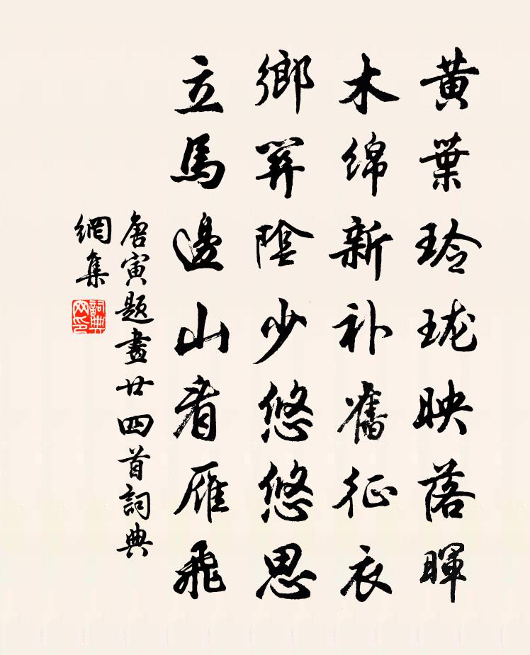 黃葉玲瓏映落暉,木綿新補舊征衣。鄉關陰少悠悠思,立馬邊山看雁飛。