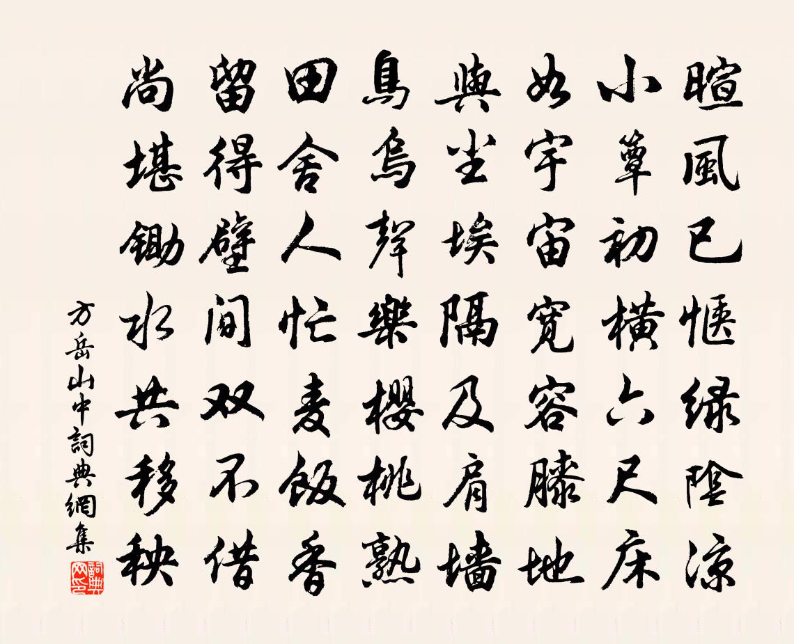 詩詞名句歷史字典書法欣賞書法字典國語詞典說文解字康熙字典古漢語字典標 題 作 者 詩 句 山中作者:方岳 朝代:宋代山中原文暄風已愜綠陰涼,小簟初橫六尺床。如宇宙寬容膝地,與塵埃隔及肩牆。鳥烏聲樂櫻桃熟,田舍人忙麥飯香。留得壁間雙不借,尚堪鋤水共移秧。詩詞問答問:山中的作者是誰?答:方岳問:山中寫於哪個朝代?答:宋代方岳山中書法欣賞山中書法作品詩詞推薦五次韻周必大〔宋代〕客嘉合饋五先漿,竹好仍生一味涼。天與冰肌勝傅粉,星馳火齊捷飛黃。將雛華表疑丁冷,喚渡京江憶杜娘。屢枉和浙東童倉使建昌家圃梅花玉雪亭詩三首宋伯仁〔宋代〕黃昏約略酒醒時,塞管何煩特地吹。是則調羹訊息早,不妨留伴月鉤垂。緣識宋太宗〔宋代〕上短下長人莫笑,信緣披得便前行。衣裳不是顛來倒,憑仗丹青畫取成。送裴五歸京口李嘉祐〔唐代〕君罷江西日,家貧為一官。還歸五陵去,只向遠峰看。暮色催人別,秋風待雨寒。遙知到三徑,唯有菊花殘。贈湘南漁父劉長卿〔唐代〕問君何所適,暮暮逢煙水。獨與不繫舟,往來楚雲里。釣魚非一歲,終日只如此。日落江清桂楫遲,纖鱗百尺深可出入二嶺行舒岳祥〔宋代〕出童公,入童公,一嶺二水分西東。前山萬竹入新路,新路蒼海通方蓬。入黃甘,出黃甘,一山二水分北南。北南宋江三十六贊龔開〔宋代〕汝優婆塞,五戒在身。酒色財氣,更要 * 。郊廟歌辭享太廟樂章惟新舞劉晏〔唐代〕漢祚惟永,神功中興。風驅氛祲,天覆黎蒸。三光再朗,庶績其凝。重熙累洽,景命是膺。漁浦戴栩〔宋代〕久慚竅食侶鵷鴻,尚以詩名玷至公。喜對親慈說田裡,了無事鄙到船蓬。漲流暫急潮差候,陰靄俄銷月在空。夢讀和自村同年韻寄南山劉義車趙必象〔宋代〕空谷寥寥絕足音,月明千里故人心。功名蝴蝶半床夢,歲月蜉蝣一息陰。王粲曾聞附劉表,華元何忍薄羊斟。買舟效阮公詩江淹〔南北朝〕十年學讀書。顏華尚數據好。不逐世間人。鬬雞東郊道。富貴如浮雲。金玉不為寶。一旦鵜鴂鳴。嚴霜被勁草。志紀西夏事范雍〔宋代〕承平廢邊事,備預久已亡。萬卒不知戰,兩城皆復隍。輕敵謂小丑,視地固大荒。願因狂狡叛,從此葺邊防。初秋憶湖上諸山釋永頤〔宋代〕山中夏日足幽娛,葛帔藤休誦寶書。白拂惹雲黏几案,清香緣竹上空虛。草堂夜月秋花近,水閣晨霞夕霓疏。遙憶偈頌三十八首釋如淨〔宋代〕煙濛濛,雨濛濛,芍藥花開濕嫩紅。我今灌沐諸如來,人間天上起清風。句餘子畏〔宋代〕我合焚香夜深坐,等君頭白柳州來。初葺遺老齋二首蘇轍〔宋代〕髭鬚渾白已經歲,腰痛春來日又多。一味安閒猶有礙,卻令朝謁擬如何。築居定作子孫計,好事久遭僧佛呵。尤愧王給事餉玉友陸游〔宋代〕散發蕭然蒲葦林,馬軍送酒慰孤斟。江河不洗古今恨,天地能知忠義心。無侶有時邀落月,放狂連夕到橫參。玉船句蕭德藻〔宋代〕眼冷寒梢明數點,知他是雪是梅花。春困二絕范成大〔宋代〕採花生菜又新年,節物人情已可憐。不待春來呼我困,四時何日不堪眠?儒衣陳其姓工於畫牛馬魚一日持六簇為贈以換戴復古〔宋代〕生絹六幅淡墨圖,伊人筆端有造化。驊騮汗血捉電光,牯牸倦耕眠草下。陂塘漠漠煙雨後,出水群魚戲瀟灑。細看名句推薦不義不昵,厚將崩。左丘明《左傳·隱公·隱公元年》 來說是非者,便是是非人。佚名《增廣賢文·上集》 山桃紅花滿上頭,蜀江春水拍山流。劉禹錫《竹枝詞·山桃紅花滿上頭》 寒山轉蒼翠,秋水日潺湲。王維《輞川閒居贈裴秀才迪》 關城榆葉早疏黃,日暮雲沙古戰場。王昌齡《從軍行七首》 合軍聚眾, 務在激氣孫臏《孫臏兵法·延氣》 江上往來人,但愛鱸魚美范仲淹《江上漁者》 貴出如糞土,賤取如珠玉。司馬遷《史記·貨殖列傳》 輕陰池館水平橋,一番弄雨花梢。陳子龍《畫堂春·雨中杏花》 白狼河北音書斷,丹鳳城南秋夜長。沈佺期《古意呈補闕喬知之 / 古意 / 獨不見》