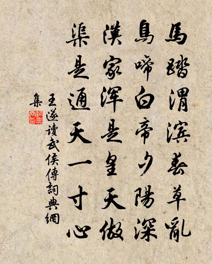 詩詞名句歷史字典書法欣賞書法字典國語詞典說文解字康熙字典古漢語字典標 題 作 者 詩 句 讀武侯傳作者:王遂 朝代:宋代讀武侯傳原文馬踏渭濱春草亂,鳥啼白帝夕陽深。漢家渾是皇天做,渠是通天一寸心。詩詞問答問:讀武侯傳的作者是誰?答:王遂問:讀武侯傳寫於哪個朝代?答:宋代王遂讀武侯傳書法欣賞讀武侯傳書法作品詩詞推薦高宗皇帝輓詞二首倪思〔宋代〕稽古神文煥,中興武烈光。挈圖親授子,體道妙為皇。萬乘隆尊養,千齡甫壽康。龍湖俄趣駕,遽返白雲鄉。題鼎州甘泉寺范諷〔宋代〕平仲酌泉回北望,謂之禮佛向南行。煙嵐翠鎖門前路,轉使高僧厭寵榮。棗花董嗣杲〔宋代〕香落衣巾靡靡中,花垂碧澗不流冬。易開易落催成子,誰采誰收怕見紅。種有萬林綿北地,詩傳八月剝西風。千株冬日有懷李賀長吉戴叔倫〔唐代〕歲晚齋居寂,情人動我思。每因一尊酒,重和百篇詩。月冷猿啼慘,天高雁去遲。夜郎流落久,何日是歸期。挽文山胡斗南〔宋代〕金骨神仙玉色人,千霜萬雪見吾真。聖賢盡節心彌壽,天地為棺道不貧。河漢橫流豪傑淚,風霆怒發鬼神嗔。先生耕樂詩四首袁甫〔宋代〕少時操筆代躬耕,老鶴如今太瘦生。已識箇中真樂地,誰雲骨相費生成。清江台金君卿〔宋代〕貢章湍險吁可驚,岸翻石走轟雷霆。崩奔出{左章右貢}一千里,江勢到此才淵渟。道出仙府相照映,盤泊下飲蒼琉璃砲燈葉茵〔宋代〕體制先天太極圖,燈籠真是水晶無。遠看玉免光中魄,近得驪龍頷下珠。一焰空明疑火燧,寸波靜定即冰壺。游魚謝趙季茂海錯二律岳珂〔宋代〕苜盤朝日照蓬蒿,消得長吟賦老饕。喜見監州有螃蟹,未須學士議車螯。案鮭三九漫青韭,斗酒十千無白醪。應為次士特韻寄德久牧之李處權〔宋代〕家山鑿龍似修眉,中有伊川寒更綠。吾廬亦復遠城市,舍下清流環幾曲。四時幽人共吟醉,飲若長鯨杯要覆。三年減字木蘭花(恭人生日)王之望〔宋代〕糟糠相樂。早共梁鴻同隱約。著籍天門。隔品新封感帝恩。滿堂兒女。婦捧金杯孫屢舞。白髮卿卿。與爾尊前作壽奉和聖制重陽日賜宴韋應物〔唐代〕聖心憂萬國,端居在穆清。玄功致海晏,錫宴表文明。恩屬重陽節,雨應此時晴。寒菊生池苑,高樹出宮城。捧藻送秦光祿北征李賀〔唐代〕北虜膠堪折,秋沙亂曉鼙。髯鬍頻犯塞,驕氣似橫霓。灞水樓船渡,營門細柳開。將軍馳白馬,豪彥騁雄材。箭射傾古三首釋宗璉〔宋代〕新婦騎驢阿家牽,草里尋常萬萬千。誰在後兮誰在先,不須特地苦加鞭。憩靈隱寫懷釋紹嵩〔宋代〕莫恨征途遠,題詩記獨游。十年行路飽,萬里此生浮。宇宙知何極,山川慰久留。倚欄喔五字,不覺散人愁。月中炬火發仙山驛,小睡射亭五首楊萬里〔宋代〕道是宵征即曉光,若言明發未朝陽。月華露氣山兼水,享盡人間第一涼。禪人並化主寫真求贊釋正覺〔宋代〕道隨緣而不變,源赴汲而不枯。禪悅之食兮飽其腹,法空之認兮跏其趺。青原自喜有麟角,黃檗誰嫌捋虎鬚。定州閱古堂富弼〔宋代〕朔方之兵,勁於九土。尤勁而要,粵惟定武。兵勁在馭,用則羆虎。失馭而勁,驕不可舉。曰保曰貝,閉壁連阻。名實無當釋重顯〔宋代〕玉轉珠回祖佛言,精通猶是污心田。老盧只解長春米,何得黃梅萬古傳。紅葉楊萬里〔宋代〕詩人滿腹著清愁,吐作千詩未肯休。寫遍壁間無去處,卻將紅葉強題秋。名句推薦行到水窮處,坐看雲起時。王維《終南別業 / 初至山中 / 入山寄城中故人》 昨別今已春,鬢絲生幾縷。韋應物《長安遇馮著》 梅花雪,梨花月,總相思。張惠言《相見歡·年年負卻花期》 人生得意須盡歡,莫使金樽空對月。李白《將進酒》 衣不如新,人不如故。佚名《古艷歌》 敗垣芳草,空廊落葉,深砌蒼苔。徐再思《人月圓·甘露懷古》 零落棲遲一杯酒,主人奉觴客長壽。李賀《致酒行》 帝里重清明,人心自愁思。孟浩然《清明即事》 念寒蛩殘夢,歸鴻心事,那聽江村夜笛。吳文英《瑞鶴仙·秋感》 東風裊裊泛崇光,香霧空濛月轉廊。蘇軾《海棠·東風裊裊泛崇光》