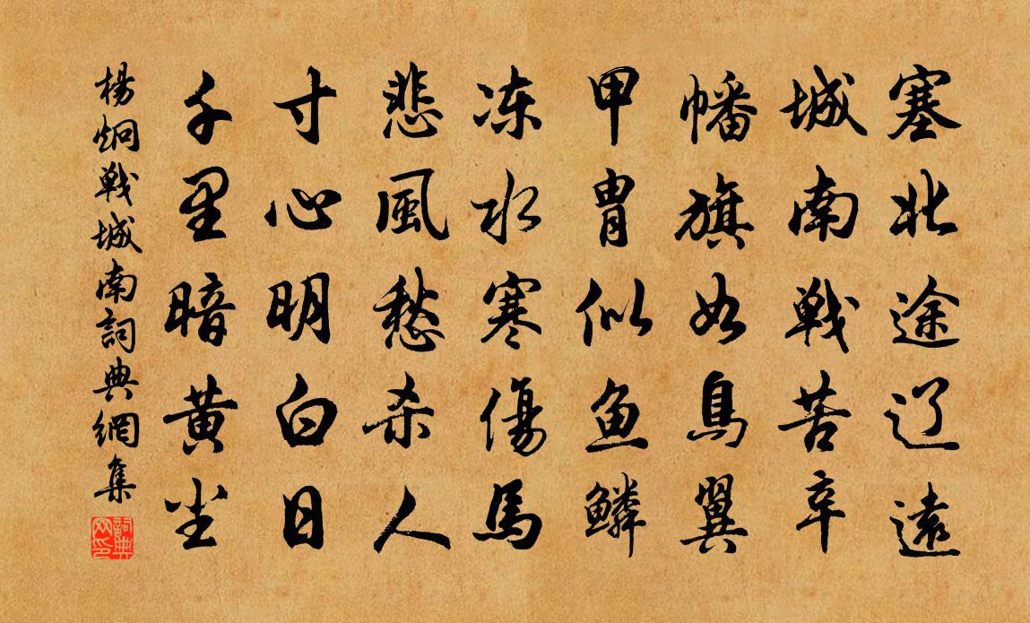 尾聯以景作結,“千里暗黃塵”,既是描繪大漠黃沙飛的自然景色,也用以渲染戰爭的激烈,征塵千里遮天蔽日。然而戰士的心中卻充滿了明亮的陽光。“寸心明白日”句,精微入妙,詞語新穎,內涵豐富,藝術概括力強,揭示了征人光明的內心世界。他心繫著祖國 ,懷著必勝的信心,視死如歸,繼續馳騁疆場,報效君王。