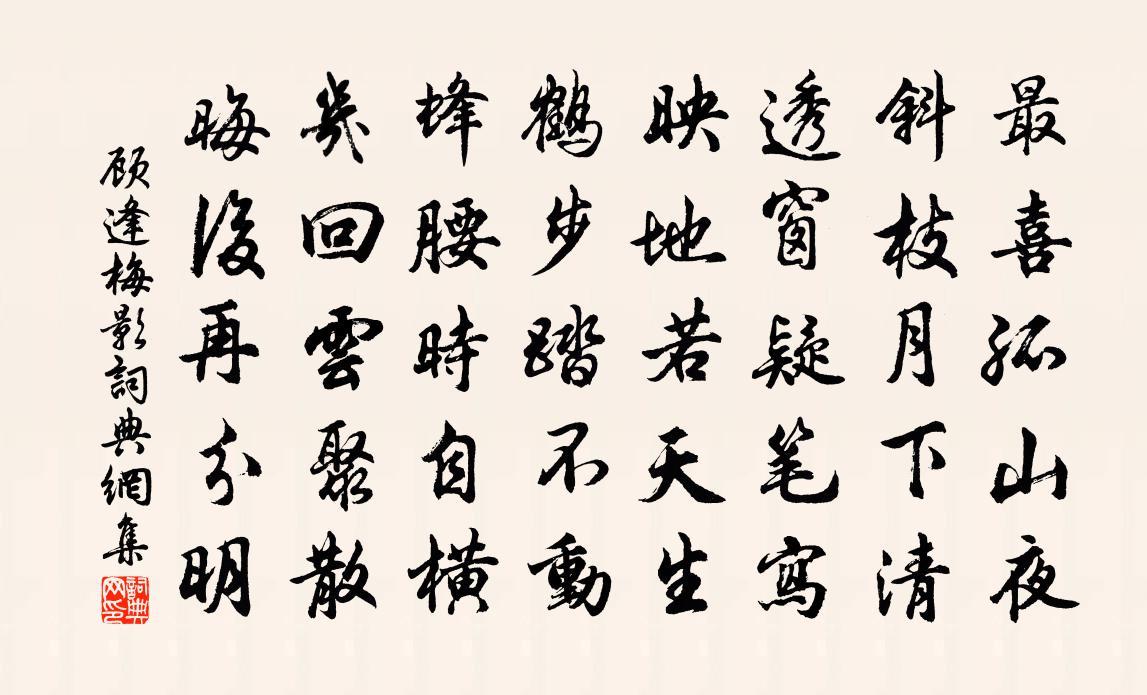 詩詞名句歷史字典書法欣賞書法字典國語詞典說文解字康熙字典古漢語字典標 題 作 者 詩 句 梅影作者:顧逢 朝代:宋代梅影原文最喜孤山夜,斜枝月下清。透窗疑筆寫,映地若天生。鶴步踏不動,蜂腰時自橫。幾回雲聚散,晦後再分明。詩詞問答問:梅影的作者是誰?答:顧逢問:梅影寫於哪個朝代?答:宋代顧逢梅影書法欣賞梅影書法作品詩詞推薦送皎然上人歸山李端〔唐代〕適來世上豈緣名,適去人間豈為情。古寺山中幾日到,高松月下一僧行。雲陰鳥道苔方合,雪映龍潭水更清。法主渭城春晚譚用之〔唐代〕秦樹朦朧春色微,香風煙暖樹依依。邊城夜靜月初上,芳草路長人未歸。折柳且堪吟晚檻,弄花何處醉殘暉。釣鄉奉和聖制送張說上集賢學士賜宴(賦得西字)韋抗〔唐代〕廣庭臨璧沼,多士侍金閨。英宰文儒葉,明君日月齊。集賢光首拜,改殿發新題。早夏初移律,餘花尚拂溪。壺觴張持道生辰三首郭印〔宋代〕咫尺桃源路,乘閒許杖藤。高談六十劫,暗室百千燈。邀月公揮手,眠雲我曲肱。洞門初不鎖,俗客豈容登。怪松錢時〔宋代〕老木樛枝著地垂,交拿互攫掛虬螭。何如頭角崢嶸起,直節凌霄愈更奇。送張學士赴闕夏竦〔宋代〕東觀嘗聯袂,南州各退飛。同傾就日戀,先喜賜環歸。舊業懷鉛筆,晨裝振彩衣。離弦有餘思,淒切寄南徽。陳叔盥兩惠詩以一首謝陳藻〔宋代〕休要逢人誦六經,紅泉往事已凋零。向來未壞恭王壁,到處閒搖普化鈴。幾歲寒窗頭也白,兩篇新什眼空青。還鄉送楊嗣勛校書守眉山樓鑰〔宋代〕我生東南陬,不識蜀道難。觀君眉宇秀,想見岷峨山。漢廷射策時,連璧照鴛班。伯氏書萬言,逸駕不可攀。茲焉楊柳徐橘隱〔宋代〕陰陰垂柳亂蟬嘶,柳外嬌鶯自在啼。心事太平山色好,開軒坐到日沈西。書懷詹初〔宋代〕小豀流水自悠悠,策杖南林入早秋。隨地人生俱可樂,浮雲富貴復何求。彭州上元二首李石〔宋代〕蜀川東抱戰聲流,元夕來監舍畔州。莫把華燈照人淚,只堪掩面替民愁。頌一百則釋重顯〔宋代〕妙峰孤頂草離離,拈得分明付與誰。不是孫公辨端的,髑髏著地幾人知。相思(一作紅豆,又作江上贈李龜年)王維〔唐代〕紅豆生南國,春來發幾枝。願君多採擷,此物最相思。漁父詞/漁父王諶〔宋代〕滿湖飛雪攪長空。急起呼兒上短蓬。箬笠具,畫圖同。鐵笛聲長曲未終。漁家傲佚名〔宋代〕橘綠橙黃霜落候。小春天氣宜晴書。一片祥光橫宇宙。仙樂奏。千官共祝南山壽。湛露恩波濃似酒。□堂宴罷嵩呼代馮元禮次韻辭張次應畫山水扇晁說之〔宋代〕女鸞寶扇謾稱工,誰識嵐漪縹香蹤。何事晚來慵落筆,為嗔不說妙高峰。挽曹夫人劉黻〔宋代〕一見豐碑已愴情,大家名重乞誰銘。金花屢錫華封誥,白髮重看禁從榮。三世種成庭上桂,一生讀盡藏中經。當年寄南城韋逸人羅隱〔唐代〕杜甫詩中韋曲花,至今無賴尚豪家。美人曉折露沾袖,公子醉時香滿車。萬里丹青傳不得,二年風雨恨無涯。羨他病起十首劉克莊〔宋代〕昔與諸賢共造廷,如風吹絮浪飄萍。溘行忽忽同晨露,殿後暉暉獨曙星。未肯肩隨金谷友,幸留面見草堂靈。伯倫太常樂章三十首其三皇帝奠幣奏瑞文之曲楊億〔宋代〕淳精育物,瑞木成文。元氣陶冶,非煙郁紛。玄貺昭格,至和所薰。登歌裸獻,肸蠁如聞。名句推薦憂勞可以興國,逸豫可以亡身歐陽修《伶官傳序》 明朝且做莫思量,如何過得今宵去。周紫芝《踏莎行·情似遊絲》 非淡泊無以明志,非寧靜無以致遠。諸葛亮《誡子書》 岸旁青草長不歇,空中白雪遙旋滅。岑參《熱海行送崔侍御還京》 星垂平野闊,月涌大江流。杜甫《旅夜書懷》 可憐日暮嫣香落,嫁與春風不用媒。李賀《南園十三首》 桑野就耕父,荷鋤隨牧童。孟浩然《田家元日》 秋風萬里芙蓉國,暮雨千家薜荔村。譚用之《秋宿湘江遇雨》 又是春將暮,無語對斜陽。葛長庚《水調歌頭·江上春山遠》 荷風送香氣,竹露滴清響。孟浩然《夏日南亭懷辛大》
