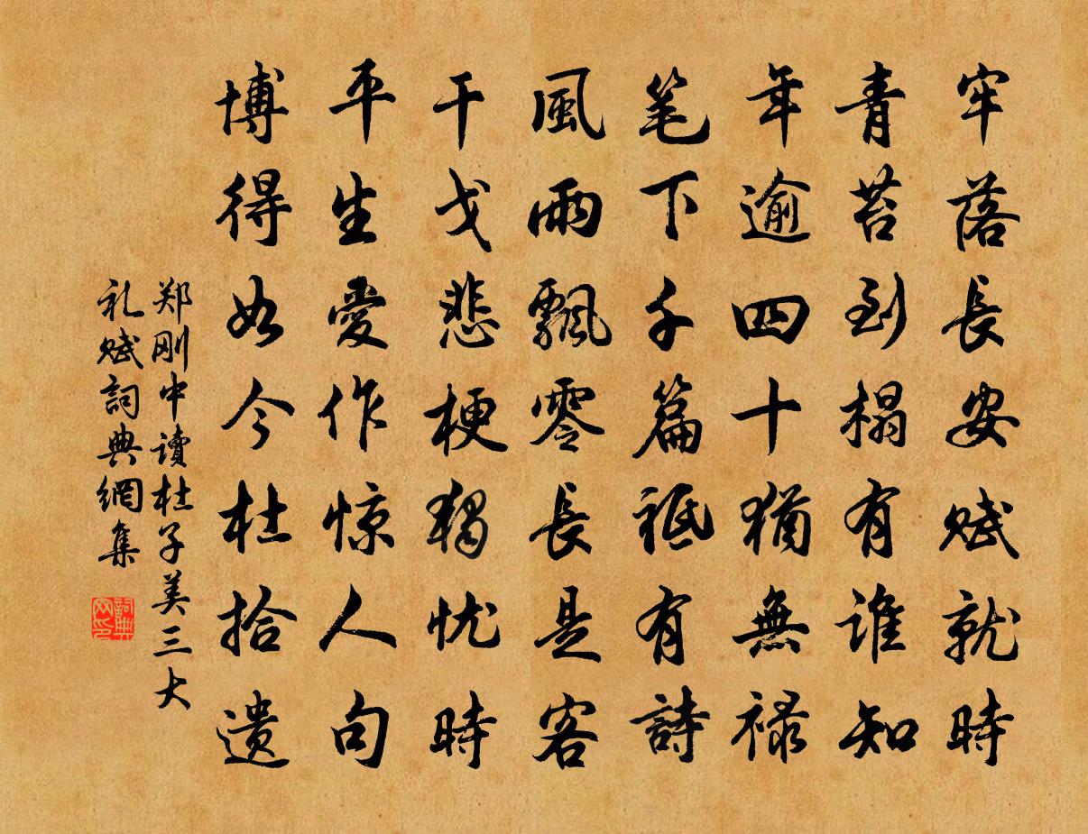 詩詞名句歷史字典書法欣賞書法字典國語詞典說文解字康熙字典古漢語字典標 題 作 者 詩 句 讀杜子美三大禮賦作者:鄭剛中 朝代:宋代讀杜子美三大禮賦原文牢落長安賦就時,青苔到榻有誰知。年逾四十猶無祿,筆下千篇祗有詩。風雨飄零長是客,干戈悲梗獨憂時。平生愛作驚人句,博得如今杜拾遺。詩詞問答問:讀杜子美三大禮賦的作者是誰?答:鄭剛中問:讀杜子美三大禮賦寫於哪個朝代?答:宋代鄭剛中讀杜子美三大禮賦書法欣賞讀杜子美三大禮賦書法作品詩詞推薦晚霽登汝南大雲閣賈彥璋〔唐代〕禪宮新歇雨,香閣晚登臨。邑樹晴光起,川苗佳氣深。水包城下岸,雲細郢中岑。自嘆牽卑日,聊開望遠心。織圖二十四首上簇樓璹〔宋代〕采采綠葉空,翦翦白茅短。撒簇輕放手,蠶老絲腸嫩。山市浮晴嵐,風日作妍暖。會看繭如瓮,累累光眩眼。酬濬上人採藥見寄劉商〔唐代〕玉英期共采,雲嶺獨先過。應得靈芝也,詩情一倍多。上古之什補亡訓傳十三章。囝一章顧況〔唐代〕(囝,哀閩也。)囝生閩方,閩吏得之,乃絕其陽。為臧為獲,致金滿屋。為髡為鉗,如視草木。天道無知,我罹菩薩蠻程垓〔宋代〕去年恰好雙星節。鵲橋未渡人離別。不恨障雲生。恨他真箇行。天涯訊息近。不見乘鸞影。樓外鷓鴣聲。幾回和夢福昌官舍後絕句十首張耒〔宋代〕無客門闌盡日扃,兩行喬木擁寒廳。吏胥借問官何在,流水聲中看竹行。春日醉起言志李白〔唐代〕處世若大夢,胡為勞其生。所以終日醉,頹然臥前楹。覺來盼庭前,一鳥花間鳴。借問此何時,春風語流鶯。感之靜林精舍靈一〔唐代〕靜林溪路遠,蕭帝有遺蹤。水擊羅浮磬,山鳴于闐鍾。燈傳三世火,樹老萬株松。無數煙霞色,空聞昔臥龍。寄晉州孫學士曾鞏〔宋代〕風標閒淡易為安,晉陝應忘道路難。學似海收天下水,性如桂奈月中寒。素心已向新書見, * 常留後世看。自送答楊辟喜雨長句歐陽修〔宋代〕吾聞陰陽在天地,升降上下無時窮。環回不得不差失,所以歲時無常豐。古之為政知若此,均節收歛勤人功。三年團扇歌楊維楨〔元代〕團扇復團扇,秋風不相見。隱顯各有時,陽阿舞雙燕。龍池沙漲洪咨夔〔宋代〕龍徙三湫宅,山飛百道洪。雲車風馬去,福地洞天空。蒼莽渾沙積,崎嶇沒徑通。等閒陵谷變,驚倒白頭翁。界石守風,望天竺、靈隱二寺皎然〔唐代〕山頂東西寺,江中旦暮潮。歸心不可到,松路在青霄。芍藥三首賈似道〔宋代〕又是揚州芍藥時,花應笑我賦歸遲。滿堂留得春如畫,對酒何妨鬢似絲。玉立黃塵那可到,錦圍紅蠟最相宜。買山四月五日醉書慈雲閣陳著〔宋代〕峰開荷葉東南傾,梵宮截斷西來青。參差樓閣半空起,撞鐘椎魚撼林坰。奔走簦笠數百里,隨事來乞山中靈。大眾曾先生第一百三十六文天祥〔宋代〕江海日淒涼,賢聖盡蕭索。西河共風味,顧步涕橫落。和韓絳游鴻慶寺吳師孟〔宋代〕十里東郊道,茲游歲月深。參僚從行府,高會適叢林。穉子喧沽玉,春姬笑子金。咳珠僧護寶,醉弁客遺簪。天賜寄清新二禪師頌黃庭堅〔宋代〕死心寮里有清新,把斷黃河塞要津。一段風濤驚徹底,箇中無我爾無人。夢驚蛇咬慞惶走,痛學尋毉□有神。此是復偶見韓翃〔唐代〕桃花臉薄難藏淚,柳葉眉長易覺愁。密跡未成當面笑,幾回抬眼又低頭。題臥屏十八花山茶葛立方〔宋代〕十月幽園開曉風,層層絳蕊艷芳業。江南只慣收鷹爪,誰顧山前鶴頂紅。名句推薦勸君頻入醉鄉來,此是無愁無恨處。晏幾道《玉樓春·雕鞍好為鶯花住》 人皆可罪,罪人須定其人。來俊臣《羅織經·問罪卷第十》 天下之百姓皆上同於天子,而不上同於天,則災猶未去也。墨子《墨子·11章 尚同(上)》 一聲何滿子,雙淚落君前。張祜《宮詞·故國三千里》 殷勤昨夜三更雨,又得浮生一日涼。蘇軾《鷓鴣天·林斷山明竹隱牆》 撥雪尋春,燒燈續晝。毛滂《踏莎行·元夕》 秋風萬里動,日暮黃雲高。岑參《鞏北秋興寄崔明允》 桃花春水淥,水上鴛鴦浴。韋莊《菩薩蠻》 黃河遠上白雲間,一片孤城萬仞山。王之渙《涼州詞二首·其一》 修竹畔,疏簾里。歌余塵拂扇,舞罷風掀袂。謝逸《千秋歲·詠夏景》