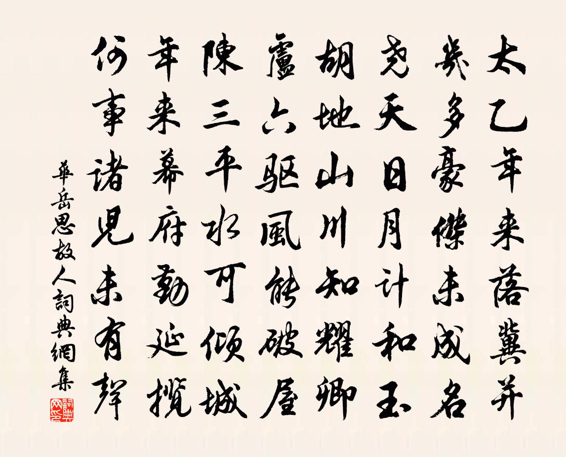 詩詞名句歷史字典書法欣賞書法字典國語詞典說文解字康熙字典古漢語字典標 題 作 者 詩 句 思故人作者:華岳 朝代:宋代思故人原文太乙年來落冀並,幾多豪傑未成名。堯天日月計和玉,胡地山川知耀卿。盧六驅風能破屋,陳三平水可傾城。年來幕府勤延攬,何事諸兒未有聲。詩詞問答問:思故人的作者是誰?答:華岳問:思故人寫於哪個朝代?答:宋代華岳思故人書法欣賞思故人書法作品詩詞推薦山坡羊·江山如畫陳草庵〔元代〕江山如畫,茅檐低廈,婦蠶繅婢織紅奴耕稼。務桑麻,捕魚蝦。漁樵見了無別話,三國鼎分牛繼馬。興,休羨他。淚徐夤〔唐代〕發事牽情不自由,偶然惆悵即難收。已聞抱玉沾衣濕,見說迷途滿目流。滴盡綺筵紅燭暗,墜殘妝閣曉花羞。世間採桑子 孟夏梁寅〔元代〕舍南舍北多桃李,子滿青枝。曲徑冥迷。新竹增高舊竹低。掃苔坐石何妨久,行步常遲。佇立移時。雲起東峰日墜書適陸游〔宋代〕家食身無役,耆年力未衰。寓歡那待酒,隨意或成詩。窮達元非我,冤親竟是誰?惟嗟見事晚,枉卻鬢邊絲。花心動(七夕)張元乾〔宋代〕水館風亭,晚香濃、一番芰荷新雨。簟枕乍閒,襟裾初試,散盡滿天袢暑。斷雲卻送輕雷去。疏林外、玉鉤微吐。贈梅處士張籍〔唐代〕早聞聲價滿京城,頭白江湖放曠情。講易自傳新注義,題詩不著舊官名。近移馬跡山前住,多向牛頭寺里行。天子筠溪八景詩谷岫陵雲陳著〔宋代〕毓秀山根插翠峰,如陵如阜起嶐嵷。堆高鹿苑沖銀漢,積擬鉅橋跨玉虹。斂厚難輸王廩粟,歲豐長守大夫松。乾坤次韻李久善近詩四首郭印〔宋代〕高人來折節,不免稻粱謀。排悶唯詩卷,消愁只茗甌。此時同幕府,何日共仙舟。氣味難相得,逢君寫我憂。寄題尹少稷借竹軒韓元吉〔宋代〕借屋復借竹,主人貧可知。清風時引酒,長日最須棋。牆缺秋聲過,庭空月影隨。遙憐對高節,幽獨更題詩。李文饒一首劉克莊〔宋代〕畫取維州如槁葉,策禽潞將似嬰兒。九原精爽人猶畏,想見中書秉筆時。荒齋晝坐為鳴鳶所聒宋祁〔宋代〕喜鈔寒鴟六翮輕,蕭條墟落恣飛鳴。屠鄰腐肉知無限,少作揚州餓箭聲。湖山十詠王希呂〔宋代〕荷花過眼作鮮妍,小艇初疑久自便。日日孤山山下路,紅菱白藕不論錢。枕上和圓機絕句梅花十有四首晁說之〔宋代〕霜女月娥愁不開,萼君西母宴瑤台。總將芳意傳英彩,下降人間得有梅。仰屋蘇泂〔宋代〕仰屋無窮事,甘心未遇時。雨花明燕羽,風葉墮蛛絲。農務從人說,光陰類箭移。早知霜白鬢,那免一生痴。陳平叔相從四年文行粹然臨分惠詩有立身行道周必大〔宋代〕好因輪斲悟觀書,莫守筌蹄覓兔魚。華岳登來卑步仞,滄溟浮罷眇支渠。命窮且戲娛親彩,道合須牽奉詔裾。此外水調歌頭(四月四日自壽,用玉林韻,兼效其體)馮取洽〔宋代〕林葉潤而密,鶯語老猶嬌。懶翁那記生日,兀兀度昏朝。勘破富貧貴賤,參透死生壽夭,至竟本同條。胸次絕疑礙增城丞嘉禾張元輔才過郡輒去未及款曲已而同曾豐〔宋代〕隨牒相逢瘴海邊,經從不為小留連。藍田晝短子姑去,彭澤春濃我欲眠。近境曾無攜具日,殊鄉卻有對床緣。天知賀新郎崔與之〔宋代〕雨過雲容掃。使星明、德心高揭,福心旁照。槐屋猶喧梅正熟,最是清和景好。望金節、雲間縹緲。和氣如春清似酬姚少府賈島〔唐代〕梅樹與山木,俱應搖落初。柴門掩寒雨,蟲響出秋蔬。枯槁彰清鏡,孱愚友道書。刊文非不朽,君子自相於。趣景升太尉畫孫登像晁說之〔宋代〕契闊王孫魂夢勞,京華一日重遊遨。圖書不惜黃金費,歌舞何妨籙佩高。月到南樓臥吹笛,花殘曲幾醉揮毫。如何名句推薦莫遣只輪歸海窟,仍留一箭射天山。李益《塞下曲》 高田如樓梯,平田如棋局。楊慎《出郊》 醉臥沙場君莫笑,古來征戰幾人回?王翰《涼州詞二首·其一》 其進銳者,其退速。孟子《孟子·盡心章句上·第四十四節》 惟有南來無數雁,和明月、宿蘆花。鄧剡《唐多令·雨過水明霞》 南國有佳人,容華若桃李。曹植《雜詩·南國有佳人》 靜夜沉沉,浮光靄靄,冷浸溶溶月。丘處機《無俗念·靈虛宮梨花詞》 惟有兩行低雁,知人倚、畫樓月。范成大《霜天曉角·梅》 吹燈窗更明,月照一天雪。袁枚《十二月十五夜》 水深橋樑絕,中路正徘徊曹操《苦寒行》