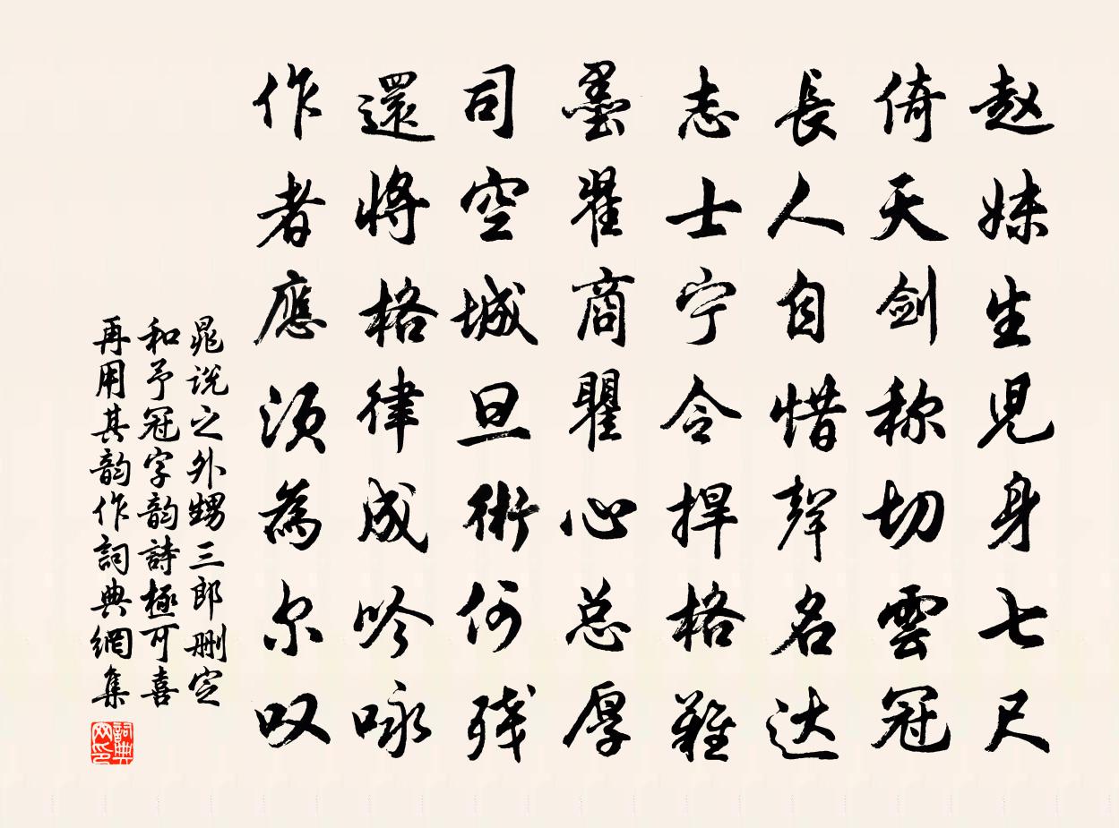 詩詞名句歷史字典書法欣賞書法字典國語詞典說文解字康熙字典古漢語字典標 題 作 者 詩 句 外甥三郎刪定和予冠字韻詩極可喜再用其韻作作者:晁說之 朝代:宋代原文趙妹生兒身七尺,倚天劍稱切雲冠。長人自惜聲名達,志士寧令捍格難。墨翟商瞿心總厚,司空城旦術何殘。還將格律成吟詠,作者應須為爾嘆。詩詞問答問:《外甥三郎刪定和予冠字韻詩極可喜再用其韻作》的作者是誰?答:晁說之問:該詩寫於哪個朝代?答:宋代書法欣賞外甥三郎刪定和予冠字韻詩極可喜再用其韻作書法作品詩文賞析【原題】:外甥三郎刪定和予冠字韻詩極可喜再用其韻作二首韋蘇州有外甥趙伉獻詩合雅音詩詞推薦飛龍引曹勛〔宋代〕炎精應運開真籙,神母嗷嗷夜潛哭。五星同軌蒞秦雍,十二真人翔水曲。斷蛇約法授天人,項籍叱吒徒驅逐。蕭曹別嚴滄浪戴復古〔宋代〕三生漢嚴助,筆陳抵千兵。雅志從南隱,吟詩到北征。結交疑泛愛,惜別見真情。來歲春花發,相期在上京。酬李益端公夜宴見贈盧綸〔唐代〕戚戚一西東,十年今始同。可憐歌酒夜,相對兩衰翁。韓同年新居餞韓西迎家室戲贈李商隱〔唐代〕籍籍征西萬戶侯,新緣貴婿起朱樓。一名我漫居先甲,千騎君翻在上頭。雲路招邀回彩鳳,天河迢遞笑牽牛。南朝句王度〔宋代〕風摧秀林木,色變附藍絲。杜和州寄新醅吳正仲雲家有海鮮約予攜往就酌梅堯臣〔宋代〕淮南寄我玉醅酒,白蚶海月君家有。欲持就味明日期,窮羹易覆已反手。從事開筵不可辭,燕脂秀臉羅前後。長頸南歌子程大昌〔宋代〕和。取最後兩闋,試追元韻。地窄,但能小舉袖,不容敷舒也。每月冰輪轉,常疑桂影搖。封姨特地借今宵。萬水偈頌一百一十七首釋紹曇〔宋代〕岩桂飄香,井梧凋葉。活祖師機,重重漏洩。見得分明眼似眉,道得完全舌如結。諸人要知親切句麽, * 三月冷偈頌七十二首釋祖欽〔宋代〕白玉階前金鳳舞,黃金殿上玉雞鳴。正中來與兼中到,昨夜雲深月正明。怨王孫 七夕朱彝尊〔清代〕一水填卻雙星如約。乞巧誰憑。訴愁君莫,知道呆女痴牛,肯憐不。悠悠歲月辭家者,孤眠且。此夕何夕也。碧梧贈潁陽知縣劉燁著作魏野〔宋代〕門風是相門,積慶豈須論。祖德書儀在,科名榜帖存。政聲聞牧豎,墨跡見花村。物論將徵用,多應入諫垣。過青潭鋪用杜少陵韻胡銓〔宋代〕世路羊腸險,崎嶇不計層。附炎蛾並火,待暗鼠窺燈。國削臣心折,秋高虜勢增,魚蝦何足慮,回前顧鯨鵬。別韋蘇州白居易〔唐代〕百年愁里過,萬感醉中來。惆悵城西別,愁眉兩不開。題伏生授書圖戴表元〔宋代〕白頭不死見時清,子女相依解授經。何用生男作鼂錯,乃翁一語不曾聽。雨後到南山村家徐文卿〔宋代〕沖雨入窮山,山民猶閉關。橘垂茅屋畔,梅映竹籬間。奇石依林立,清泉繞舍灣。吾思隱茲地,凝立未知還。滿江紅朱唏顏〔元代〕彈鋏歸來,更誰嘆、有魚無肉。念良夜,向闌相對,舊歡難續。一夕乍寒秋枕夢,十年重翦西窗燭。算人生,得意自封丘北岸渡江至汴梁陳維崧〔清代〕漭漭河聲,捩柁處、怒濤千尺。絕壁下、魚龍悲嘯,水波欲立。一派灰飛官渡火,五更霜灑中原血。問成皋京索事陪吳正字賞花詩鄧深〔宋代〕名園無物不芳妍,上個籃輿緩繞旋。曲徑曲亭留客地,微雲淡日養花天。四時公舉春為最,萬事銓量酒是先。管領望江南/憶江南楊慧淑〔宋代〕江北路,一望雪皚皚。萬里打圍鷹隼急,六軍刁斗去還來。歸客別金台。江北酒,一飲動千杯。客有黃金如糞土,菩薩蠻(淹泊平山堂。寒食節,固陵綠事參軍表弟周元固惠酒,為作此詞)黃庭堅〔宋代〕細腰宮外清明雨。雲陽台上煙如縷。雲雨暗巫山。流人殊未還。阿誰知此意。解遣雙壺至。不是白頭新。周郎舊可名句推薦文章已滿行人耳,一度思卿一愴然。李忱《吊白居易》 器乏雕梁器,材非構廈材。趙彥昭《奉和元日賜群臣柏葉應制》 大樹無枝向北風,十年遺恨泣英雄。高啟《吊岳王墓》 油壁香車不再逢,峽雲無跡任西東。晏殊《無題·油壁香車不再逢》 善為吏者樹德,不善為吏者樹怨。韓非及後人《韓非子·外儲說左下》 料得年年腸斷處,明月夜,短松岡。蘇軾《江城子·乙卯正月二十日夜記夢》 當事者迷,旁觀者清。佚名《增廣賢文·下集》 禍福無門,唯人所召。左丘明《左傳·襄公·襄公二十三年》 偶因一著錯,便為人上人。曹雪芹《紅樓夢·第二回》 欲祭疑君在,天涯哭此時。張籍《沒蕃故人》