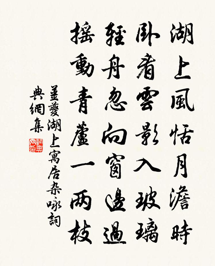 湖上風恬月澹時,臥看雲影入玻璃。輕舟忽向窗邊過,搖動青蘆一兩枝。