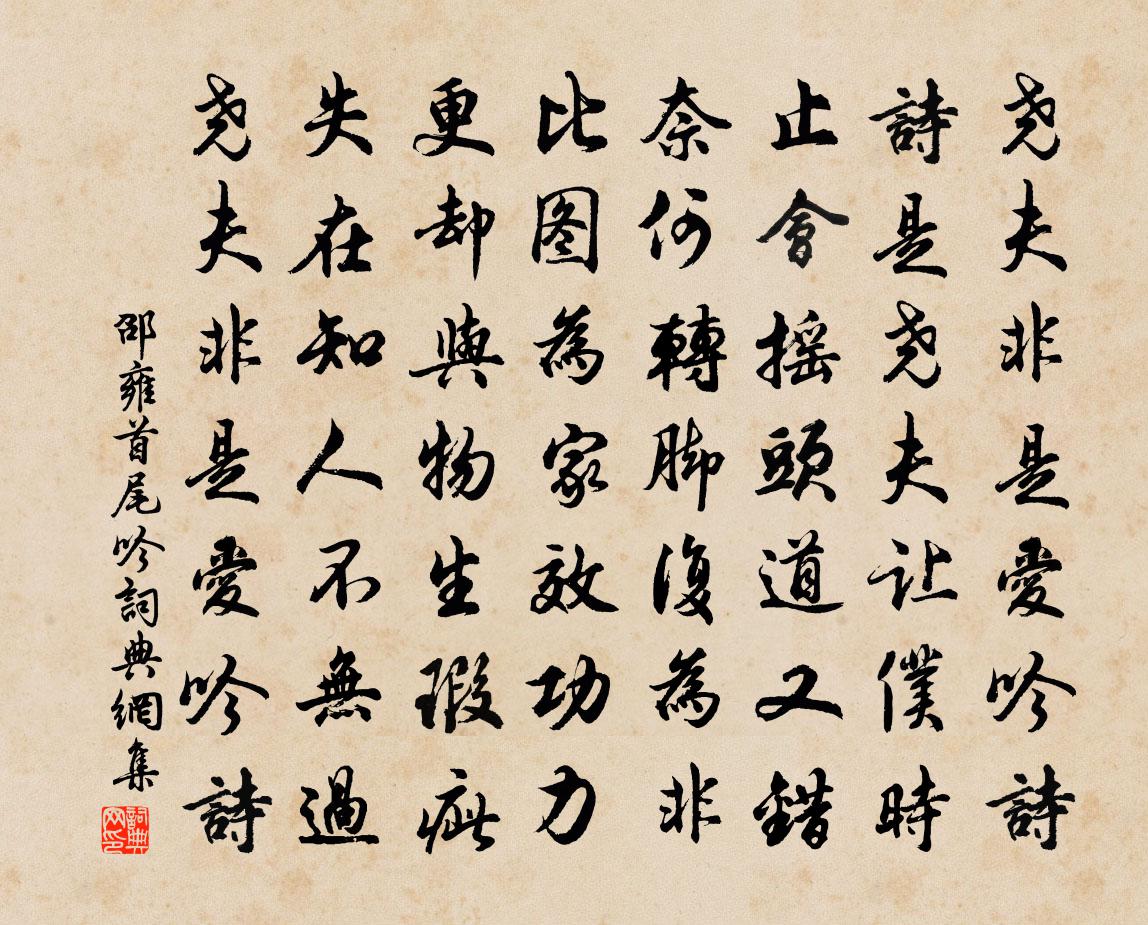 詩詞名句歷史字典書法欣賞書法字典國語詞典說文解字康熙字典古漢語字典標 題 作 者 詩 句 首尾吟作者:邵雍 朝代:宋代首尾吟原文堯夫非是愛吟詩,詩是堯夫讓仆時。止會搖頭道又錯,奈何轉腳復為非。比圖為家效功力,更卻與物生瑕疵。失在知人不無過,堯夫非是愛吟詩。詩詞問答問:首尾吟的作者是誰?答:邵雍問:首尾吟寫於哪個朝代?答:宋代邵雍首尾吟書法欣賞首尾吟書法作品詩詞推薦送宋屯田之湖南轉運判官鄭獬〔宋代〕綠綬郎官笑白頭,更攜龍節領諸侯。摶風初擊三千水,投刃方排十二牛。行色未拋京洛地,先聲已壓洞庭秋。漢家次韻李次仲赴巨山張舍人招贈之什蘇籀〔宋代〕君無吟秋草,螢飛而露濕。曼倩古豪英,羨門深抆拭。五難背生路,九鑰探金碧。烏龍因師指,龜峰森郡戟。張羅野眺釋紹嵩〔宋代〕道是東風不世情,樹頭吹得葉冥冥。憑欄一笑斜陽裹,貪看春山如許青。梁鼓吹曲 於穆沈約〔南北朝〕於穆君臣。君臣和以肅。關王道。定天保。樂均靈囿。宴同在鎬。前庭懸鼓鍾。左右列笙鏞。纓佩俯仰。有則修禮大晟府擬撰釋奠十四首佚名〔宋代〕百王宗師,生民物軌。瞻之洋洋,神其寧正。酌彼金疊,惟清且旨。登獻惟三,於嘻成禮。謁金門(慶彭教任滿)劉塤〔宋代〕花霧暖。紅逗海棠開半。氈坐談經春四換。今朝官正滿。好上鰲坡虎觀。好近御屏香案。休笑吾儂行色緩。待君來失調名佚名〔宋代〕燕子重來尋舊巢。和人登朗州江亭張詠〔宋代〕城上江亭簇暮煙,城根老枝浸江瀾。何人臨靜夜歌罷,獨客憑高秋興寬。直下路通諸國遠,偏東山隔半溪寒。漁翁贈楊左司三首趙蕃〔宋代〕先生文力早騫勝,今代詞人盡服膺。已見陳詩歌上壽,更須作頌紀中興。敢如杜集高岑比,尚愧韓門籍湜朋。政爾舟中書事張耒〔宋代〕久客益知行路難,鏡中雙鬢不須看。山川積雪堅冰地,舟楫長淮古汳間。饋費主人勤俗禮,書來故里勸加餐。北歸秋日雜興二首謝雋伯〔宋代〕西風運金氣,萬籟含商聲。寒蛩亦何為,微音最淒清。幽人倦長夜,拊枕難為情。朱門沸歌鐘,醉臥鴛鴦屏。晨雞春早選寓長安二首薛能〔唐代〕疏拙自沉昏,長安豈是村。春非閒客事,花在五侯門。道僻惟憂禍,詩深不敢論。揚雄若有薦,君聖合承恩。舊論雜興張鎡〔宋代〕伯牙善鼓琴,知音一子期。已得慰生平,絕弦勿復悲。深沉揚執戟,玄文準伏羲。各年未原賞,豈欲求當時。唐多令黎廷瑞〔宋代〕回棹百花洲。迢迢碧玉流。聽笛聲、何處高樓。如此江山無此客,雖有酒、奈何秋。呼月出雲頭。問渠能飲不。笑一剪梅(秋雨感悲)趙長卿〔宋代〕霽靄迷空曉未收。羈館殘燈,永夜悲秋。梧桐葉上三更雨,別是人間一段愁。睡又不成夢又休。多愁多病,當甚風霜後紀園中草木十二絕范成大〔宋代〕菊老芙蓉退,化工少均逸。蚤晚梅花動,從此無閒日。浪淘沙(四之一)賀鑄〔宋代〕把酒欲歌驪。濃醉何辭。玉京煙柳欲黃時。明日景陽門外路,相背春歸。斂淚復牽衣。私語遲遲。可憐誰會兩心期讀宣樞南山朱公遺集二首方回〔宋代〕疽根蟠閫內,命也可由人。蜀雪猶堅壁,江風已震鄰。功名拘氣數,文字見精神。仰藥臨危日,何曾愛此身。塞下曲李益〔唐代〕伏波惟願裹屍還,定遠何鬚生入關。莫遣只輪歸海窟,仍留一箭射天山。桂隱紀詠安樂泉張鎡〔宋代〕潛通大壑水,一杯千慮散。只因都放下,如熟病得汗。名句推薦銅鑄金鏞振紀綱,聲傳海外播戎羌。曹雪芹《交趾懷古》 閣中帝子今何在?檻外長江空自流。王勃《滕王閣序》 對秋深,離恨苦,數夜滿庭風雨。孫光憲《更漏子·對秋深》 朝作輕寒暮作陰,愁中不覺已春深。屈大均《壬戌清明作》 罪己宜苛,人憐不致大害。來俊臣《羅織經·保身卷第七》 城中桃李愁風雨,春在溪頭薺菜花。辛棄疾《鷓鴣天·陌上柔桑破嫩芽》 順天者存,逆天者亡。孟子《孟子·離婁章句上·第七節》 秋到邊城角聲哀,烽火照高台。陸游《秋波媚·七月十六日晚登高興亭望長安南山》 酌酒與君君自寬,人情翻覆似波瀾。王維《酌酒與裴迪》 清鏡無雙影,窮泉有幾重。顧況《酅公合祔輓歌》