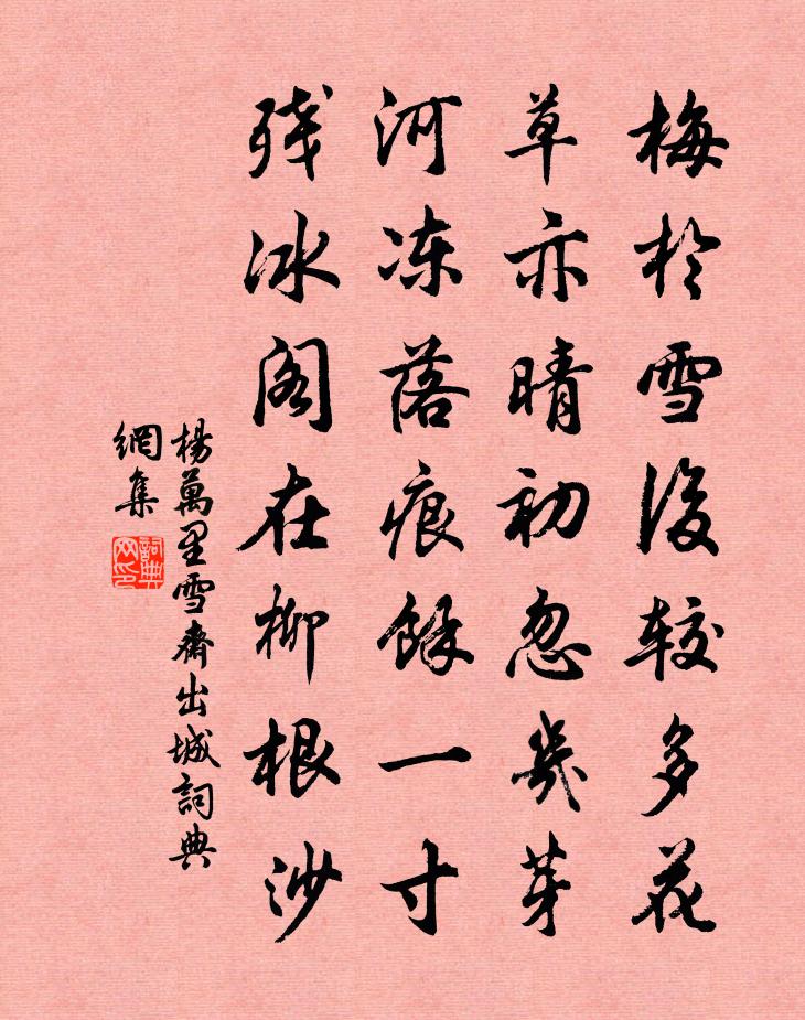 梅於雪後較多花,草亦晴初忽幾芽。河凍落痕餘一寸,殘冰閣在柳根沙。