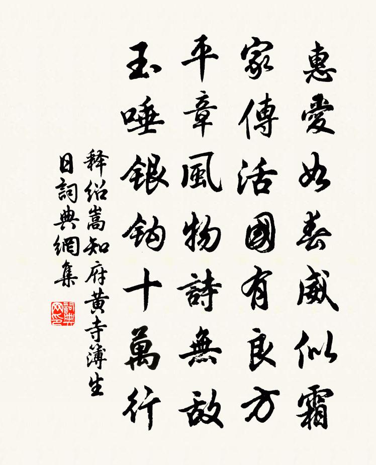 詩詞名句歷史字典書法欣賞書法字典國語詞典說文解字康熙字典古漢語字典標 題 作 者 詩 句 知府黃寺簿生日作者:釋紹嵩 朝代:宋代知府黃寺簿生日原文惠愛如春威似霜,家傳活國有良方。平章風物詩無敵,玉唾銀鉤十萬行。詩詞問答問:知府黃寺簿生日的作者是誰?答:釋紹嵩問:知府黃寺簿生日寫於哪個朝代?答:宋代釋紹嵩知府黃寺簿生日書法欣賞知府黃寺簿生日書法作品詩詞推薦重餞趙信州分韻得寢字劉克莊〔宋代〕近甸騷屑餘,當寧焦勞甚。剖符寄非輕,弄印擇已審。盎然春風和,解此寒色凜。吾聞守四隣,豈必衛堂寢。惡馬詠史下鍾會陳普〔宋代〕身在成都已孟津,霎時飛首過函秦。子房智勇裁如此,不悟誅秦滅項人。題傅侍郎寒碧十五韻橘浦橋陳宓〔宋代〕素藥到眼明,濃香滿懷入。不忍度方橋,斜陽更凝立。千里洞庭秋,一杯還可挹。春意漸深送客至山麓田舍來往道中復逢法上人釋正覺〔宋代〕隔年相逢瘦驚許,風立溪頭少時語。緘情客上釣魚磯,四面垂雲一蓑雨。送崔黃臣知廬山縣陳襄〔宋代〕勿嘆廬山遠,天涯總是民。還家安老母,去國慕忠臣。斜月秦關曉,濃花錦里春。臨行無所贈,為邑莫如仁。甘州歌符載〔唐代〕月里嫦娥不畫眉,只將雲霧作羅衣。不知夢逐青鸞去,猶把花枝蓋面歸。偈傾一百六十九首釋智朋〔宋代〕天寒人,寒徹骨,迥無依倚。拳到踢到當機,貴得崢嶸。眼裹無筋,韓{左犭右盧}逐塊,皮下有血,杓卜虛聲。彭澤縣孔武仲〔宋代〕西江之水何悠悠,下與江南為一州。□□□□□□□,正以彭澤為襟喉。千川百穀所合庚,盡傾此澤如杯甌。鳴聲憑欄人張可久〔元代〕江水澄澄江月明,江上何人掐[1]玉箏?隔江和淚聽,滿江長嘆聲。觀范陽遞俘儲光羲〔唐代〕北河旄星隕,鬼方獮林胡。群師舞弓矢,電發歸燕墟。皇皇軒轅君,贊贊皋陶謨。方思壯軍實,遠近遞生俘。車馬治安疏海瑞〔明代〕戶部雲南清吏司主事臣海瑞謹奏;為直言天下第一事,以正君道、明臣職,求萬世治安事: 君者,天下臣民萬劉有詩再次韻四首陳造〔宋代〕小點猩毫出碧鮮,技隨文思各增川。只應月地饒般礴,心醉寒梢曳曉煙。桂隱紀詠北園張鎡〔宋代〕地勢本居中,因湖別南北。三十六計中,吾今計為得。感春冰遙和謝中書詩江淹〔南北朝〕江皋桐始華。斂衣望邊亭。平原何寂寂。島暮蘭紫莖。芬披好草合。流爛新光生。冰雪徒皦潔。此焉空守貞。遍地錦佚名〔宋代〕三宣賜紫住天長。便是雲光鐵腳王。因遇先生赴洛陽。功成行滿到仙下雞鳴山諸灘,望柯山不見三首楊萬里〔宋代〕莫怪諸灘水怒號,下灘不似上灘勞。長年三老無多巧,穩送驚湍只一篙。出郊用劭農韻三首吳潛〔宋代〕連檣載米去輸官,只得將為樂土看。餉互豚蹄秋願了,飽均雞犬午舂殘。門前掃刮犁鋤淨,屋上鋪添稾秸乾。識字夢筆驛姚宏〔宋代〕一宵短夢驚流俗,千里高名掛里閭。遂使晚生矜此意,痴眠不讀半行書。廣陵芍藥盛開品目比舊又多累日與同官賞嘆不蘇頌〔宋代〕應是圓玄降瑞精,散為穠麗遍邗城。重苞疊蕊三春後,膩臉豐肌百態生。一自毫堂甄異品,至今花譜續嘉名。都緣游禁苑幸臨渭亭遇雪應制李適適〔唐代〕長樂喜春歸,披香瑞雪霏。花從銀閣度,絮繞玉窗飛。寫曜銜天藻,呈祥拂御衣。上林紛可望,無處不光輝。名句推薦行行無別語,只道早還鄉。袁凱《京師得家書》 亂離何處見,訊息苦難真。吳偉業《遇舊友》 世態便如翻覆雨,妾身元是分明月。文天祥《滿江紅·和王夫人滿江紅韻以庶幾後山妾薄命之意》 連雨不知春去,一晴方覺夏深。范成大《喜晴》 楚雖三戶能亡秦,豈有堂堂中國空無人!陸游《金錯刀行》 夫綴文者情動而辭發,觀文者披文以入情,沿波討源,雖幽必顯。劉勰《文心雕龍·知音》 群雞正亂叫,客至雞鬥爭。杜甫《羌村三首·其三》 昨夜更闌酒醒,春愁過卻病。李璟《應天長·一鉤初月臨妝鏡》 明月樓高休獨倚。酒入愁腸,化作相思淚。范仲淹《蘇幕遮·懷舊》 帶長劍兮挾秦弓,首身離兮心不懲。屈原《國殤》