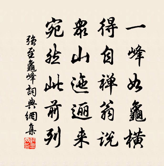 詩詞名句歷史字典書法欣賞書法字典國語詞典說文解字康熙字典古漢語字典標 題 作 者 詩 句 龜峰作者:強至 朝代:宋代龜峰原文一峰如龜橫,得自禪翁說。眾山迤邐來,宛然此前列。詩詞問答問:龜峰的作者是誰?答:強至問:龜峰寫於哪個朝代?答:宋代強至龜峰書法欣賞龜峰書法作品詩詞推薦客游李賀〔唐代〕悲滿千里心,日暖南山石。不謁承明廬,老作平原客。四時別家廟,三年去鄉國。旅歌屢彈鋏,歸問時裂帛。題湯雋溪留遠法師蓮社圖陳杰〔宋代〕無復斯人過虎溪,溪上朝朝新虎蹄。江左風流卻回首,幾曾極樂在天西。乾旄佚名〔先秦〕孑孑乾旄,在浚之郊。素絲紕之,良馬四之。彼姝者子,何以畀之?孑孑乾旟,在浚之都。素絲組之,良馬五之。憶紫芝蘇泂〔宋代〕幾度青衣裹白雲,流傳仙句世間聞。如今一去無蹤跡,獨自看雲不見君。秋夜懷歸寇準〔宋代〕渭水苔磯阻舊遊,夢回空館卻凝愁。一聲江笛巴雲暝,半夜山風楚樹秋。星落古池孤影動,燈搖疏壁冷光幽。遲明徐少卿輓詞戴栩〔宋代〕忽作嚴州夢,難隨上雍班。行藏天分巧,夷險世機閒。瘴酒雲生綠,銘旌露濕斑。保昌鍾梵曉,依舊是家山。長句簡諸公陳造〔宋代〕君家開宴為酴醾,竹聲裂石弦輥雷。我家芍藥繼如許,如解商量先後開。深紅妍白各媚嫵,瓊肌玉骨無纖埃。日高句周師成〔宋代〕黃蘆花白月無賴,烏桕葉紅秋可憐。薦冰范傳質〔唐代〕乘春方啟閉,羞獻有常程。潔朗寒光徹,輝華素彩明。色凝霜雪淨,影照冕旒清。肅肅將崇禮,兢兢示捧盈。方圓與陳陶處士尚顏〔唐代〕鍾陵城外住,喻似玉沈泥。道直貧嫌殺,神清語亦低。雪深加酒債,春盡減詩題。記得曾邀宿,山茶獨自攜。春陰江上偶書張嵲〔宋代〕小軒西下俯通津,漠漠春陰日易曛。白氣冒山蒸積翠,微風過水聚輕紋。城鴉飛去秋花夕,溪雨收余岸草薰。寂寞郡中遣意寄友人四錫〔宋代〕谿雲澹澹浪悠悠,十二州中最小州。花落喜過流水寺,月明懶下看潮樓。藥欄梅潤秋重換,棋局松陰夜不收。吟寄永遇樂王仲甫〔宋代〕風折新英,雨肥繁實,又還如豆。玉核初成,紅腮尚淺,齒軟酸透。粉牆低亞,佳人驚見,不管露沾襟袖。一枝釵臨江仙辛棄疾〔宋代〕醉帽吟鞭花不住,卻招花共商量。人生何必醉為鄉。從教斟酒淺,休更和詩忙。一斗百篇風月地,饒他老子當行。漁家傲梵琦〔元代〕聽說娑婆無量苦。高夸富足慚貧窮。無食無衣無棟宇。懸空釜。舉頭又見紅輪午。只有澗邊芹可食。黃昏坐聽飢腸辛丑除日寄子瞻蘇轍〔宋代〕一歲不復居,一日安足惜。人心畏增年,對酒語終夕。夜長書室幽,燈燭明照席。盤飧雜梁楚,羊炙錯魚臘。庖人陳經略生朝四首汪應辰〔宋代〕喜詠高秋此日生,門閭佳氣想充盈。堂堂體貌千鈞重,凜凜精神一座傾。暫使遠民瞻玉帳,要知聖主有金城。兜牟真珠簾陸游〔宋代〕山村簾水館參差簾路。感羈簾游、正似殘春風絮。掠地穿簾,知是竟歸何處。鏡里新霜空自憫,問幾時、鸞台鰲署上已日晚登裴台自仲春凡三登張栻〔宋代〕前日看花地,重來對落暉。雨余山著色,沙沒水初肥。寒食家家出,殘紅樹樹飛。還同二三子,及此詠而歸。入若耶溪崔顥〔唐代〕輕舟去何疾,已到雲林境。起坐魚鳥間,動搖山水影。岩中響自答,溪里言彌靜。事事令人幽,停橈向餘景。名句推薦恩宜自淡而濃,先濃後淡者人忘其惠洪應明《菜根譚·概論》 蕭條清萬里,瀚海寂無波。李白《塞上曲》 漢甲連胡兵,沙塵暗雲海。李白《經亂離後天恩流夜郎憶舊遊書懷贈江夏韋太守良宰》 還怕掩、深院梨花,又作故人清淚。吳文英《無悶·催雪》 國無三年之食者,國非其國也墨子《墨子·05章 七患》 以眾擊寡,利以清晨;強弩長兵,利以捷次諸葛亮《將苑·卷二·便利》 虛靜無事,以暗見疵。韓非及後人《韓非子·主道》 秋色從西來,蒼然滿關中。岑參《與高適薛據同登慈恩寺浮圖》 大道之行也,天下為公。戴聖《禮記·禮運》 千里萬里,二月三月,行色苦愁人。歐陽修《少年游·欄乾十二獨憑春》